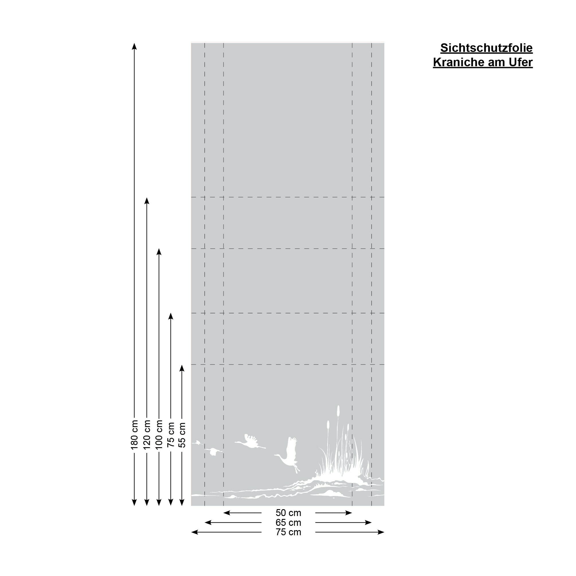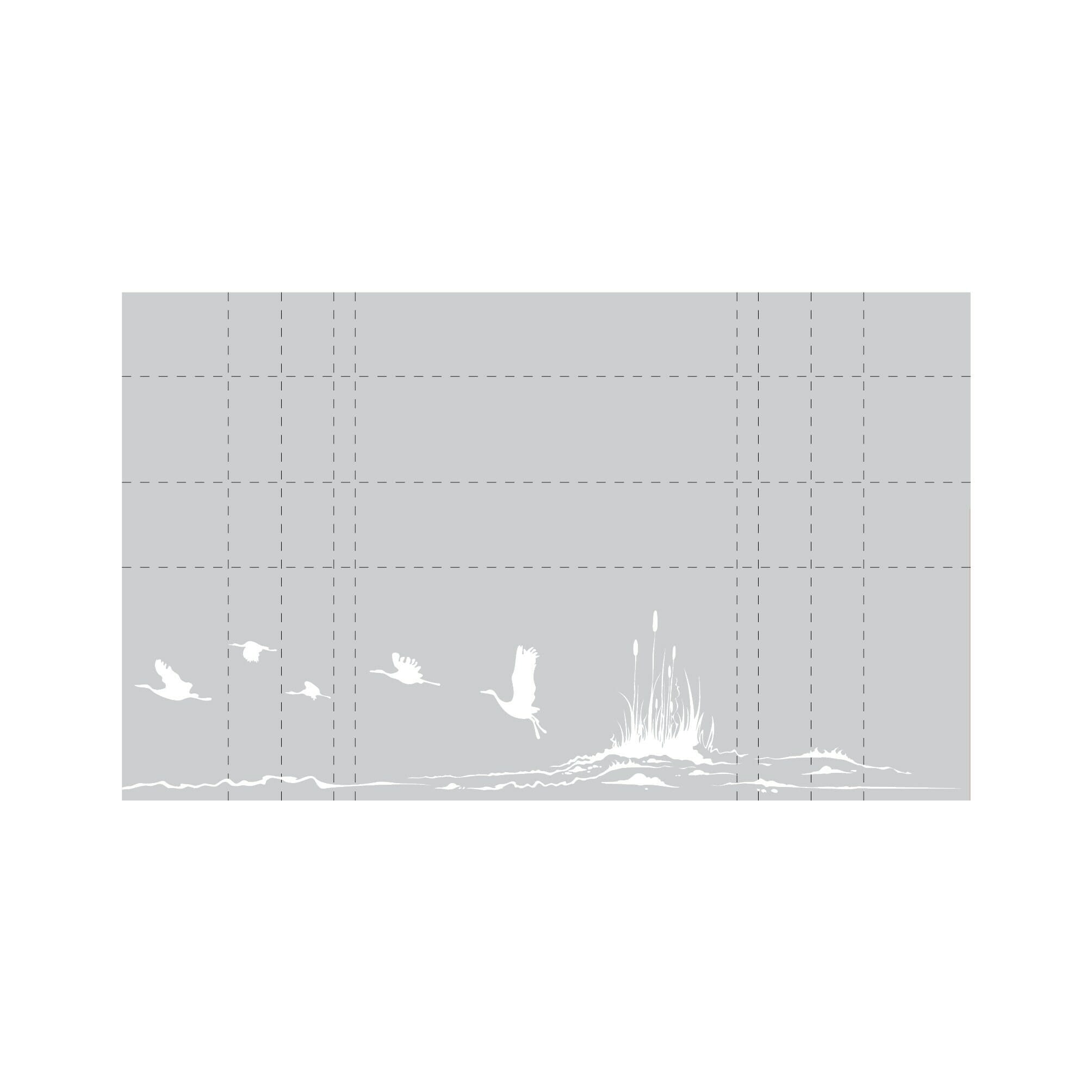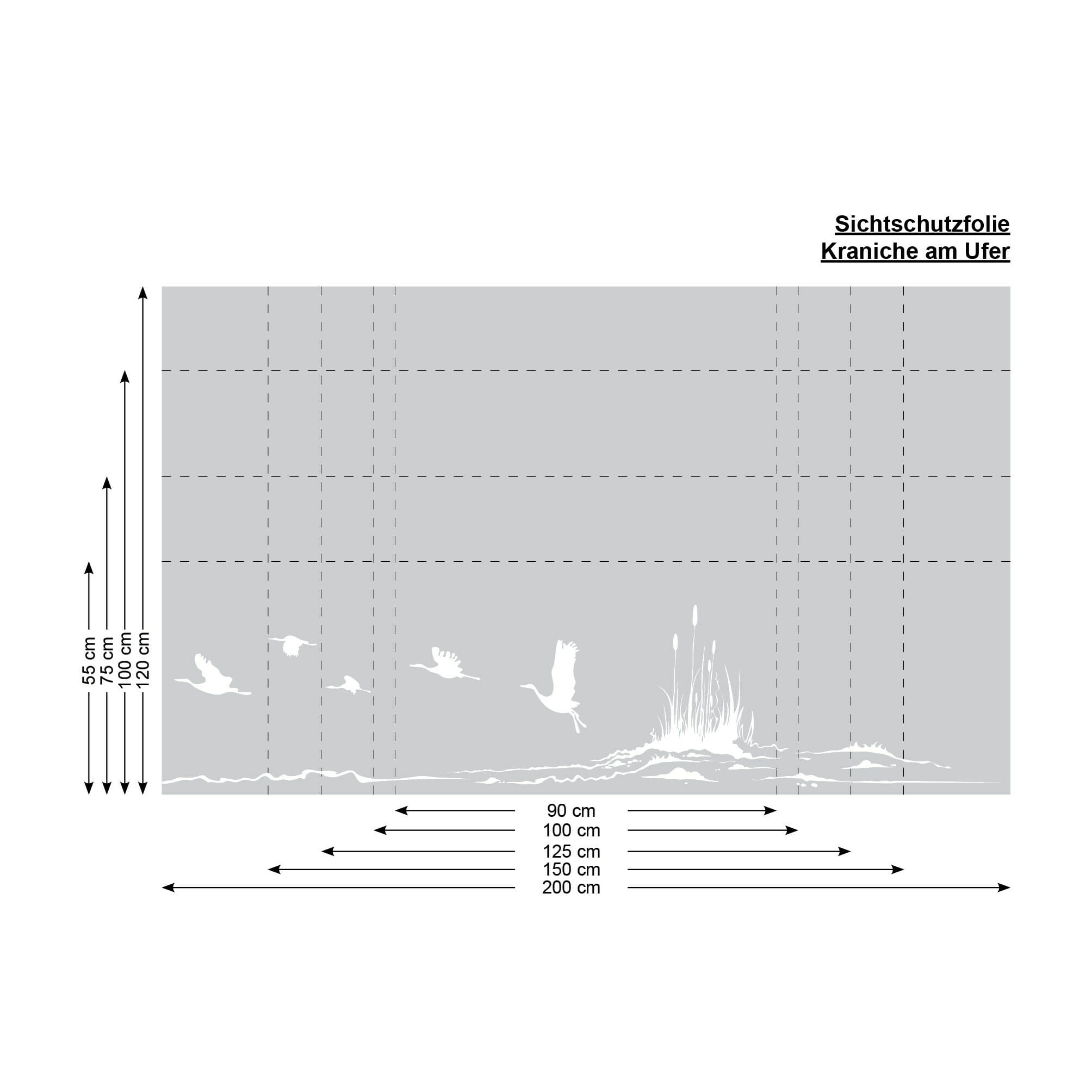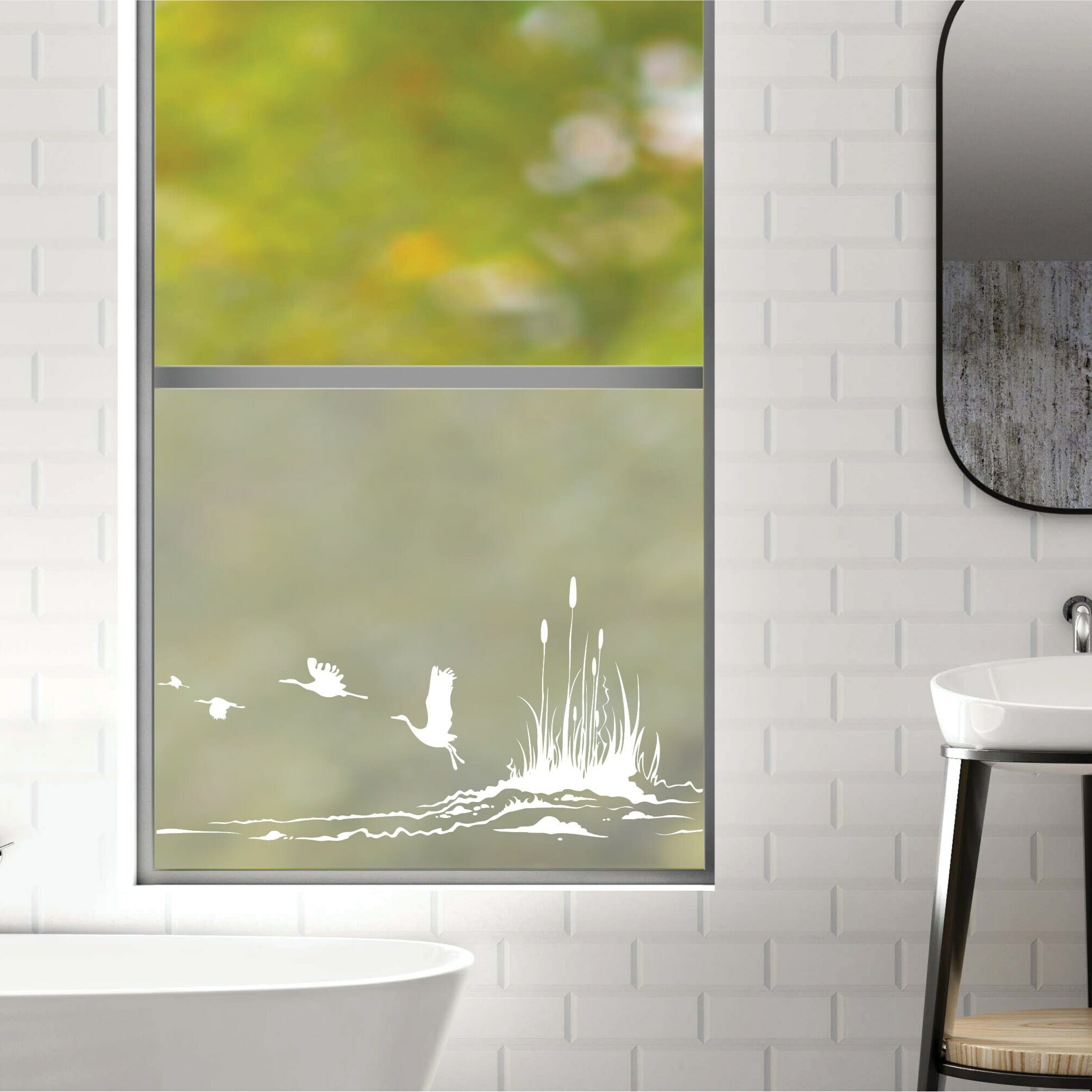 Auf dem Bild ist das Produkt: Sichtschutzfolie Kraniche mit Schilf am Ufer maritime Fensterfolie Fensterdeko Milchglasfolie zum Preis von €24.9 abgebildet.