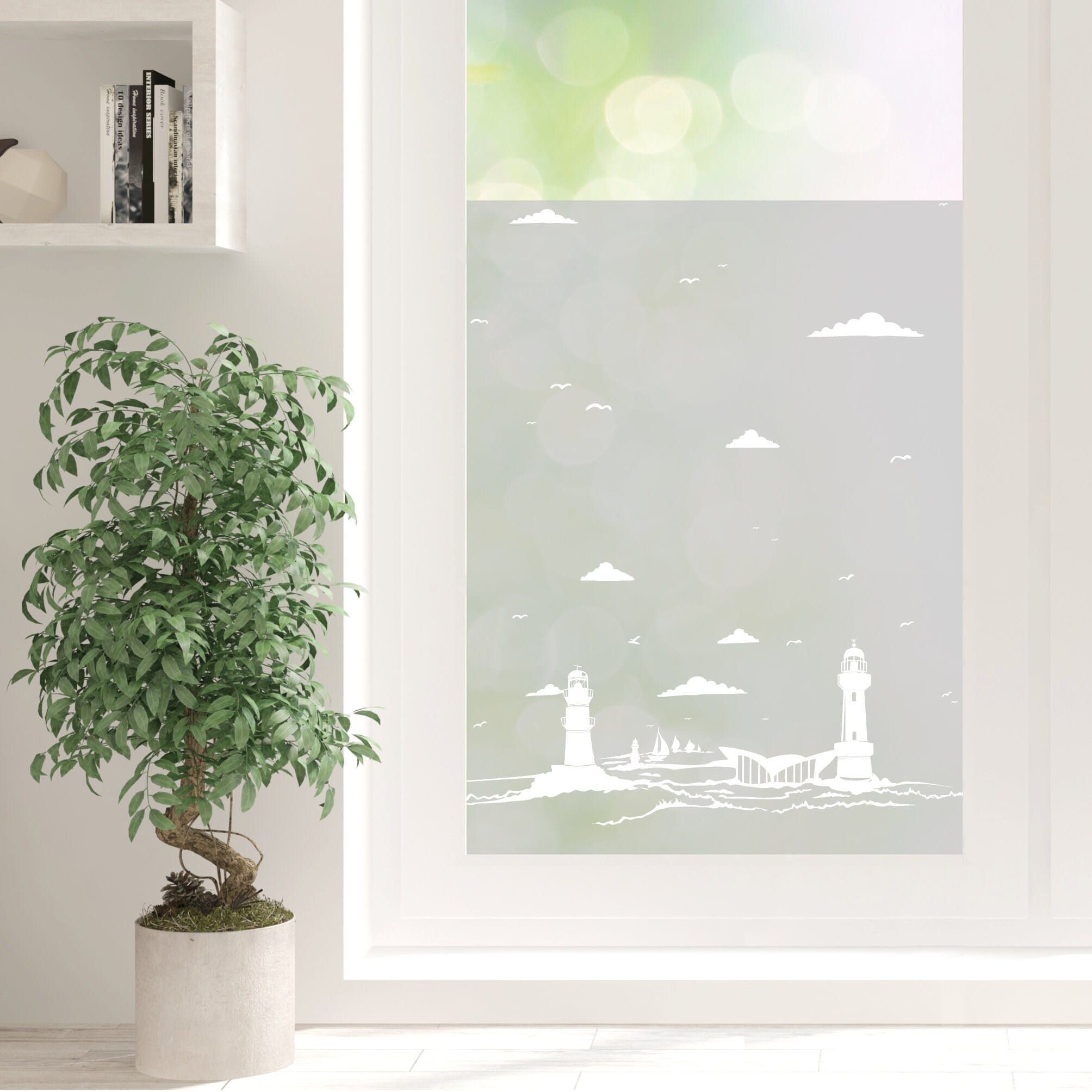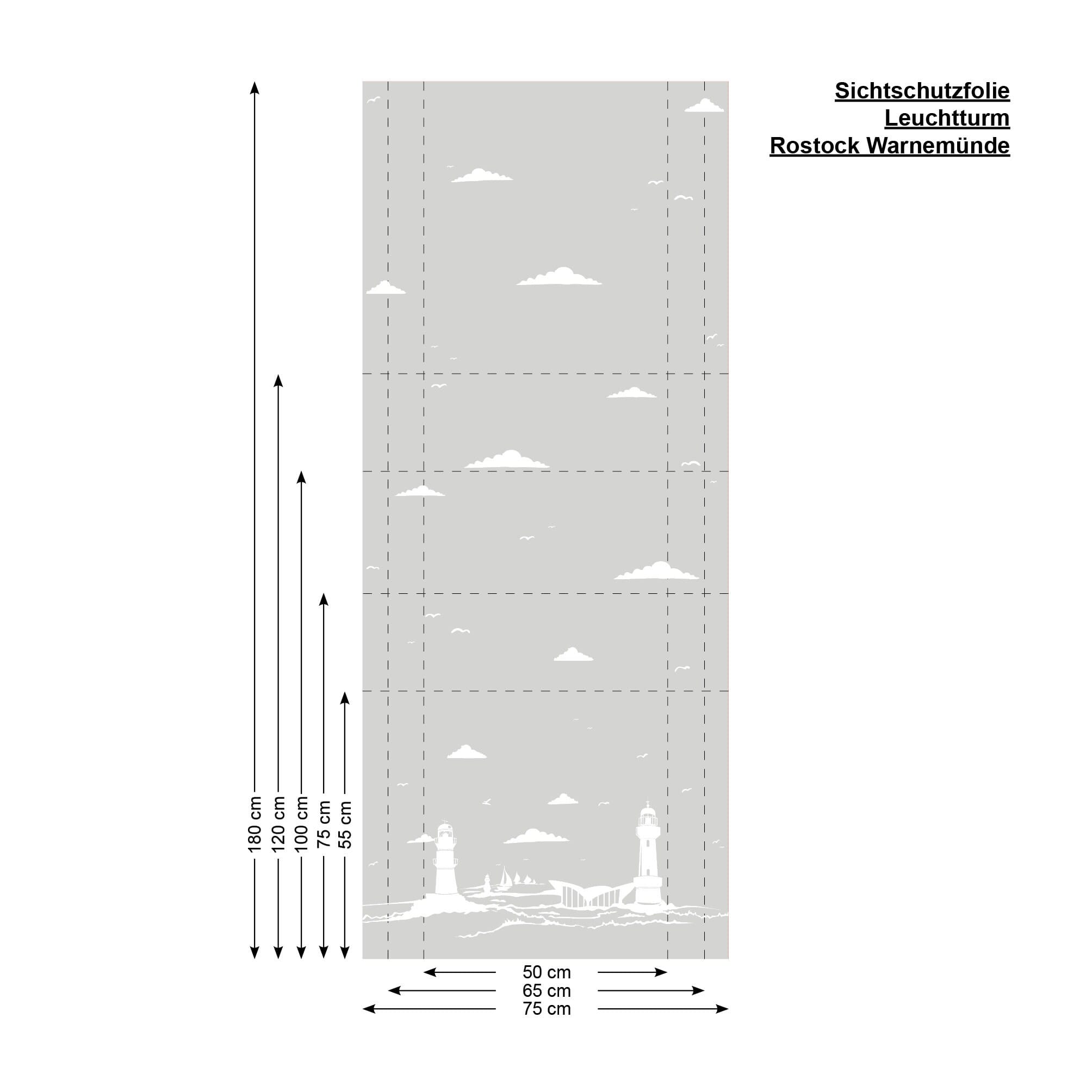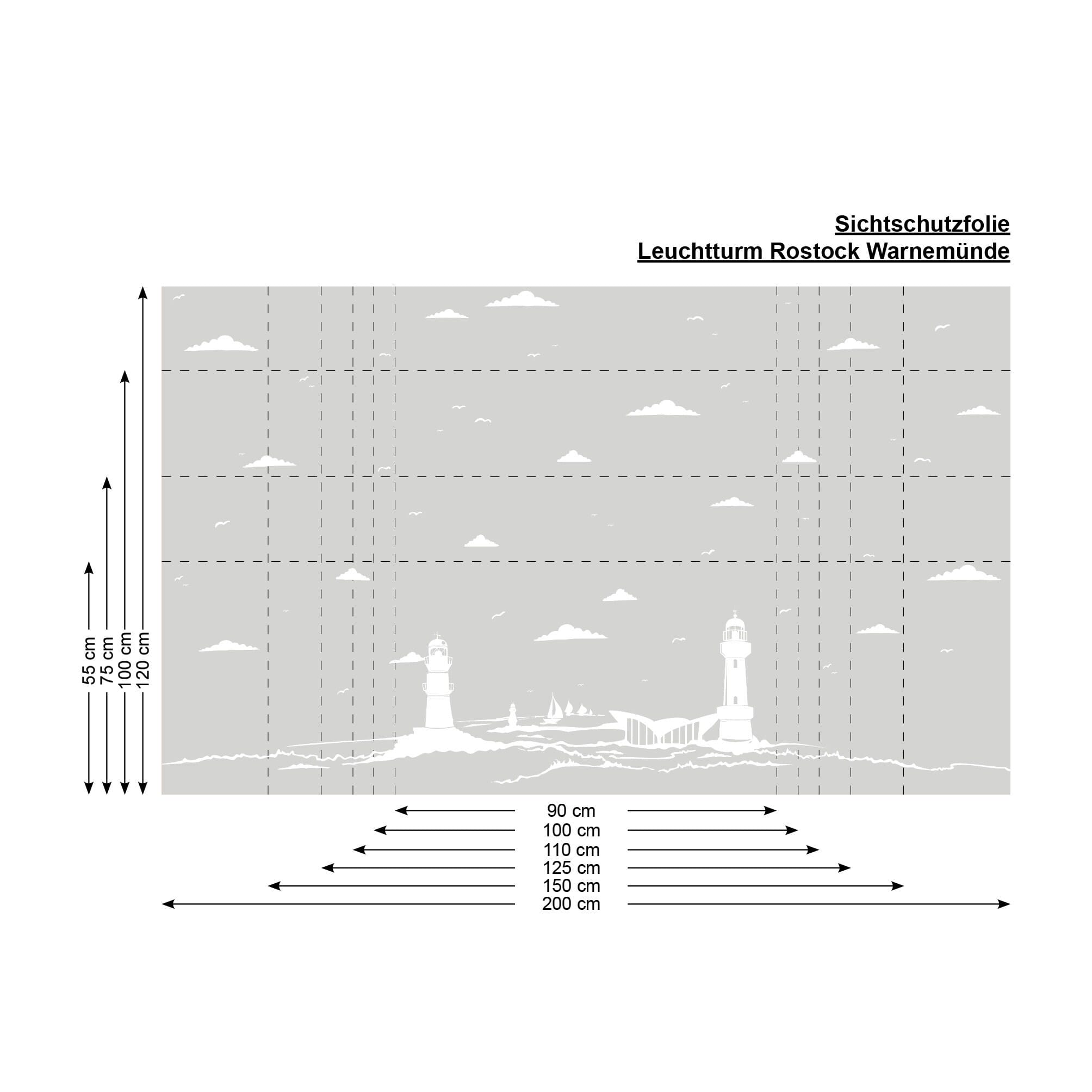 Sichtschutzfolie mit dem Leuchtturm von Warnemünde und Segelbooten auf der Ostsee, Fensterfolie Fensterdeko Milchglasfolie