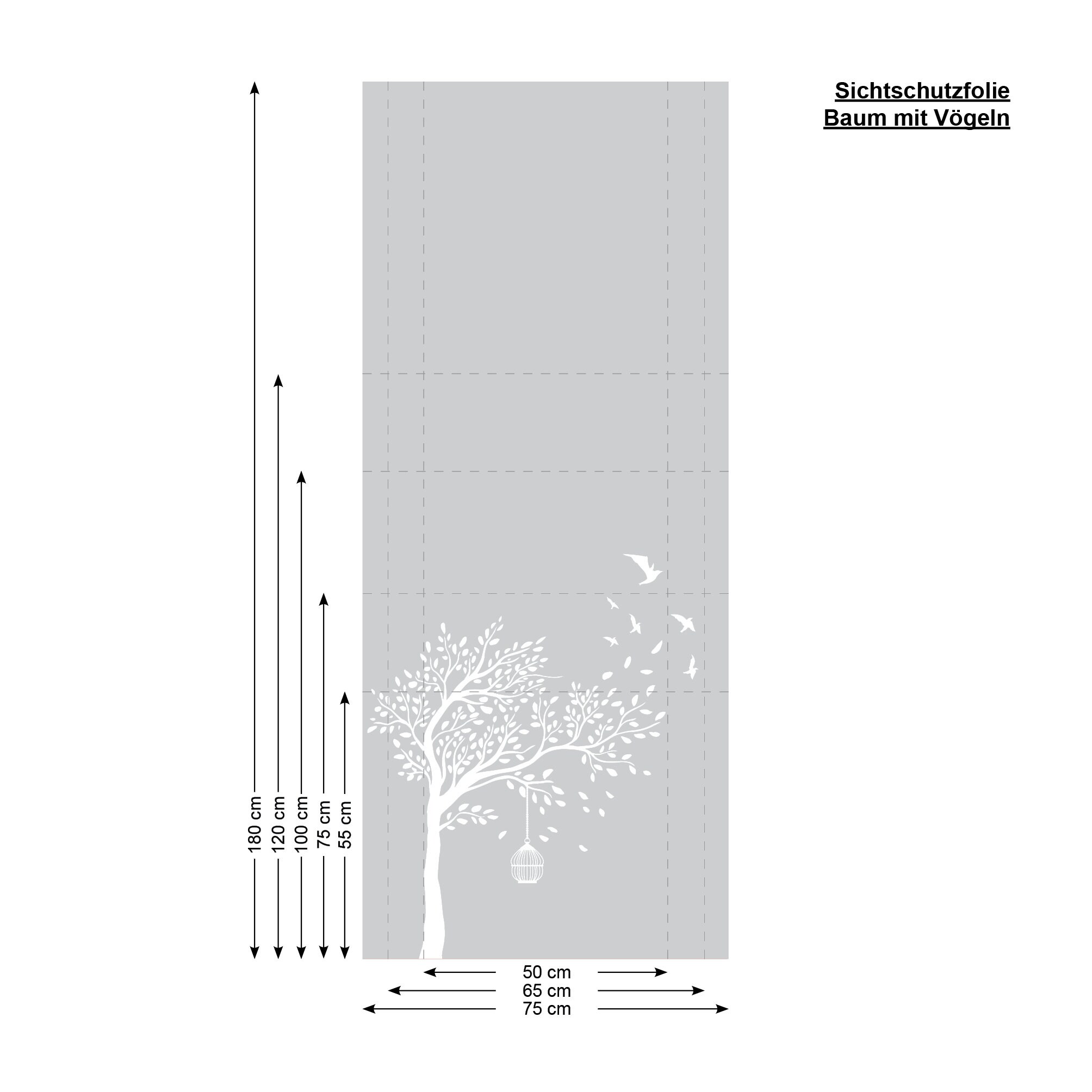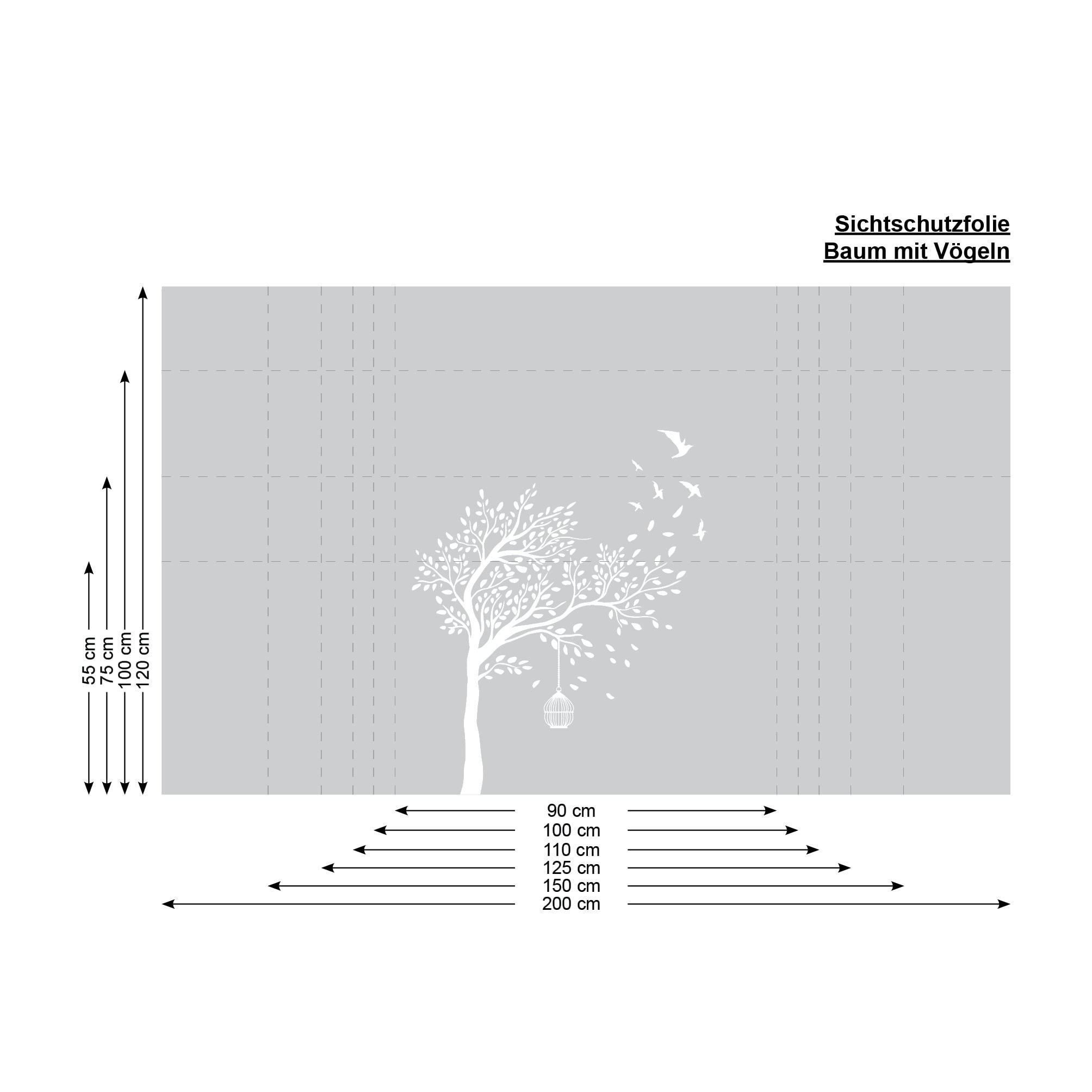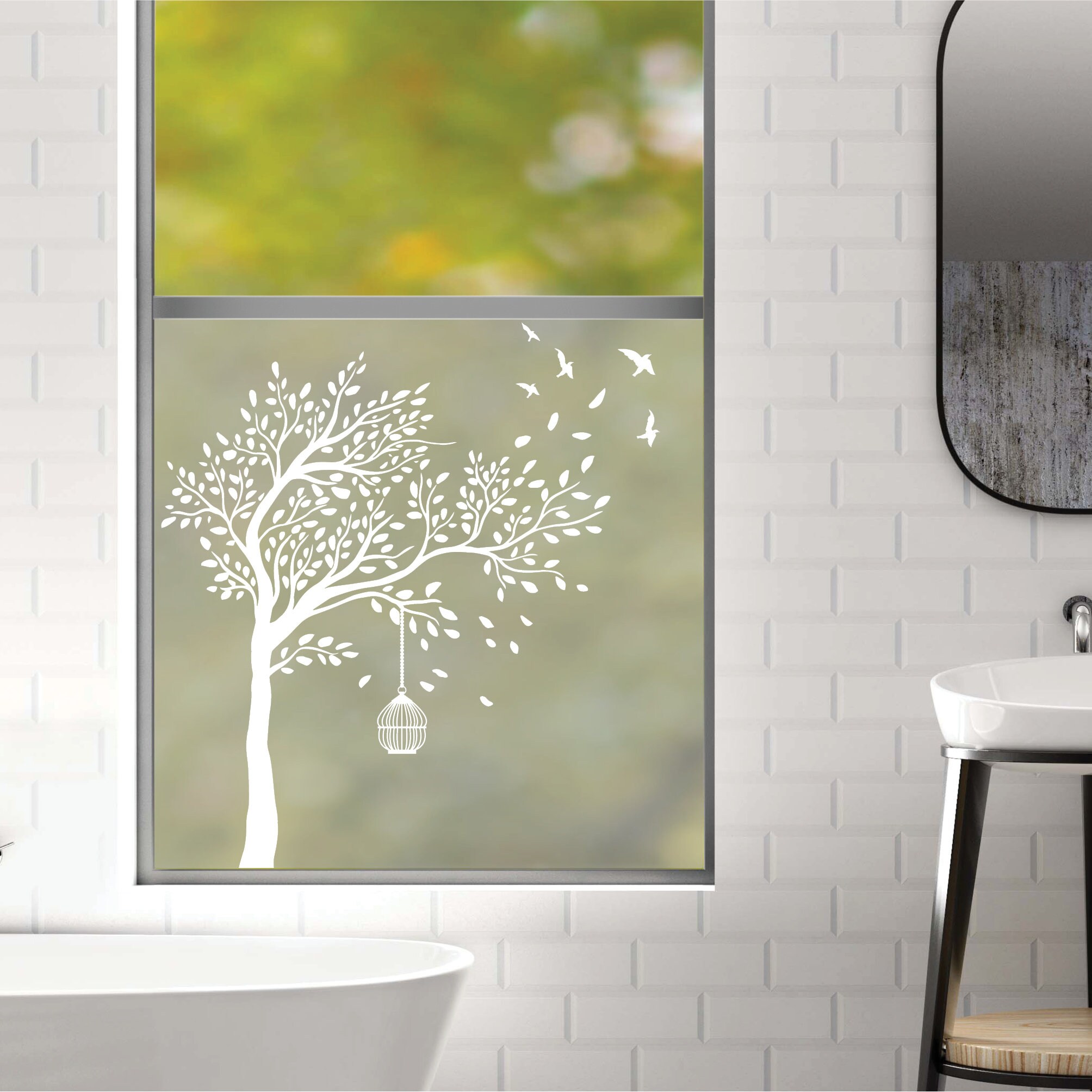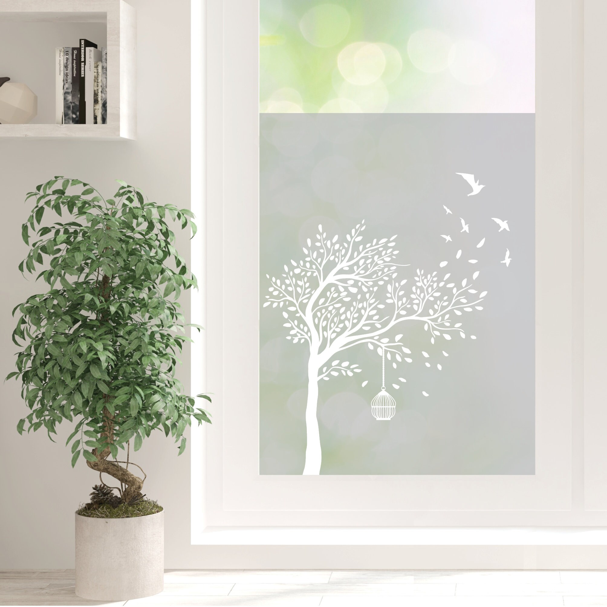 Sichtschutzfolie mit einem Baum und einem Käfig, Fensterfolie, Fensterdeko Milchglasfolie