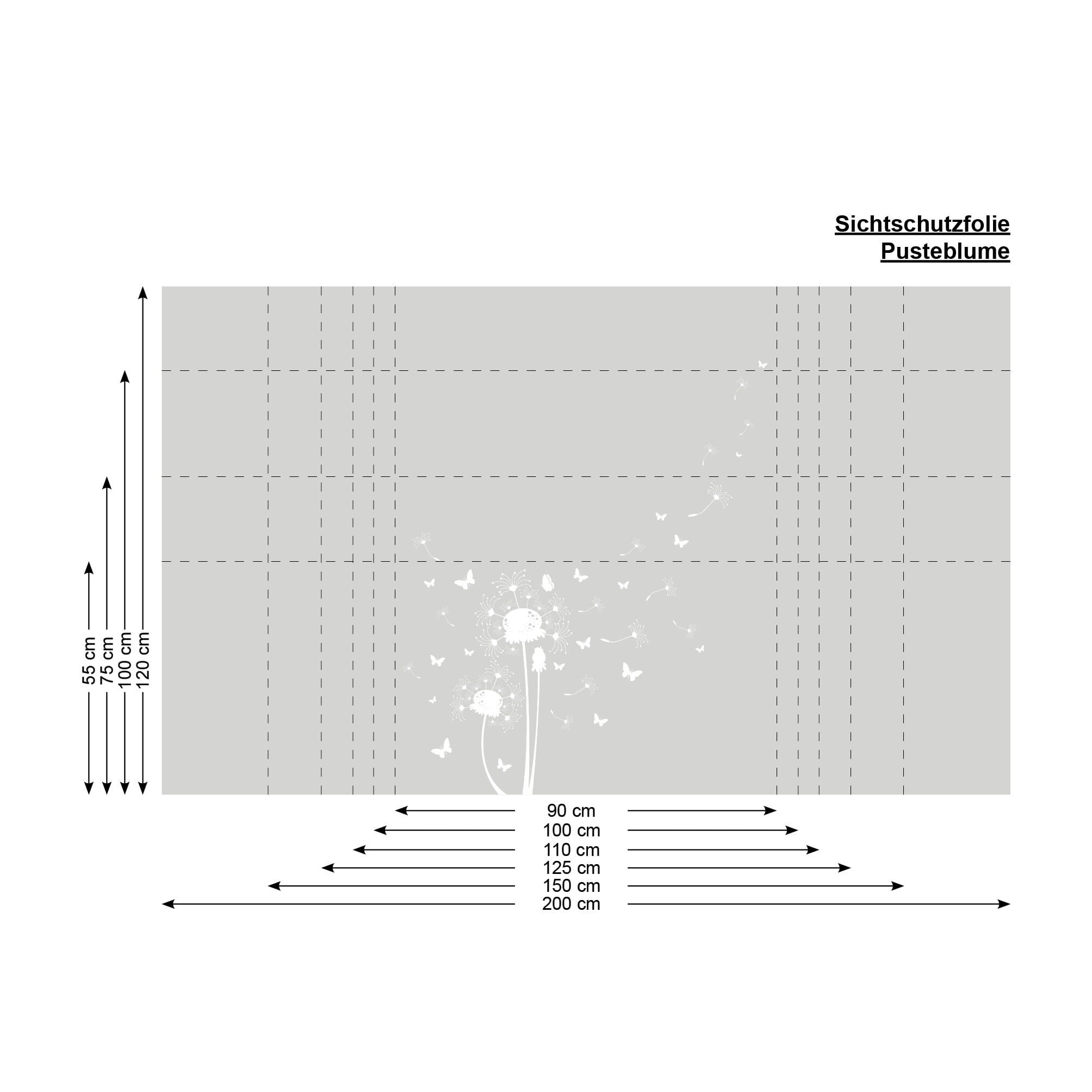 Sichtschutzfolie mit Pusteblume und Schmetterlingen, Fensterfolie, Fensterdeko Milchglasfolie