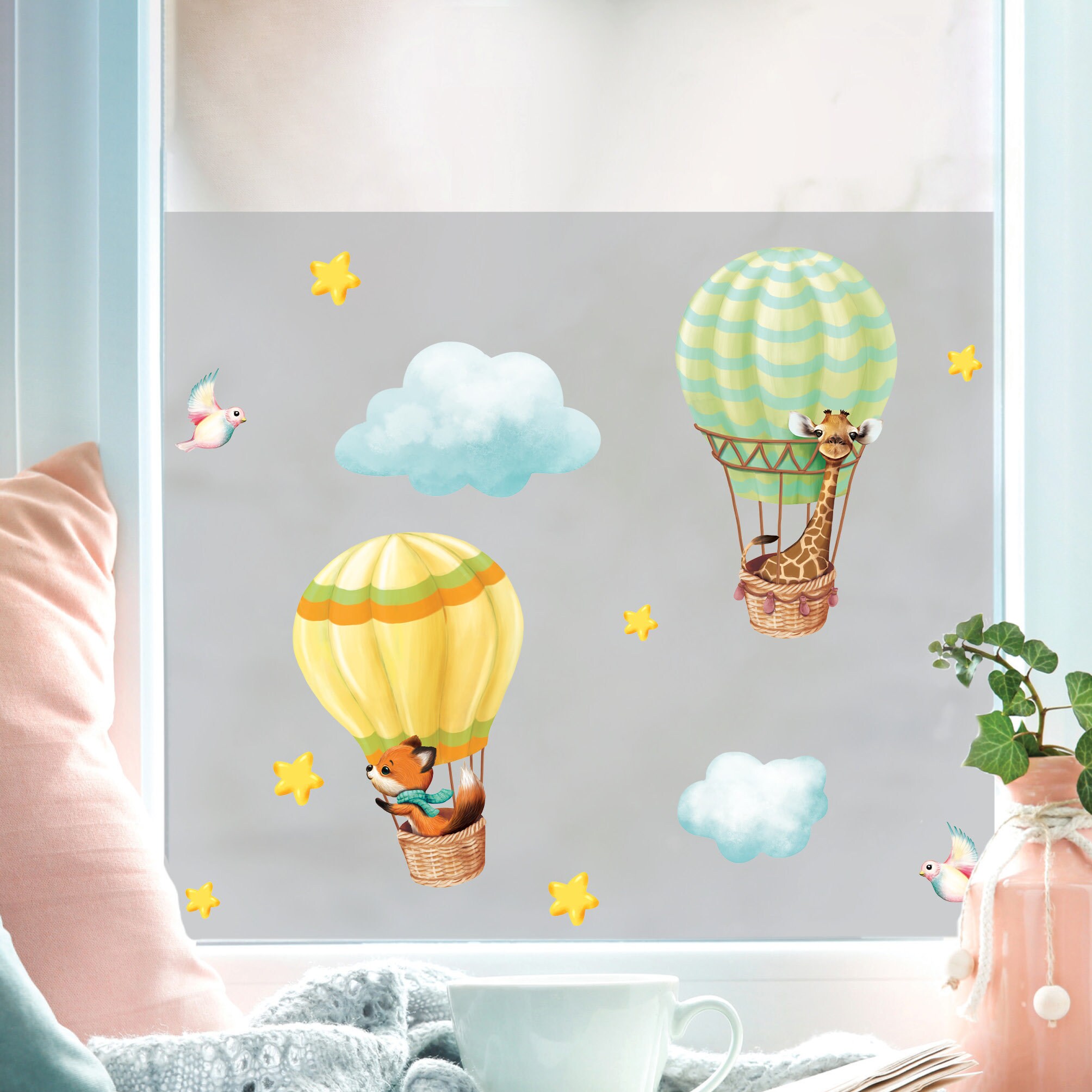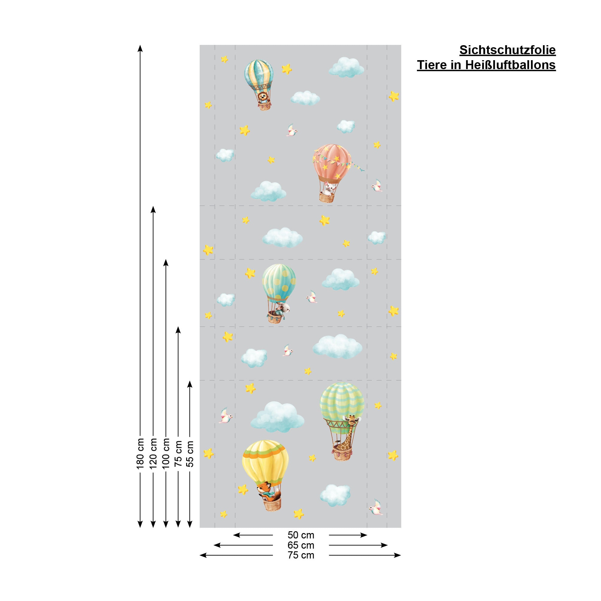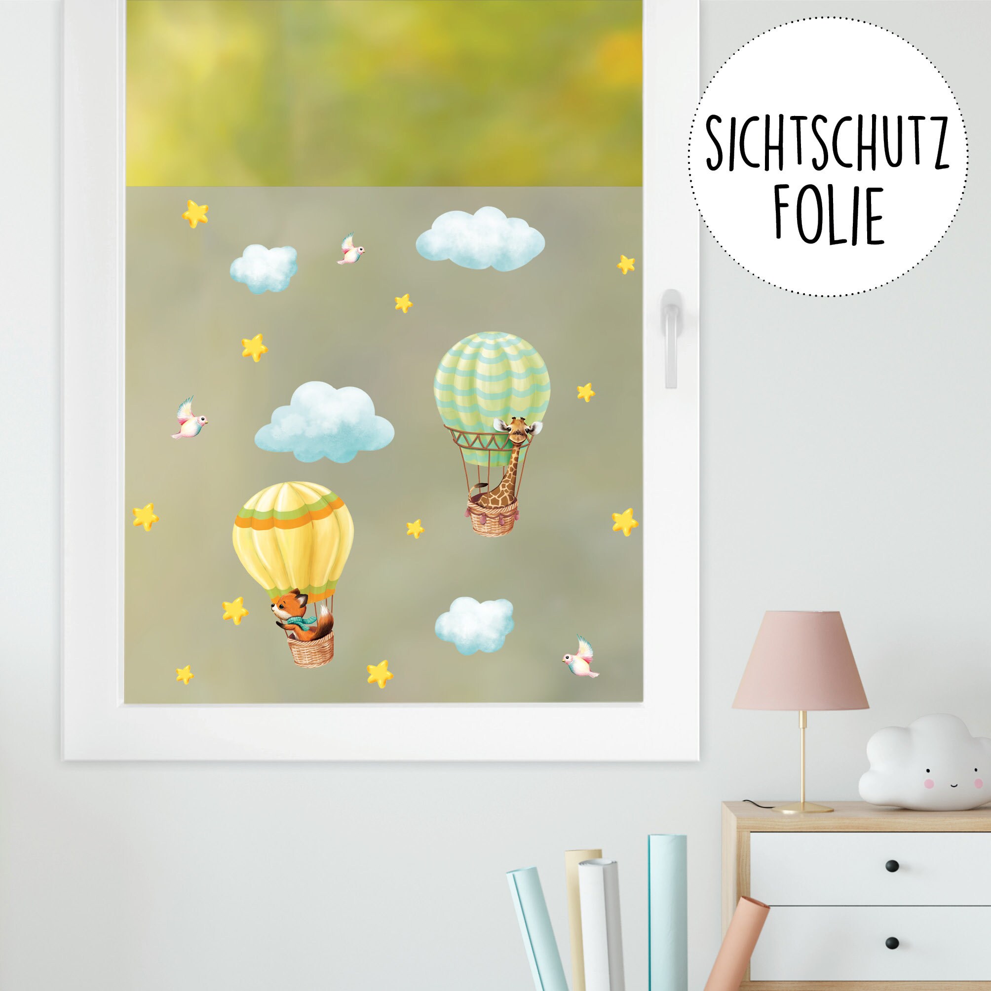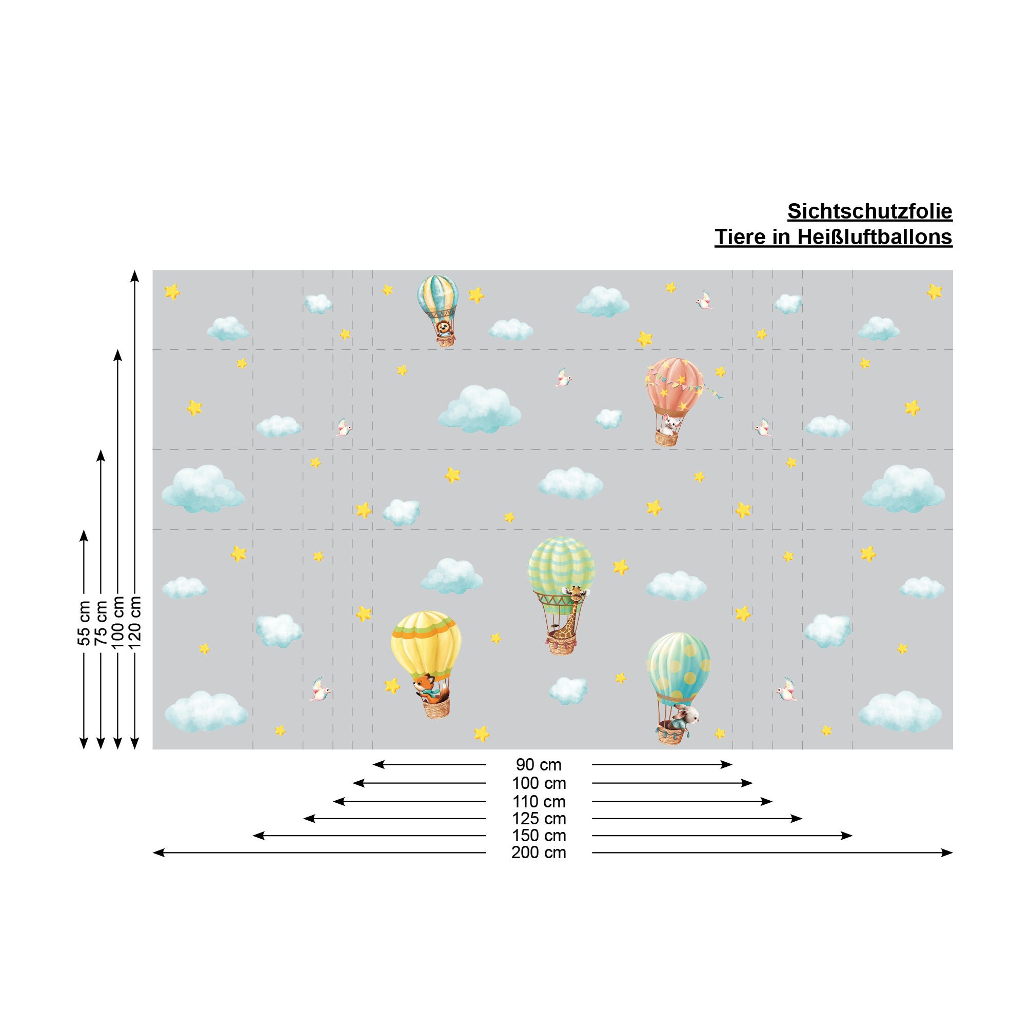 Sichtschutzfolie Tiere in Heißluftballons Wolken Fensterfolie Fensterdeko Milchglasfolie Fenster Folie
