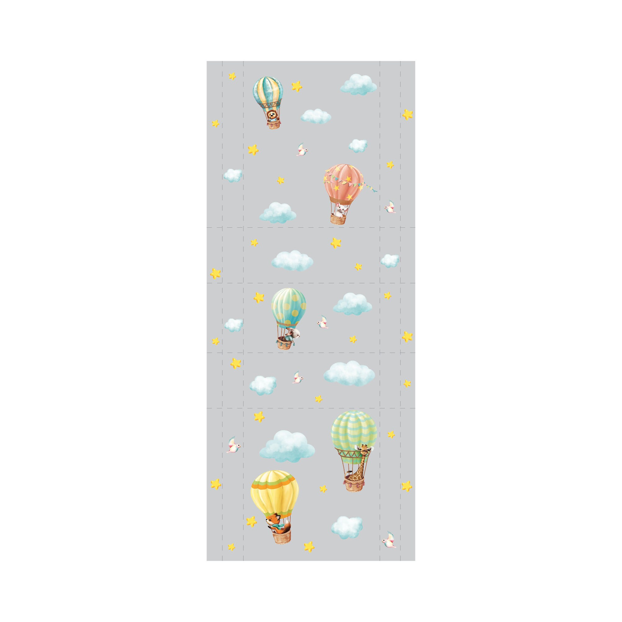 Milchglasfolie mit außergewöhnlichen Designs, Tiere in Heißluftballons mit Wolken und Sternen