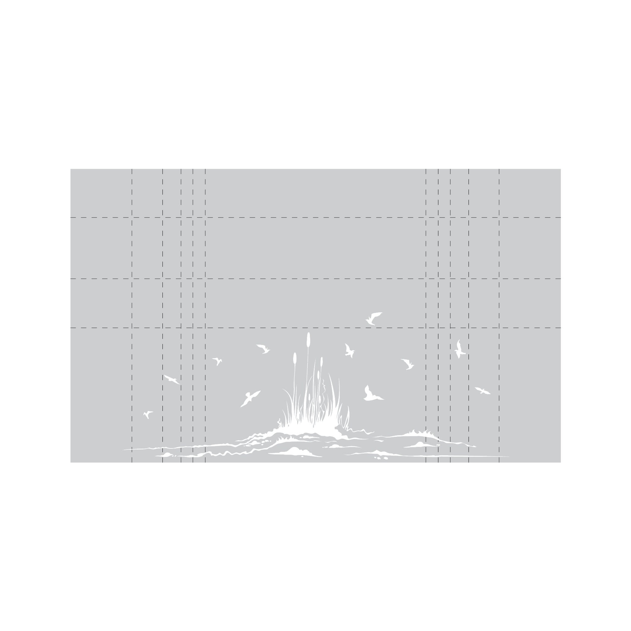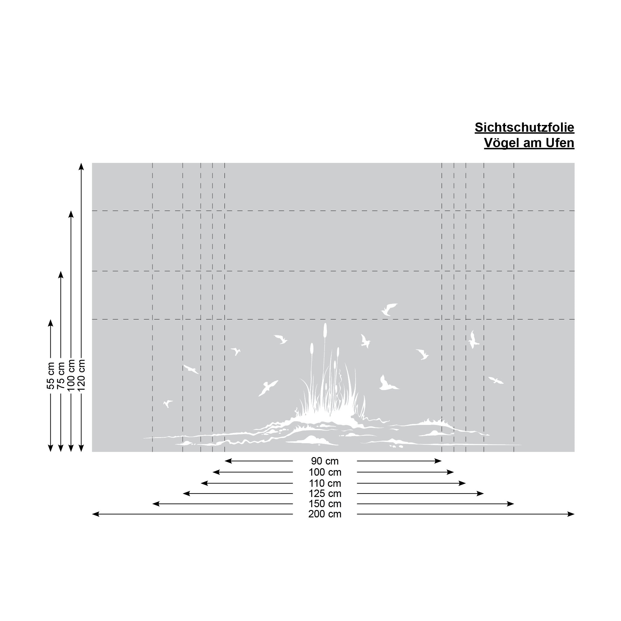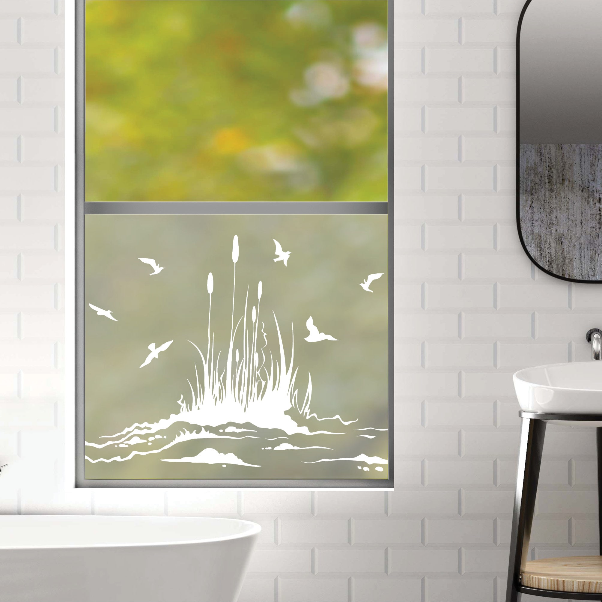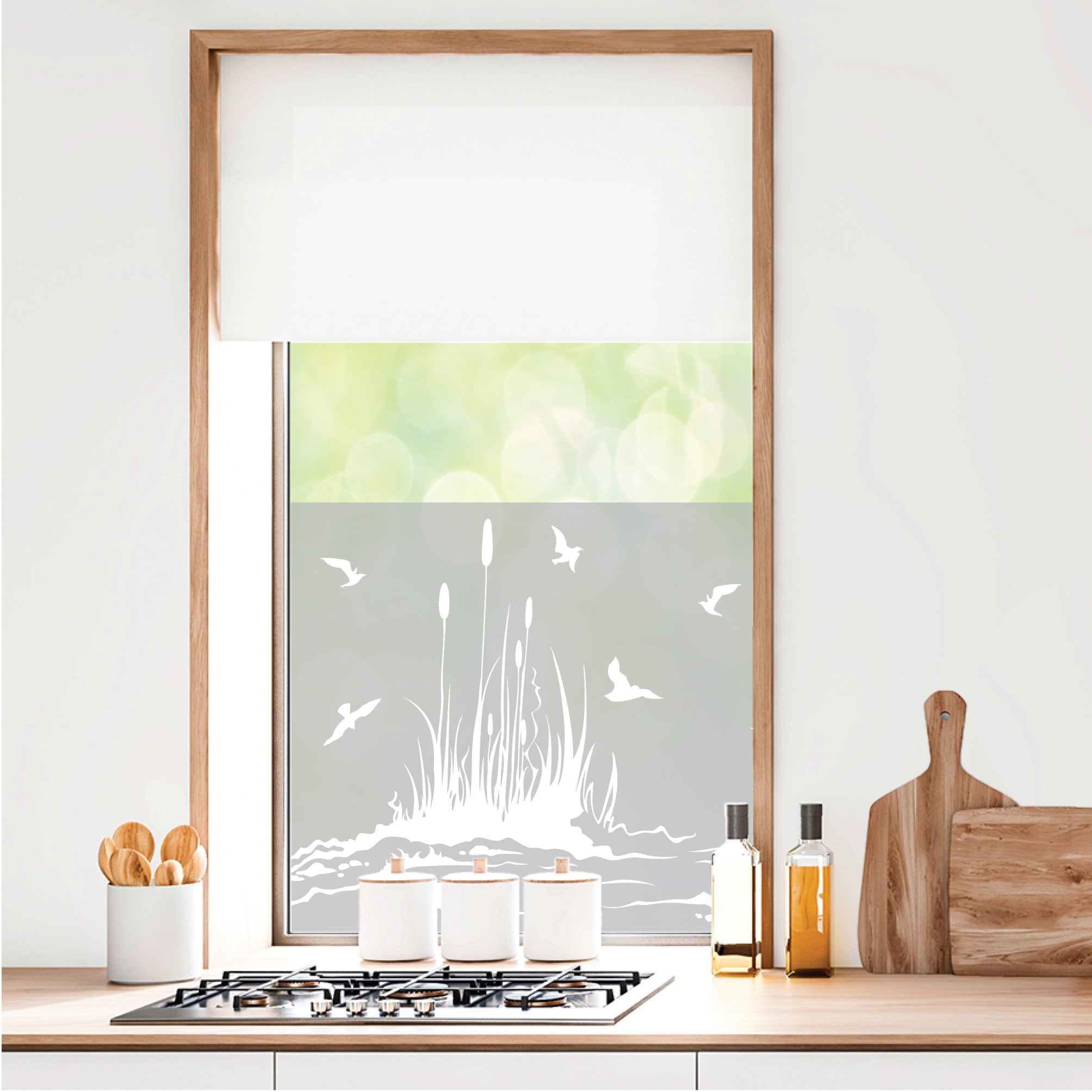 Sichtschutzfolie Vögel mit Schilf am Ufer, maritime Fensterfolie, Fensterdeko Milchglasfolie