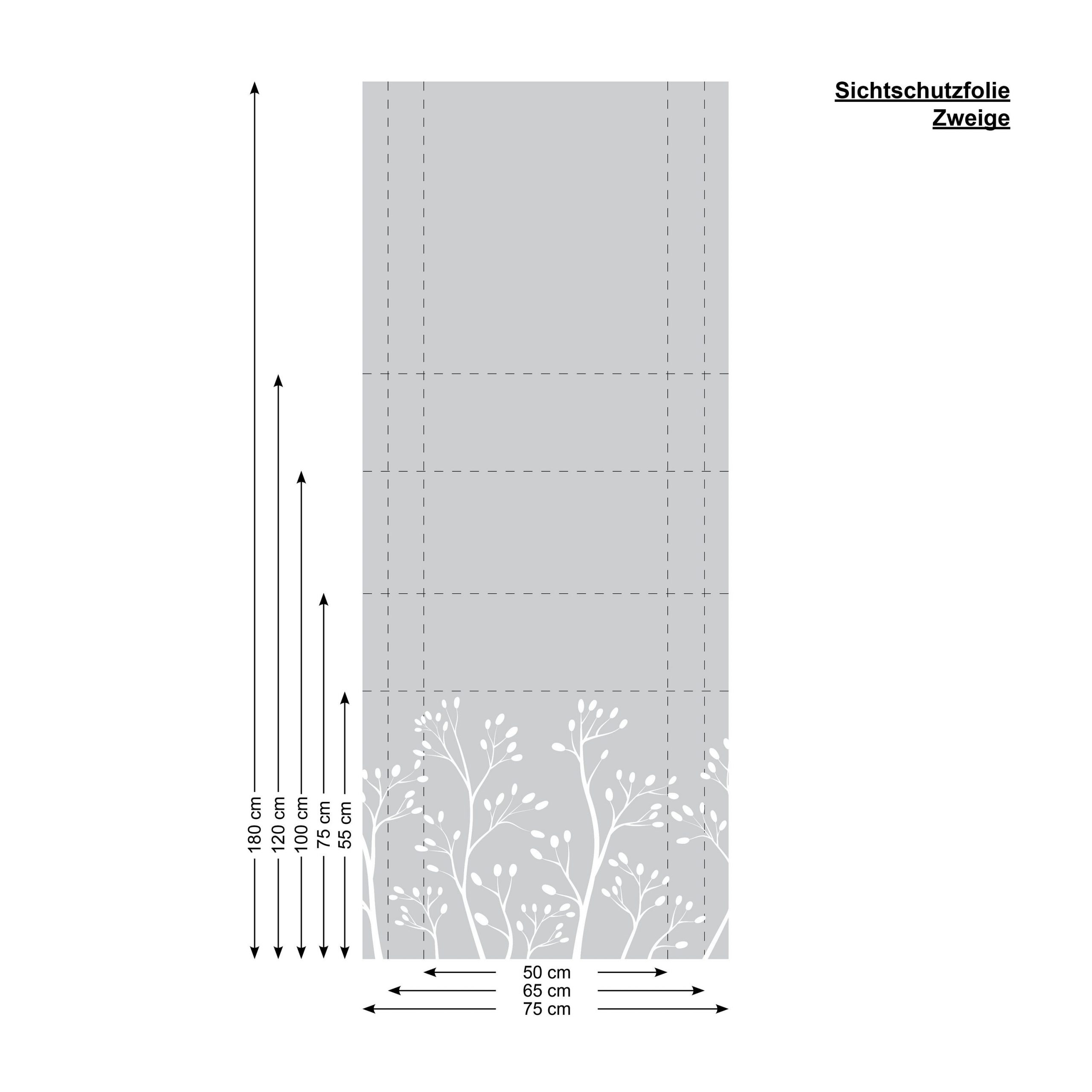 Hier befinden sich weiße Zweige auf der Sichtschutzfolie.