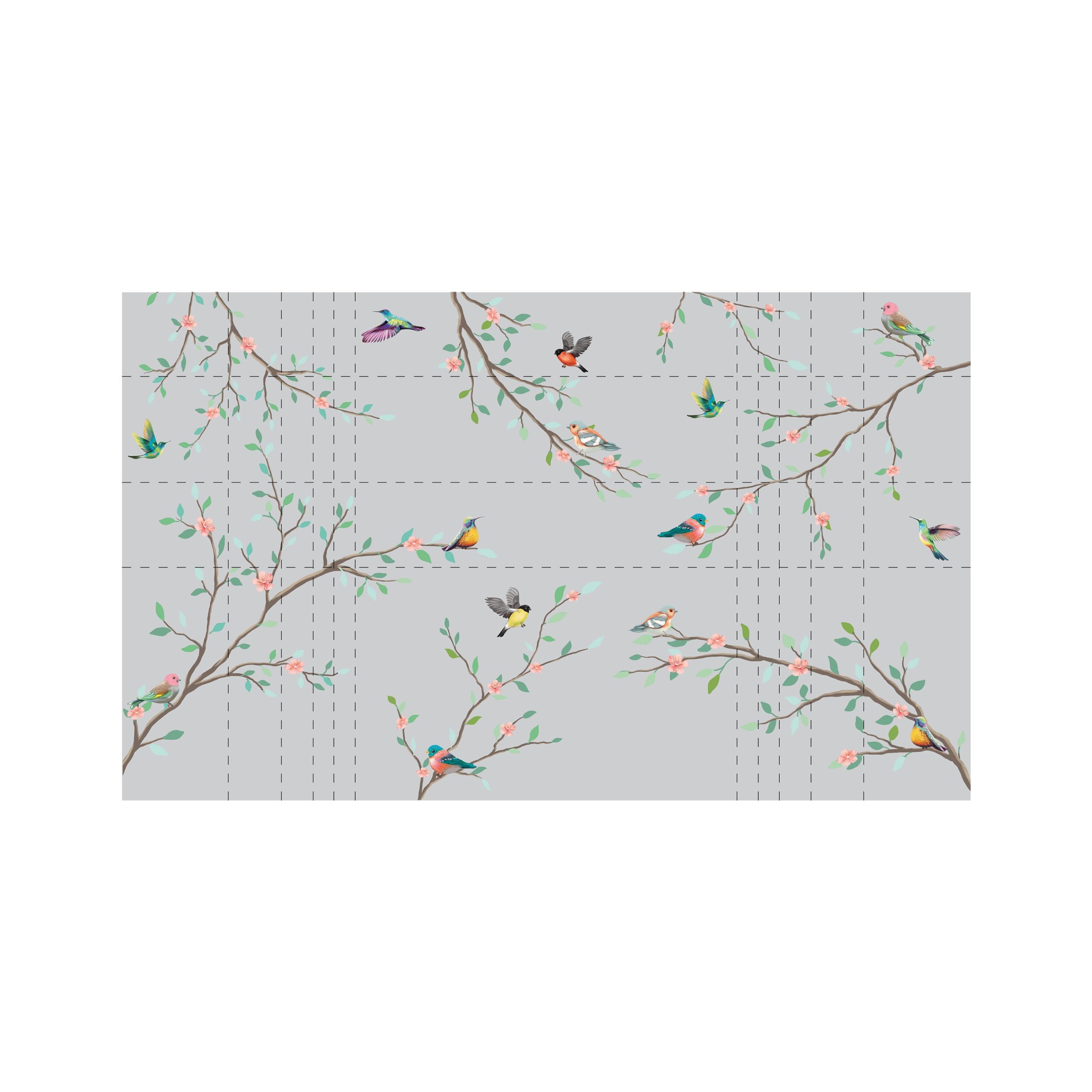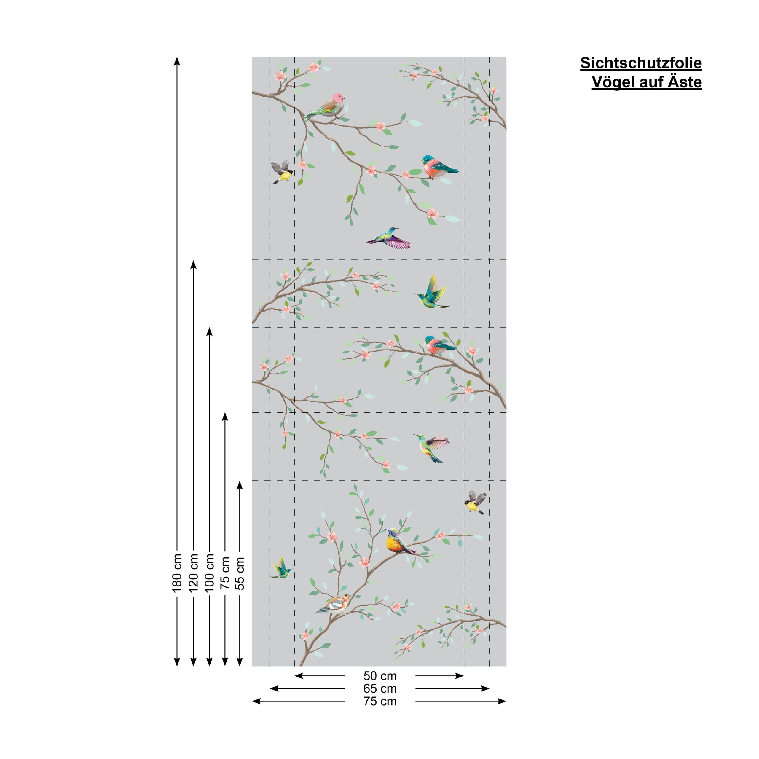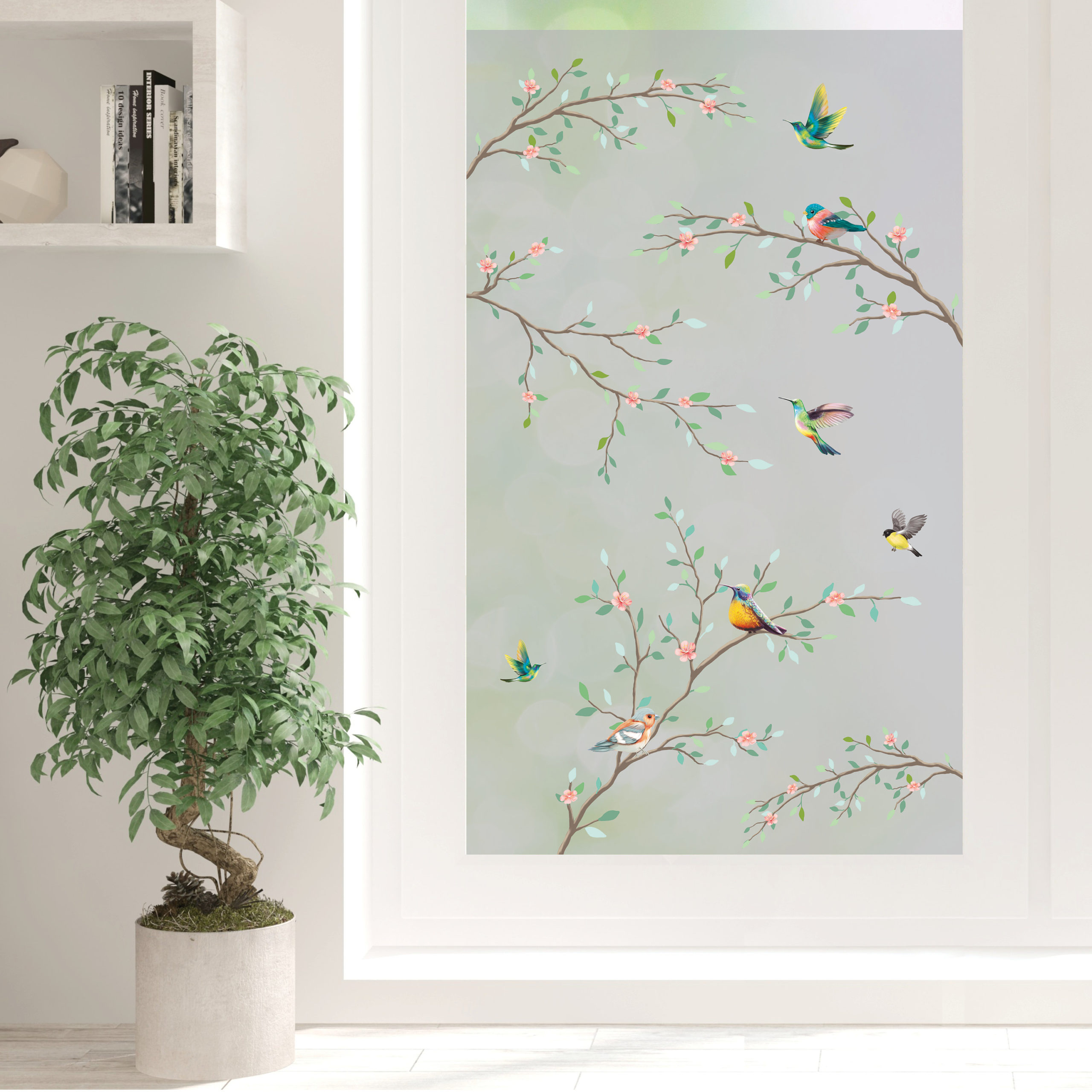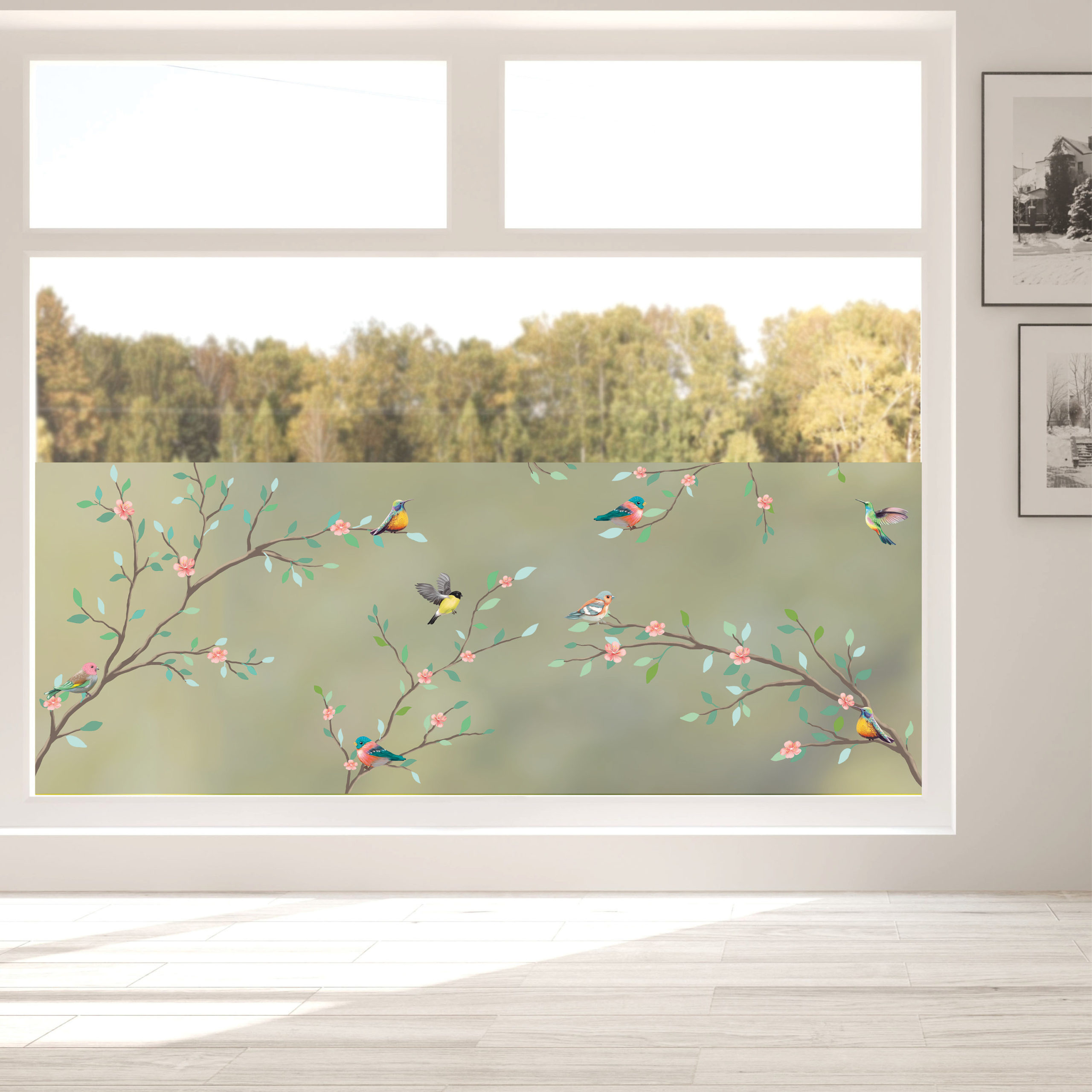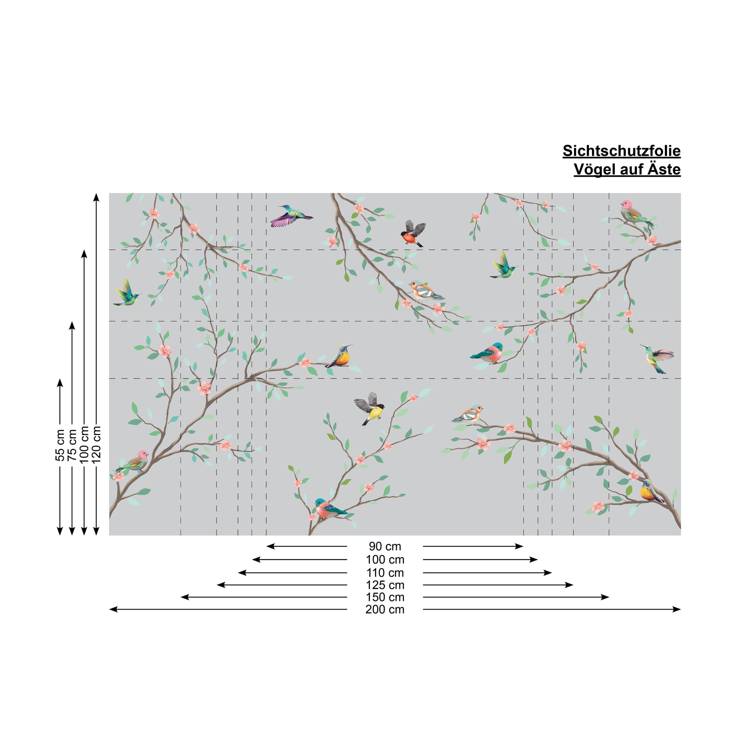 Sichtschutzfolie Zweige mit Vögeln, Fensterfolie Fensterdeko Milchglasfolie