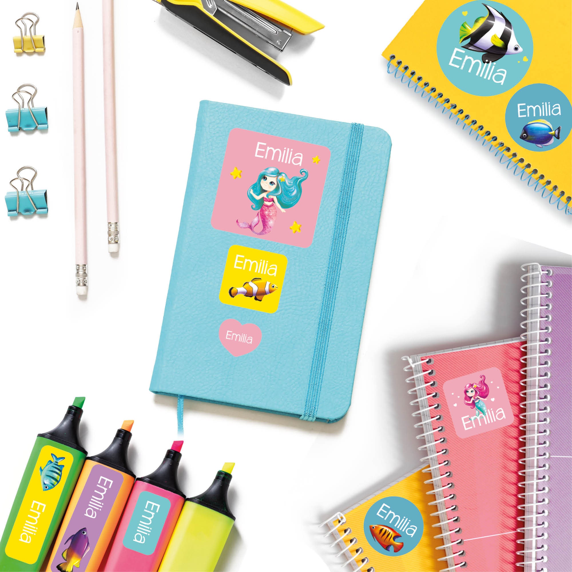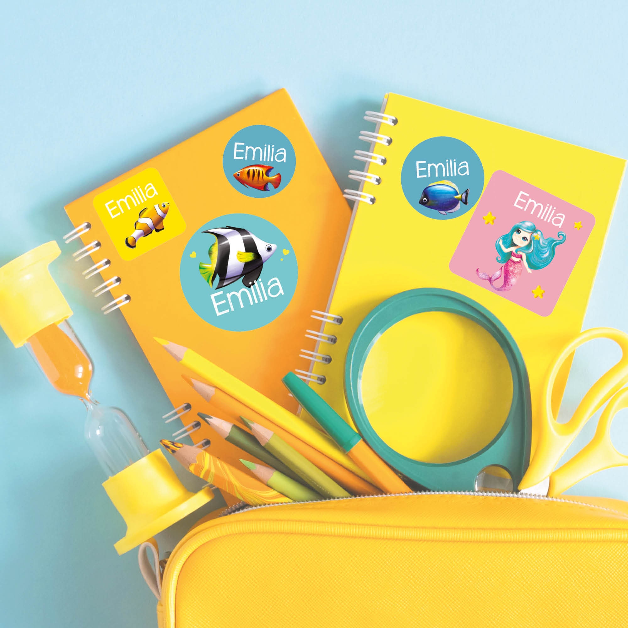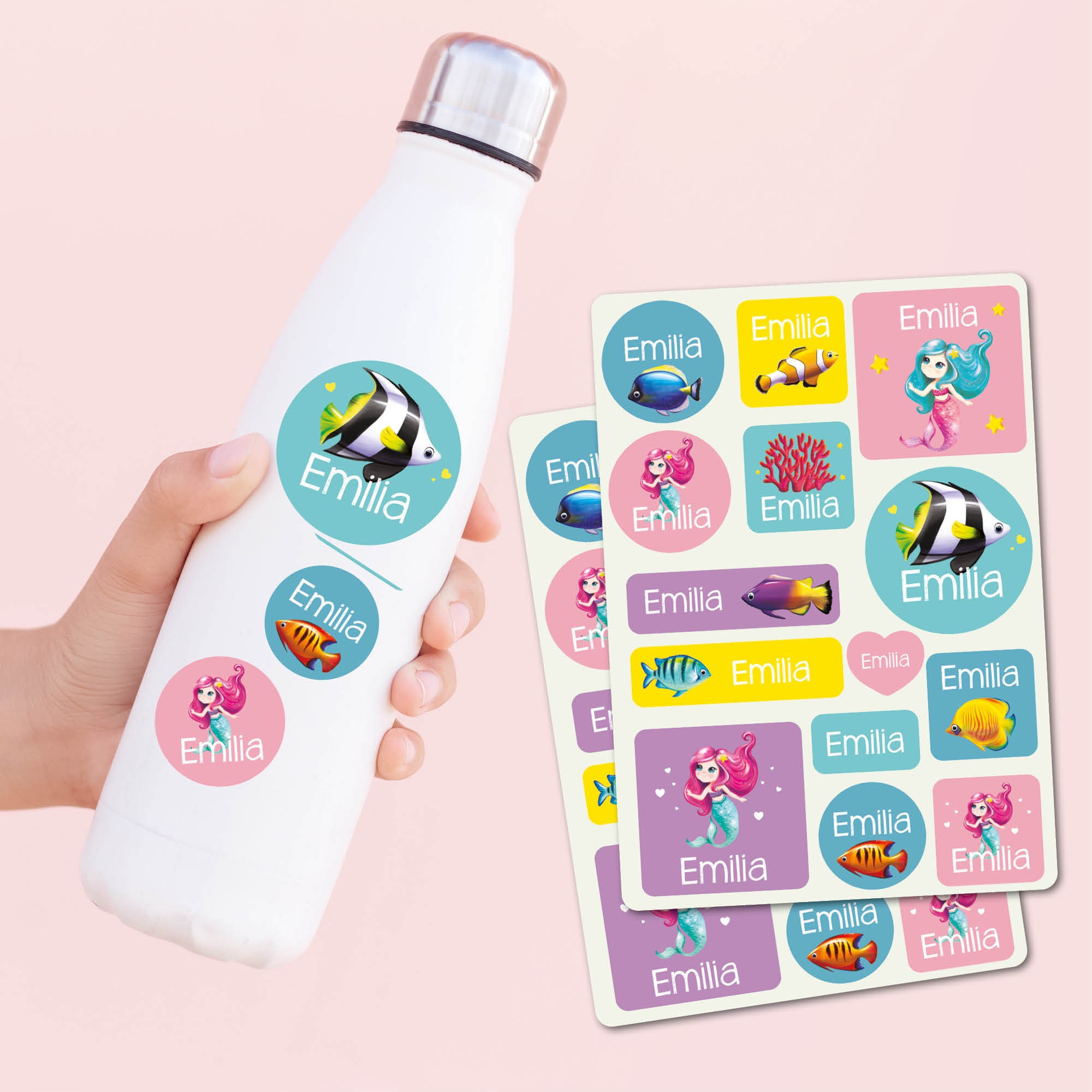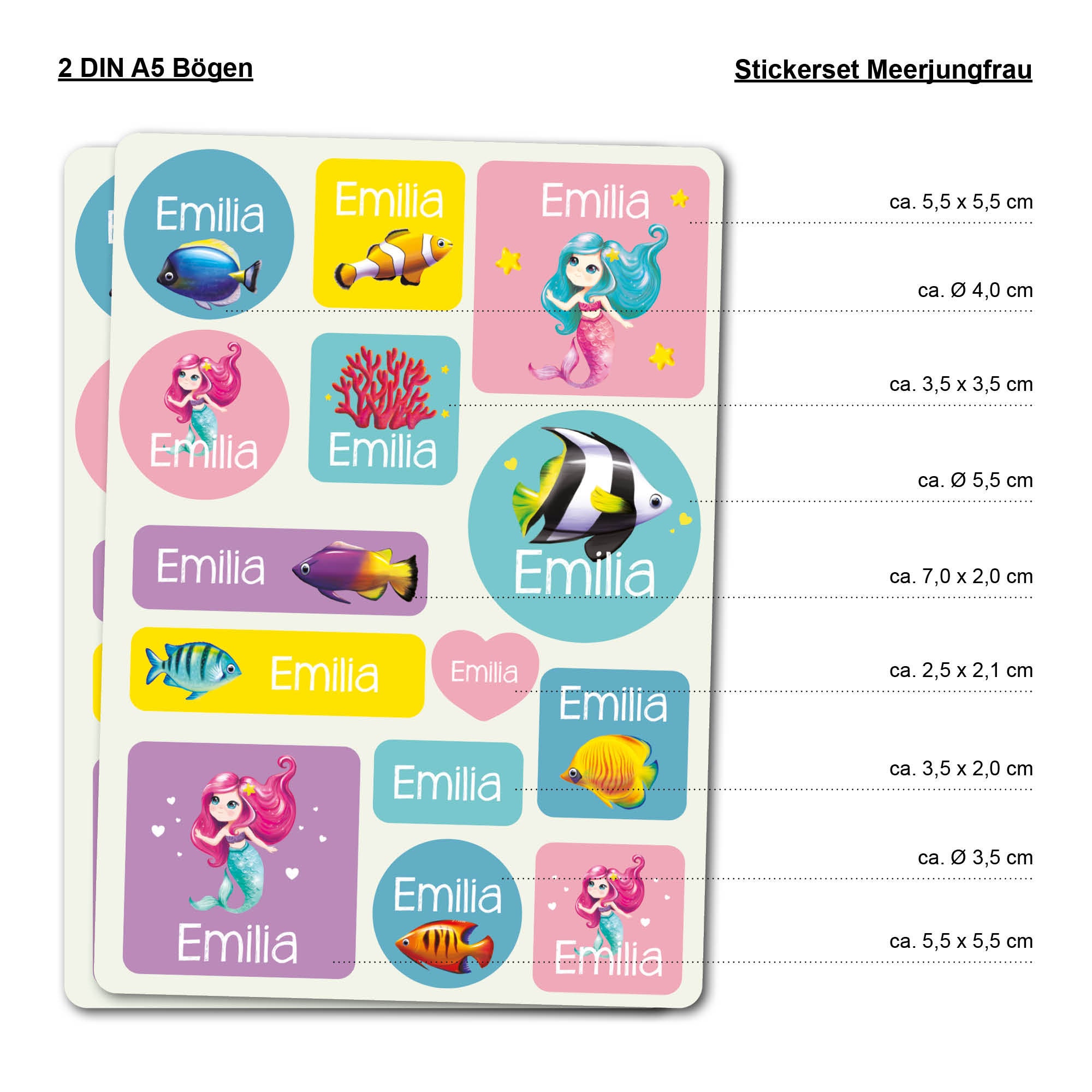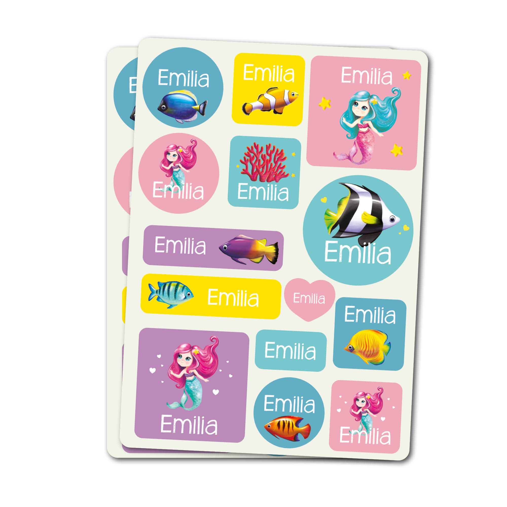 Sticker Set Aufkleber Fische Meerjungfrau Korallen maritim, Kinderzimmer Möbelaufkleber Aufkleberset mit Wunschnamen, Einschulung, Weihnachtsgeschenk