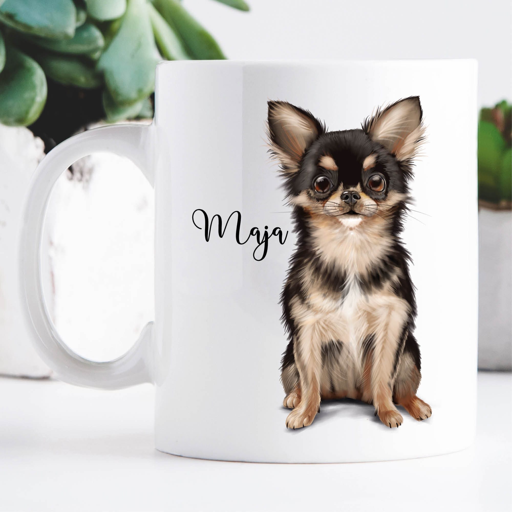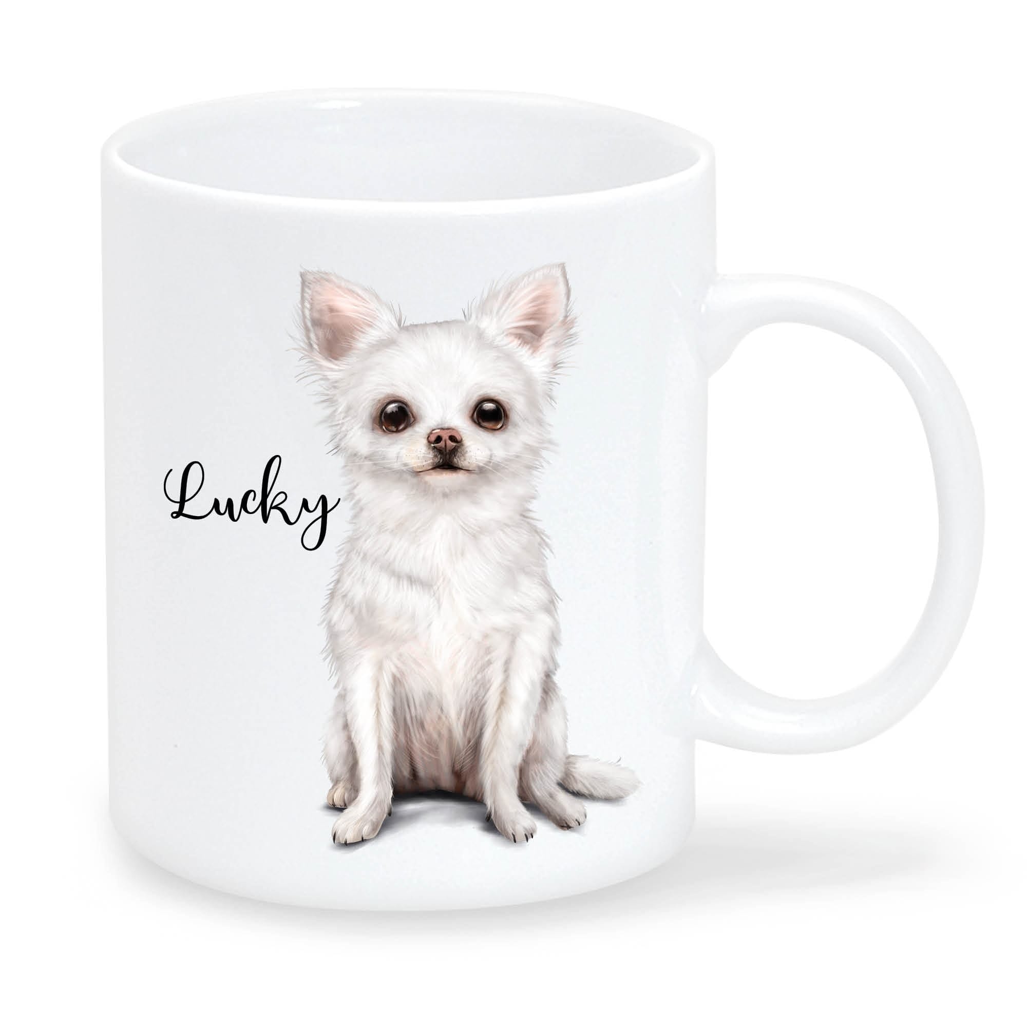 Keramiktasse bedruckt Hund Chihuahua mit Wunschnamen Kaffeetasse personalisiert Geschenk Geburtstag 330 ml