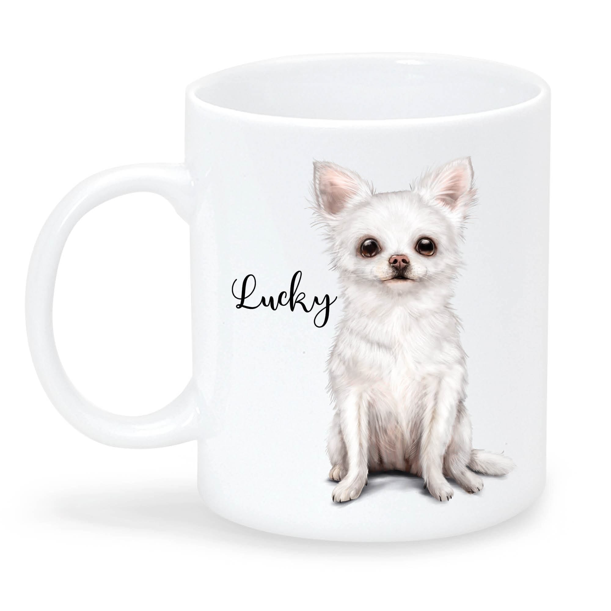 Verschenke diesen süßen Kaffeepott an den Besitzer eines Chihuahuas. Hundebesitzer freuen sich ganz sicher über die Tasse mit ihrem flauschigen Liebling. Durch die Personalisierung wird der Becher zu einem ganz individuellen Geschenk.