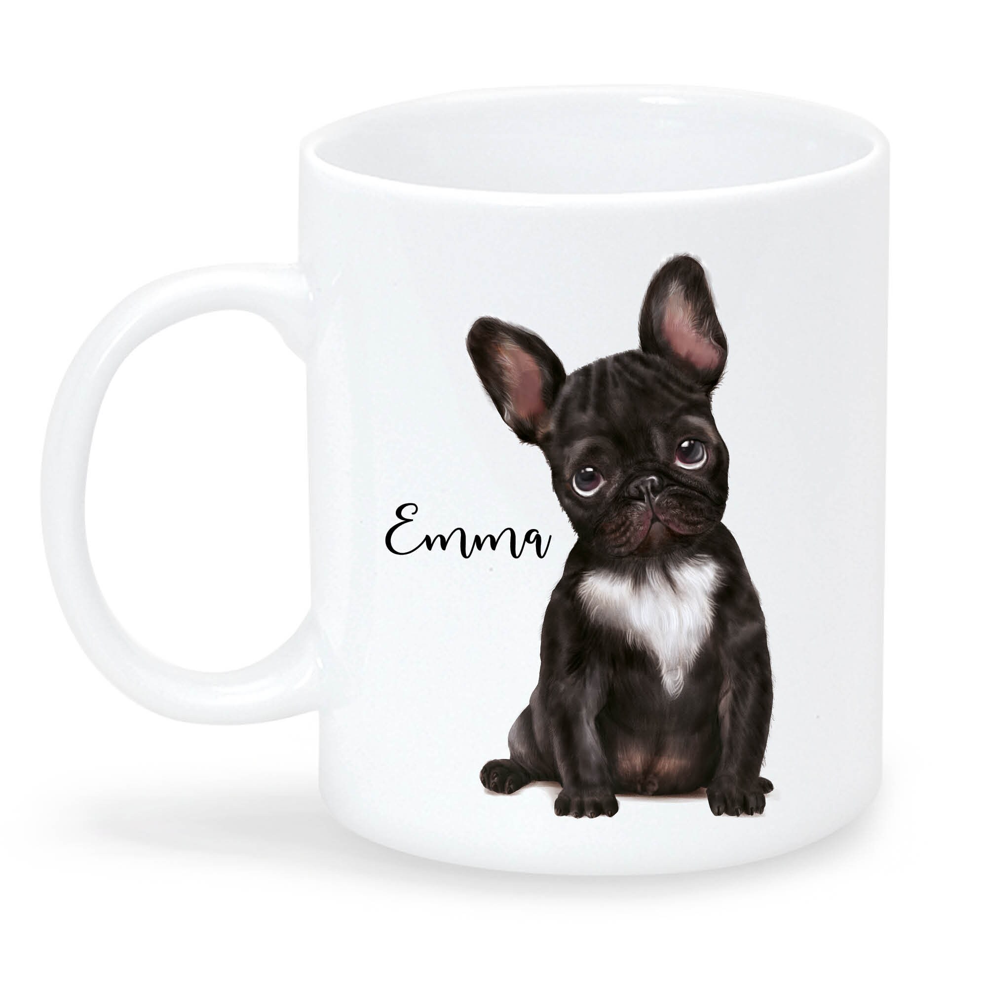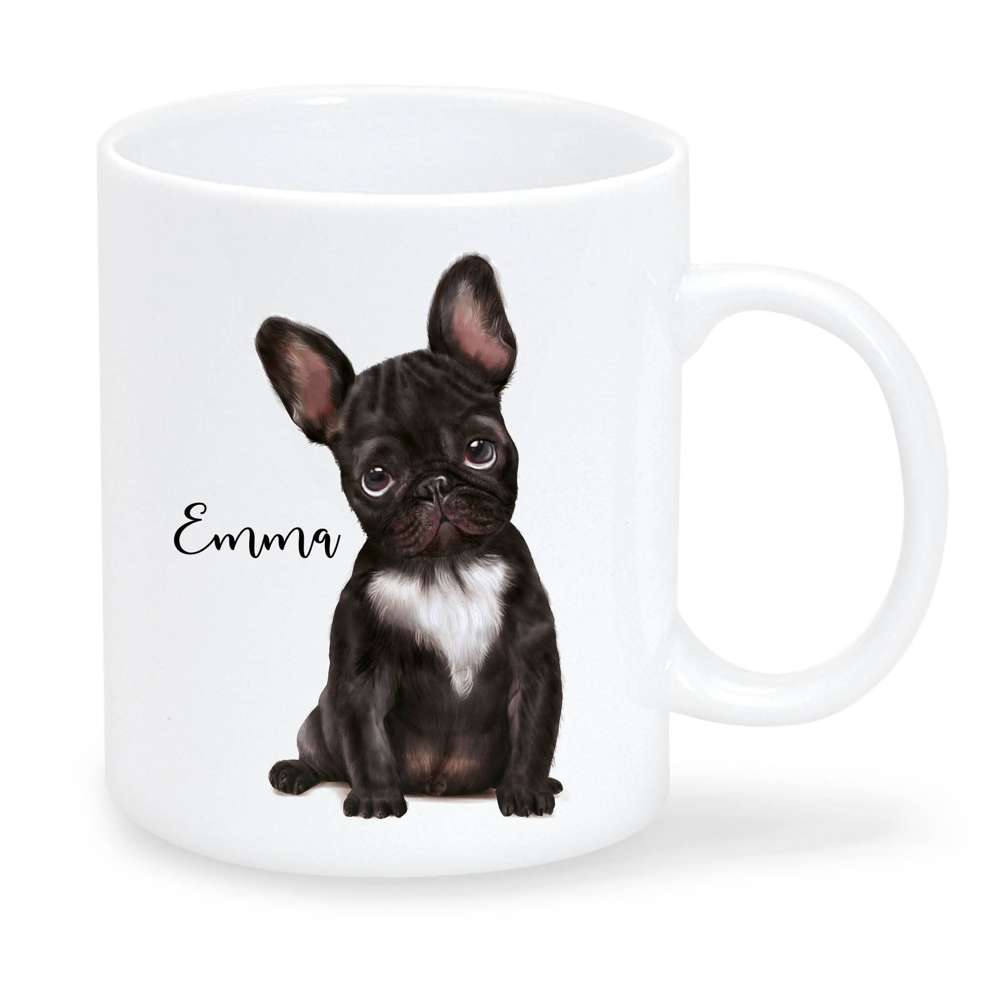 Keramiktasse bedruckt Hund Französische Bulldogge mit Wunschnamen Kaffeetasse personalisiert Geschenk Geburtstag 330 ml