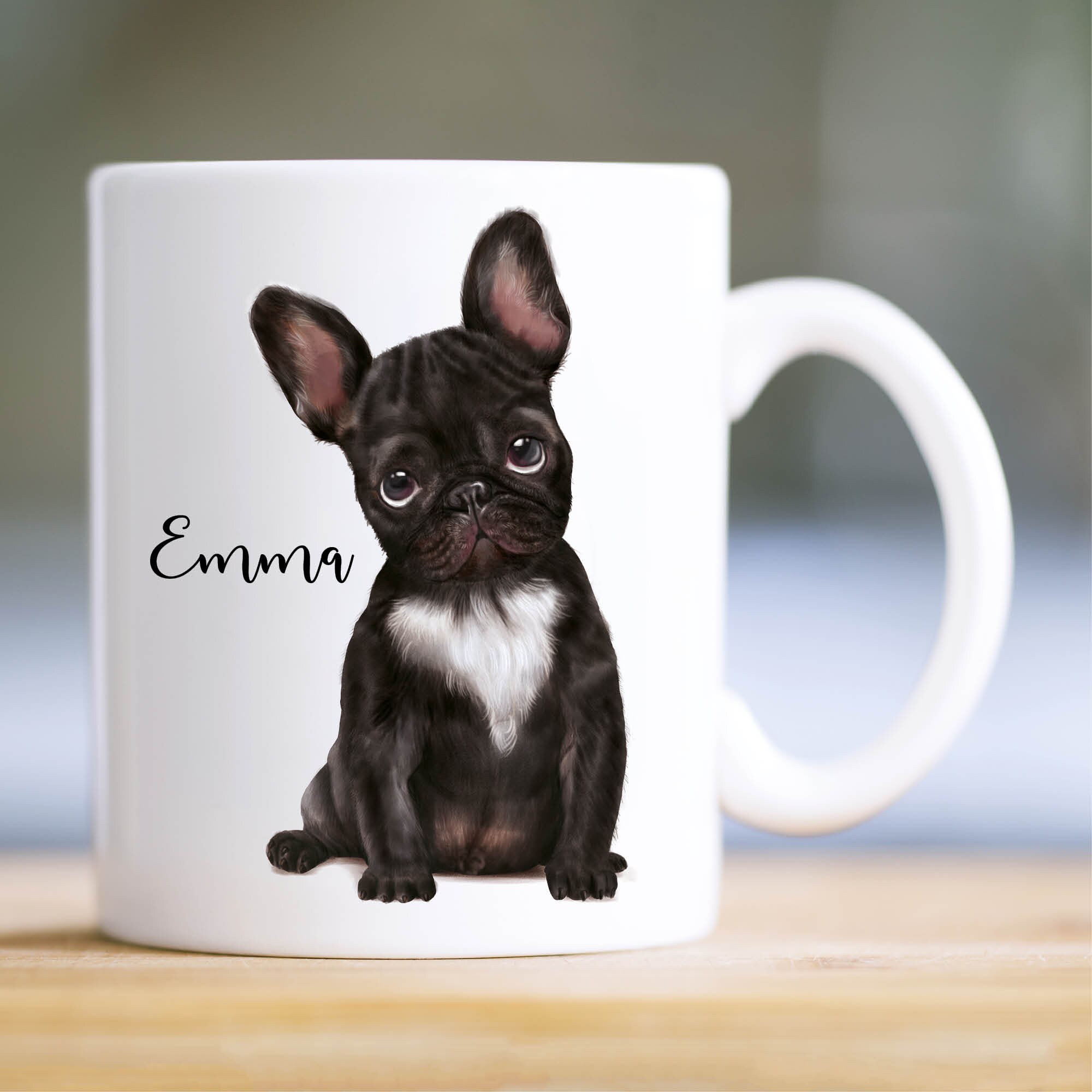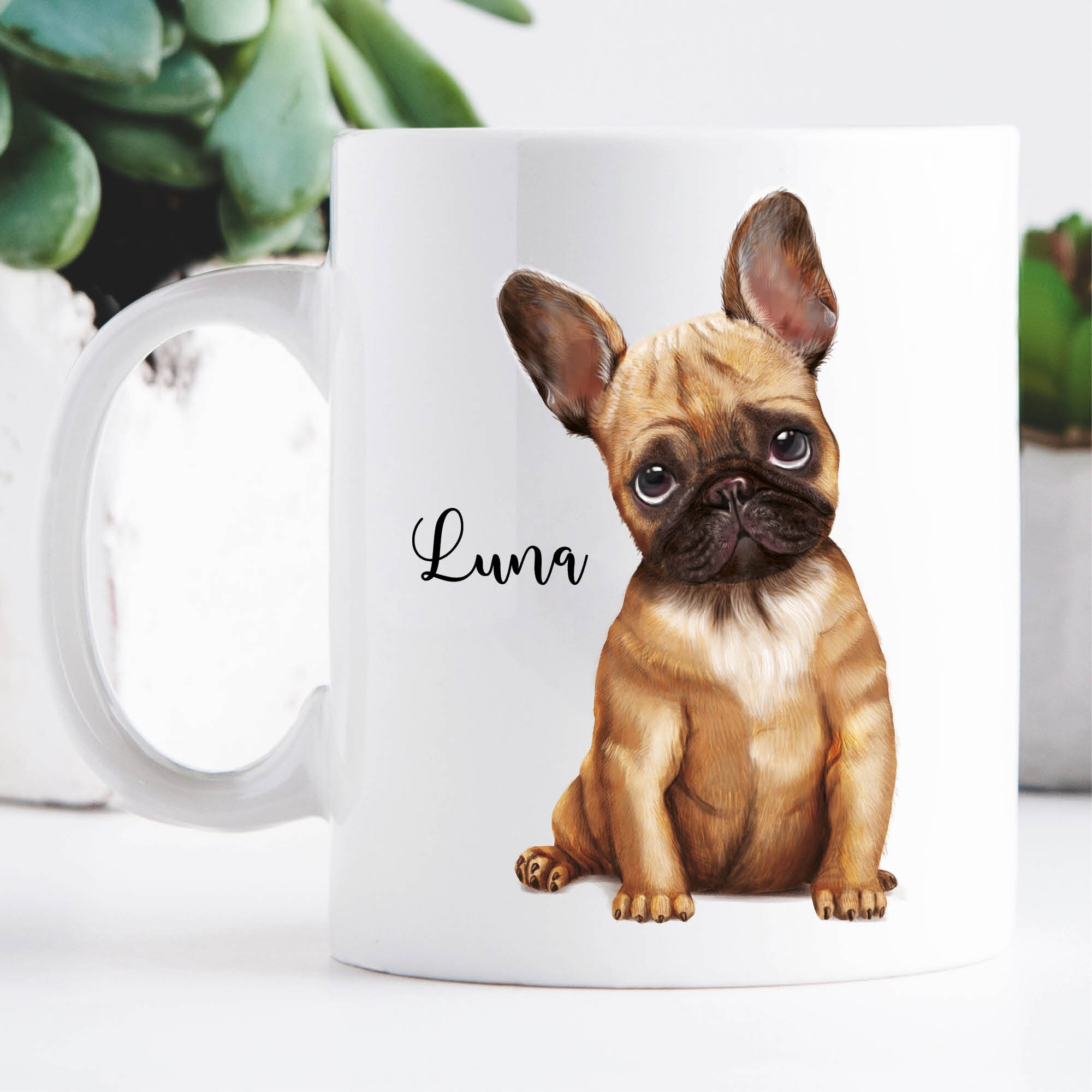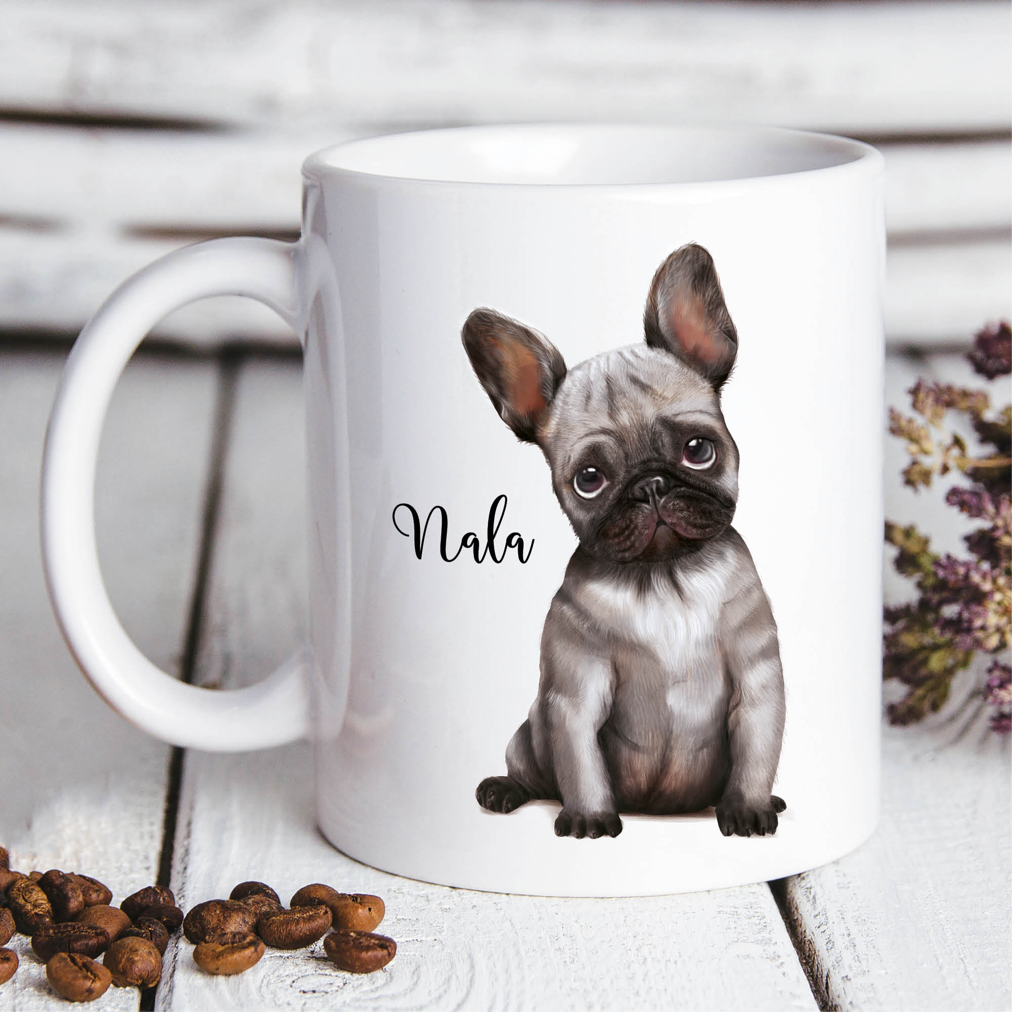 Verschenke diesen süßen Kaffeepott an den Besitzer einer Französischen Bulldogge. Hundebesitzer freuen sich ganz sicher über die Tasse mit ihrem flauschigen Liebling. Durch die Personalisierung wird der Becher zu einem ganz individuellen Geschenk.