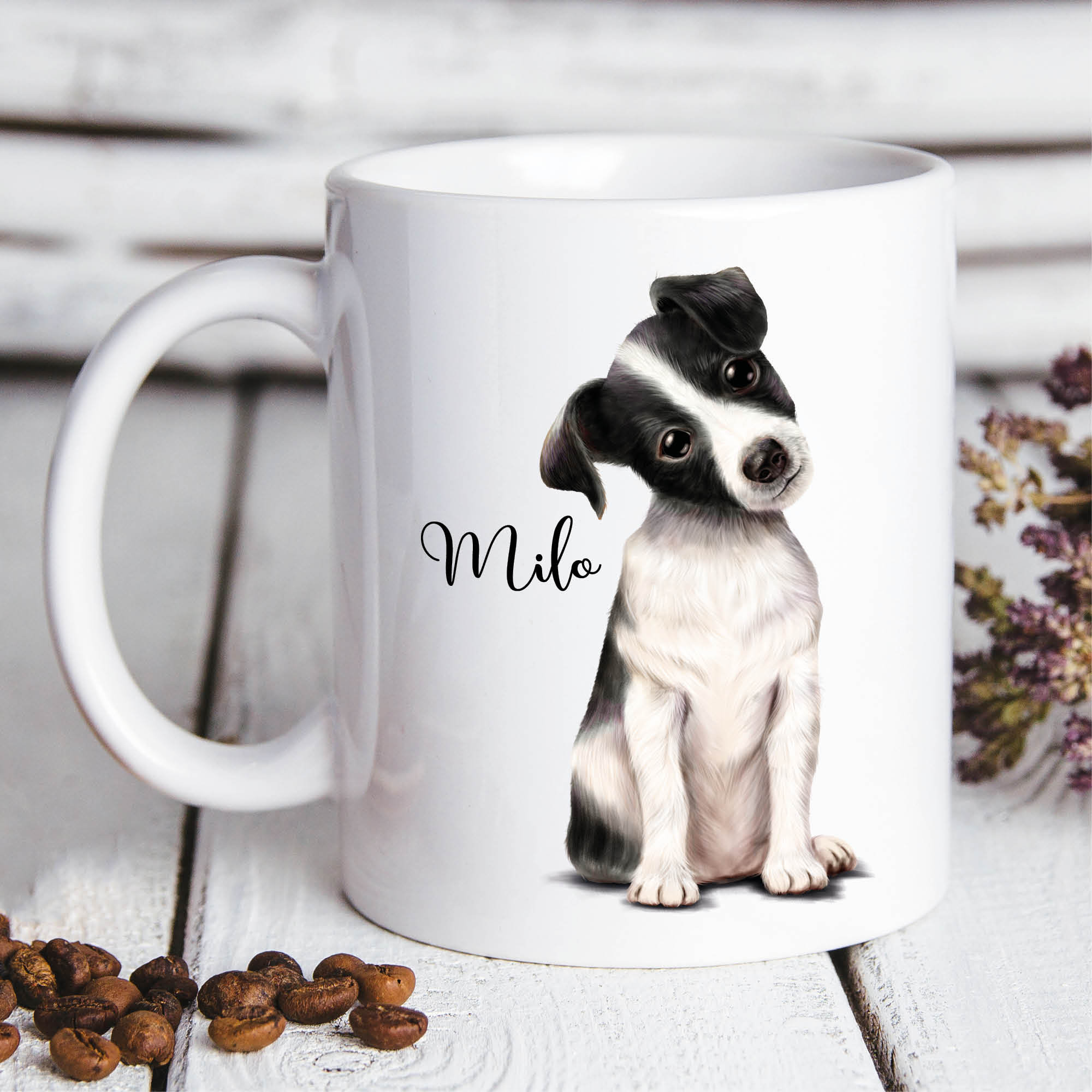 Verschenke diesen süßen Kaffeepott an den Besitzer eines Jack Russel Terrier. Hundebesitzer freuen sich ganz sicher über die Tasse mit ihrem flauschigen Liebling. Durch die Personalisierung wird der Becher zu einem ganz individuellen Geschenk.