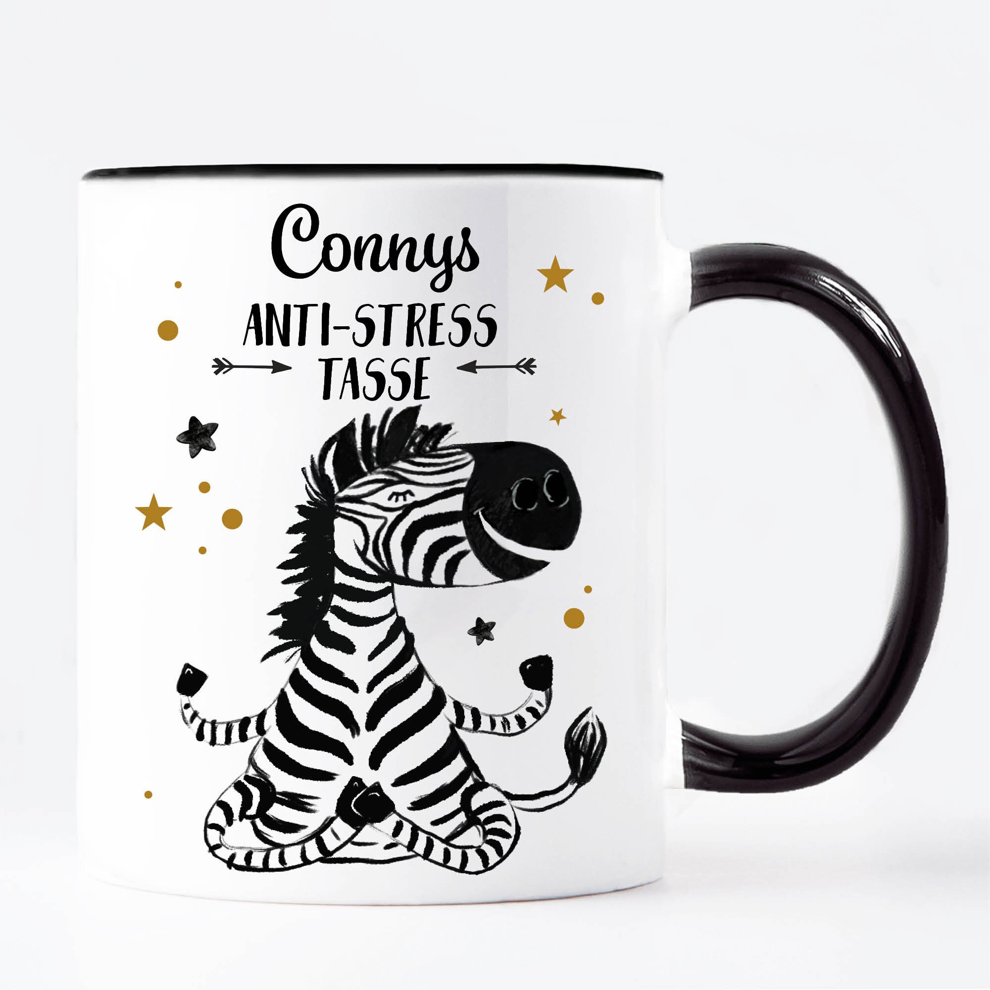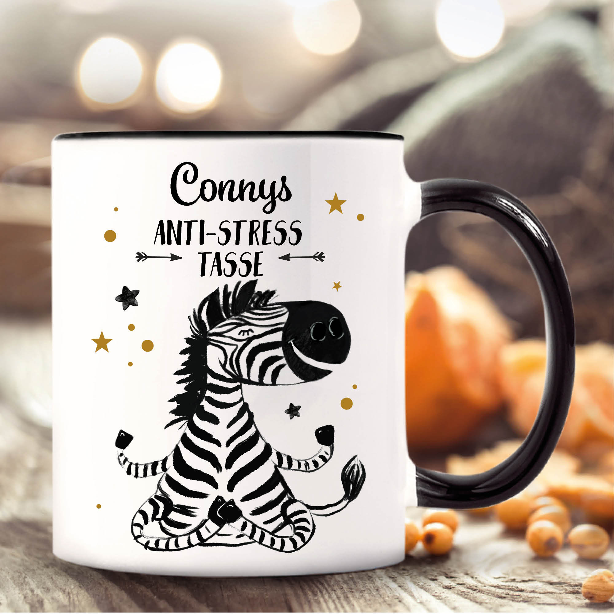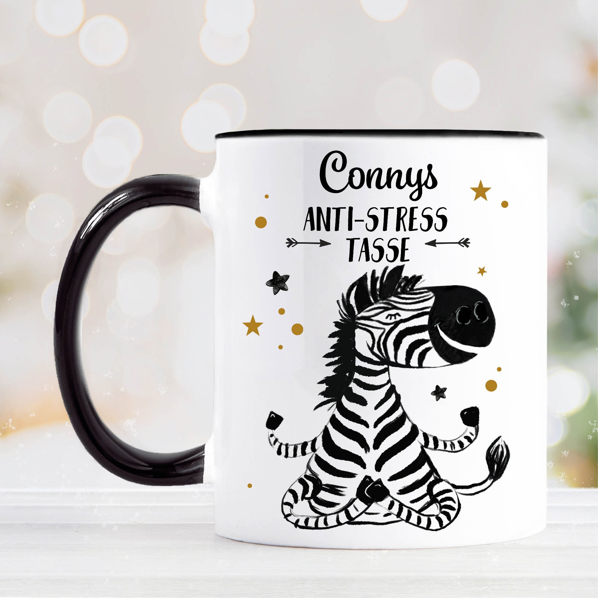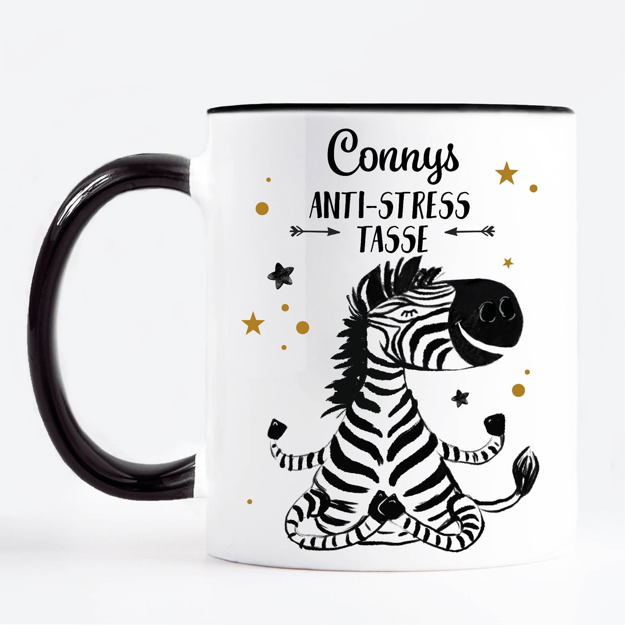 Tasse bedruckt Zebra Yoga Anti-Stress Tasse personalisiert mit Namen, Geschenk Freundin, Kaffeetasse Kaffeebecher