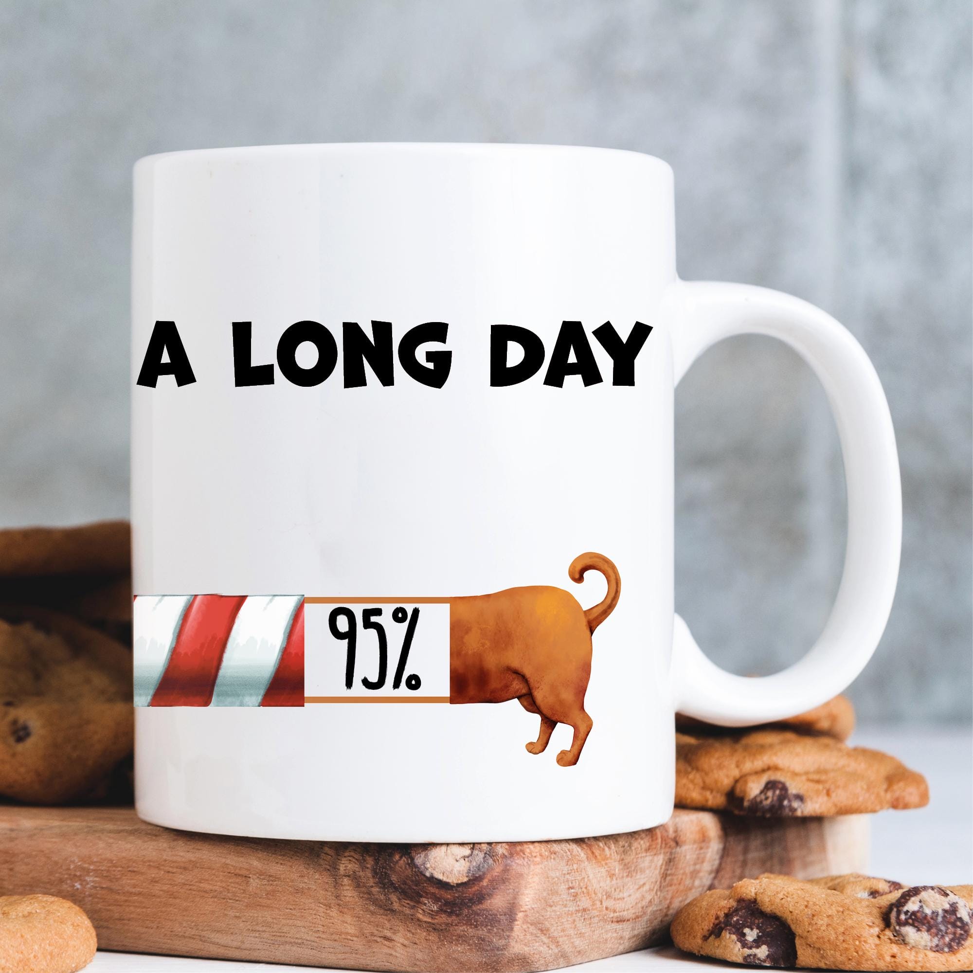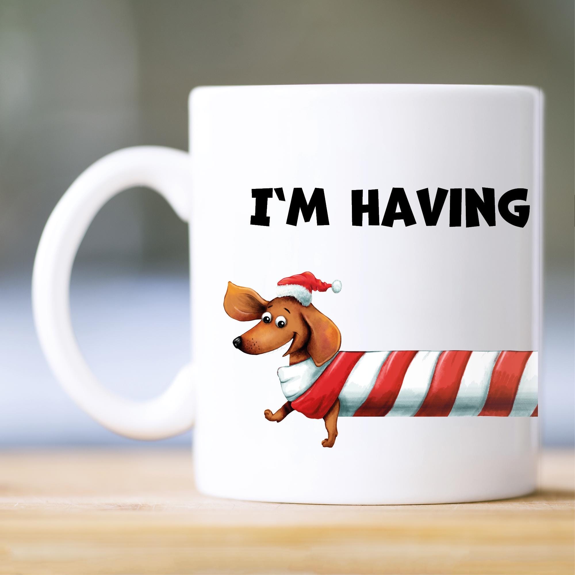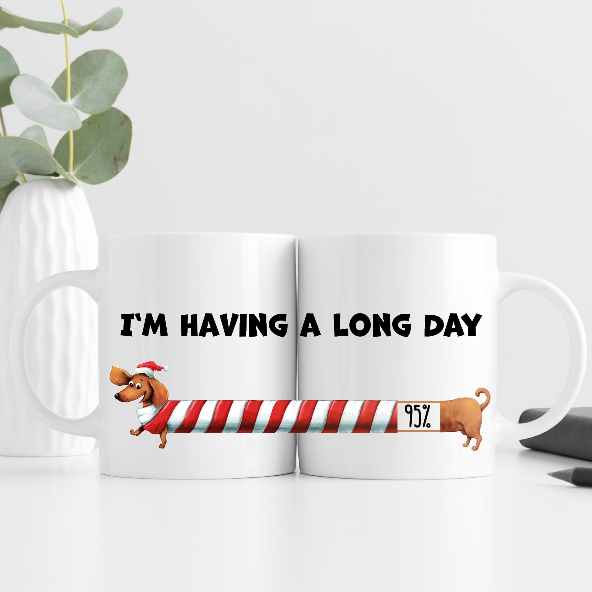 Auf dem Bild ist das Produkt: Tasse Dackel Long day Weihnachtszeit bedruckt Dackel I’m having a long day zum Preis von €10.9 abgebildet.
