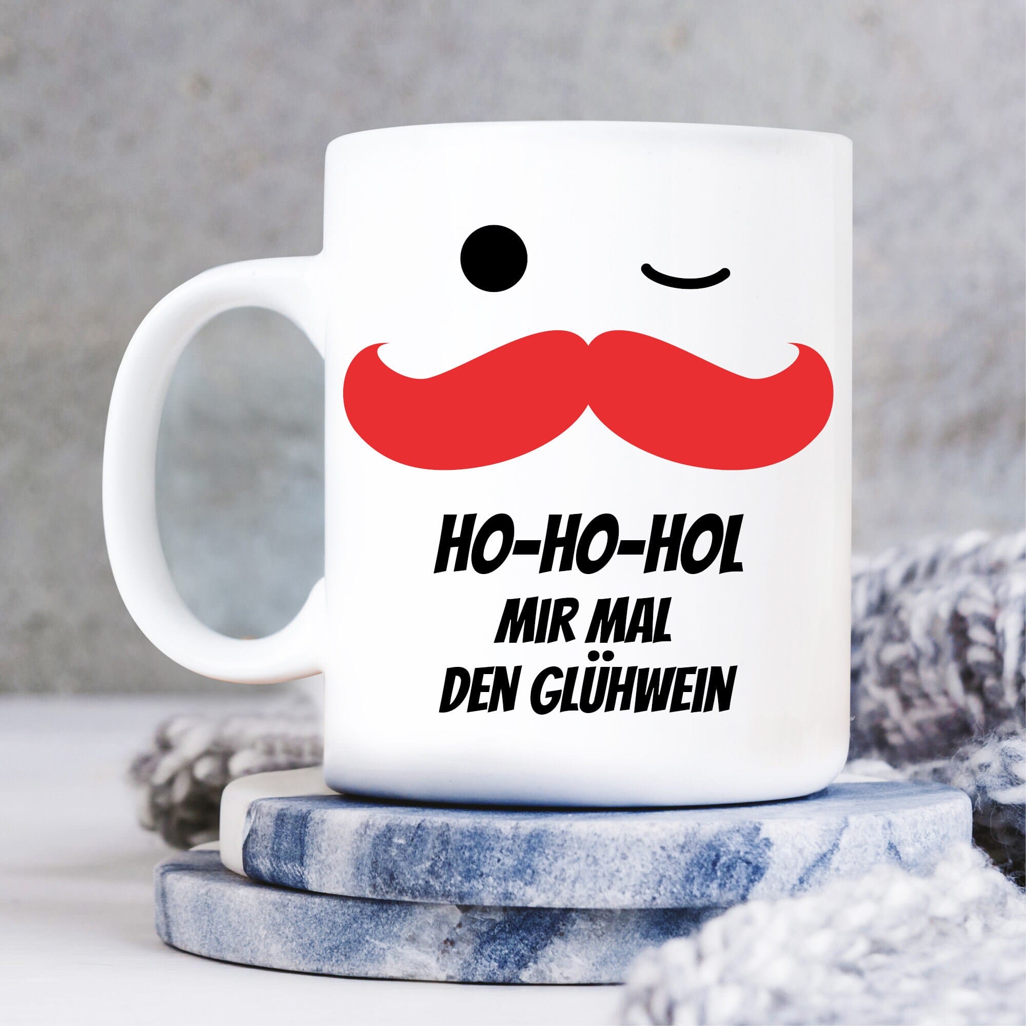Weihnachtliche Keramiktasse mit witzigem Glühwein-Spruch