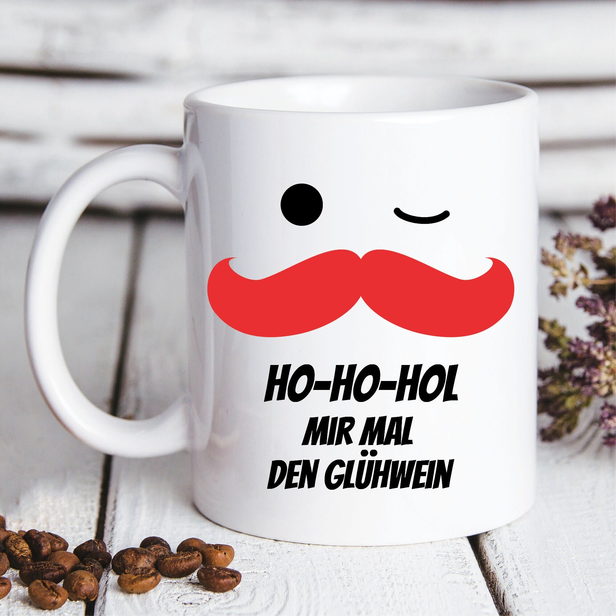 Verbreite gute Laune in der kalten Jahreszeit mit dieser originellen Keramiktasse! Der beidseitige Druck zeigt einen roten Weihnachtsmann-Bart und den humorvollen Spruch: „Ho-ho-hol mir mal den Glühwein“. Perfekt für gemütliche Winterabende mit einem heißen Getränk, sei es Glühwein, Tee oder Kakao.