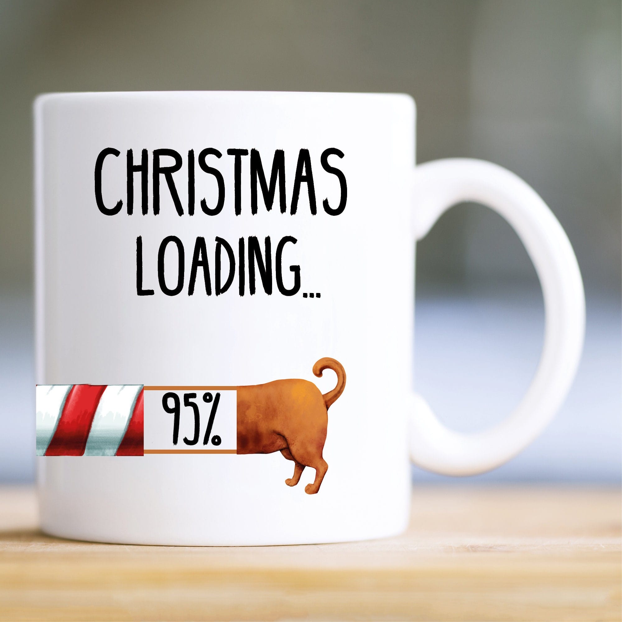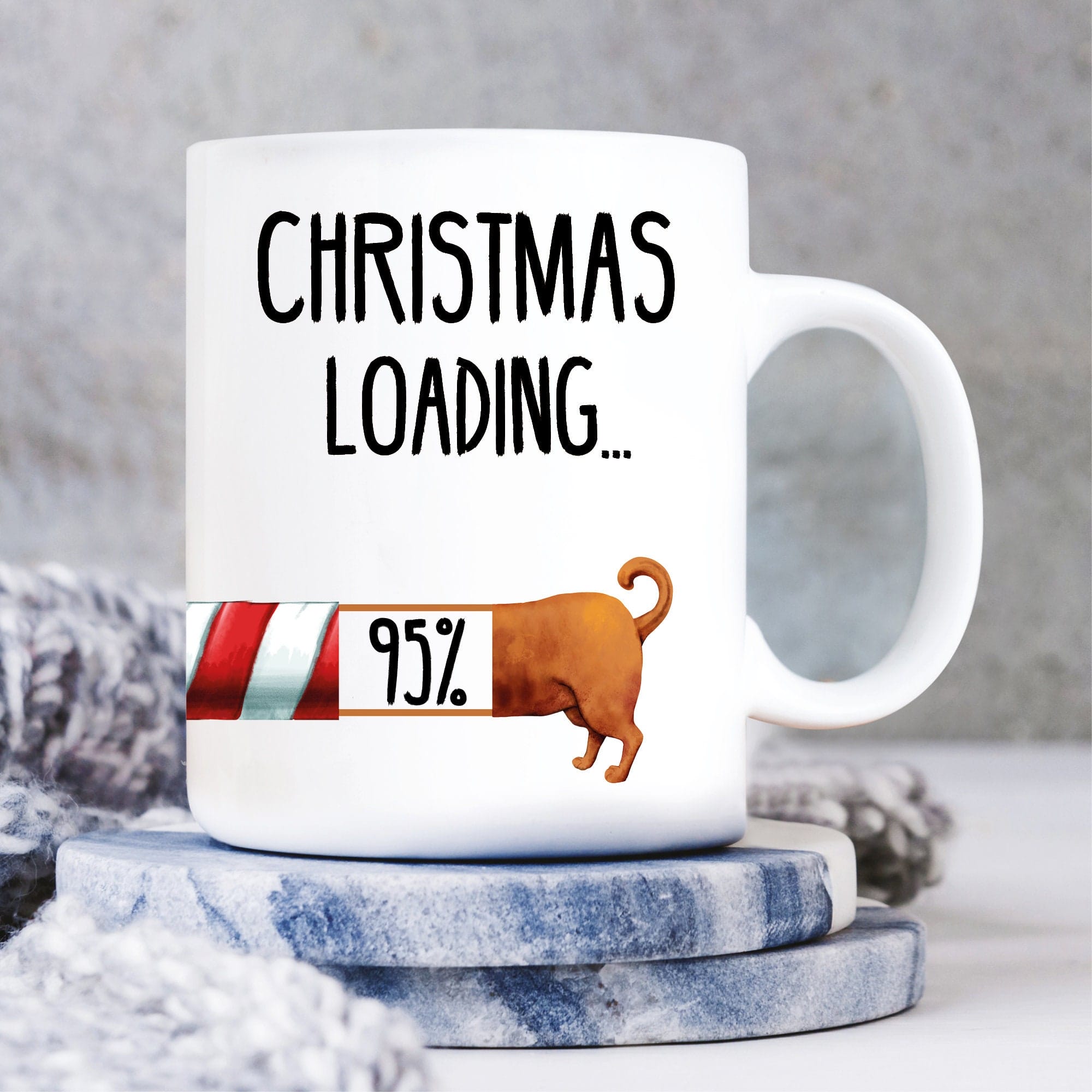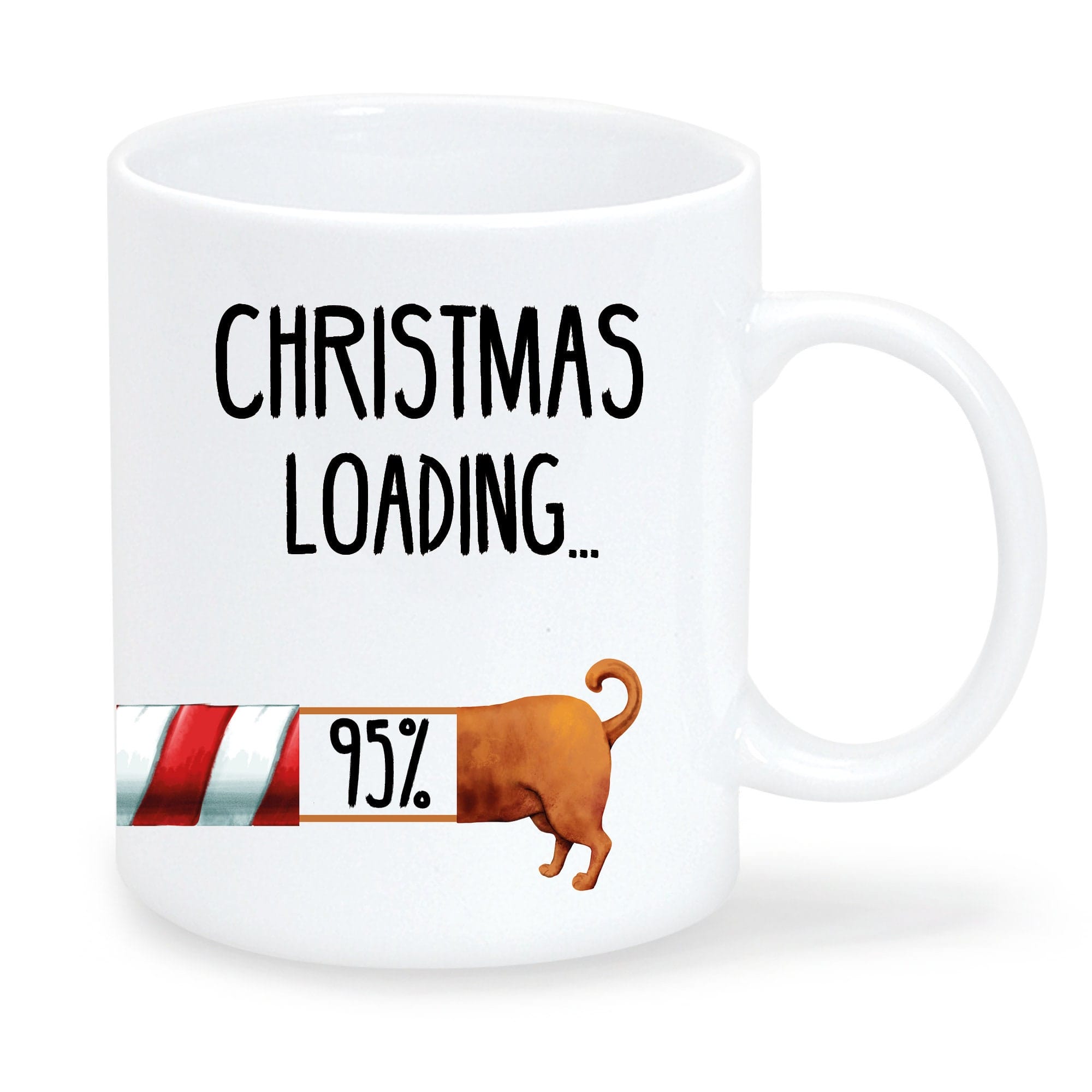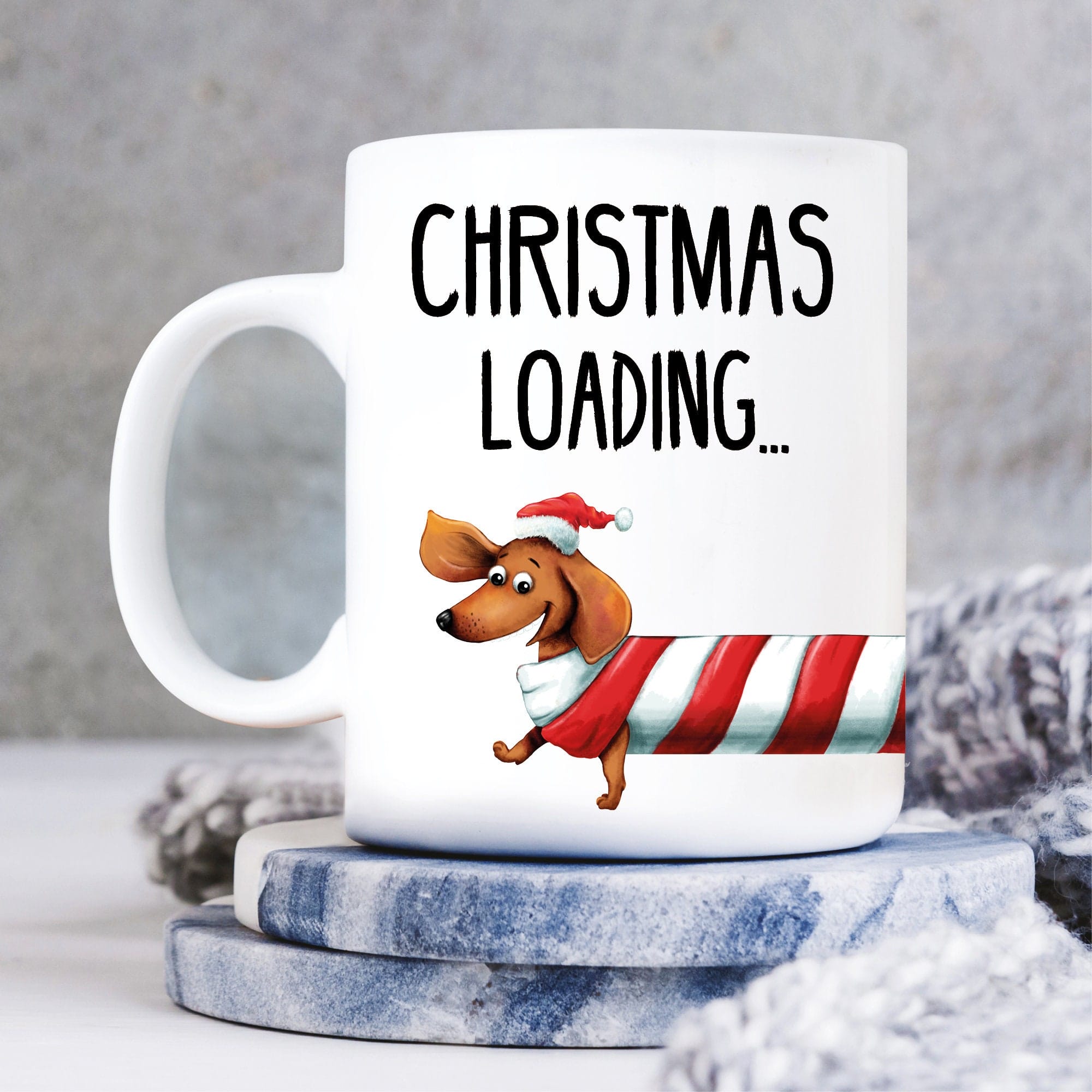 Auf dem Bild ist das Produkt: Bedruckte Tasse Weihnachtszeit Hund Dackel Christmas loading Weihnachtsgeschenk zum Preis von €15.90 abgebildet.