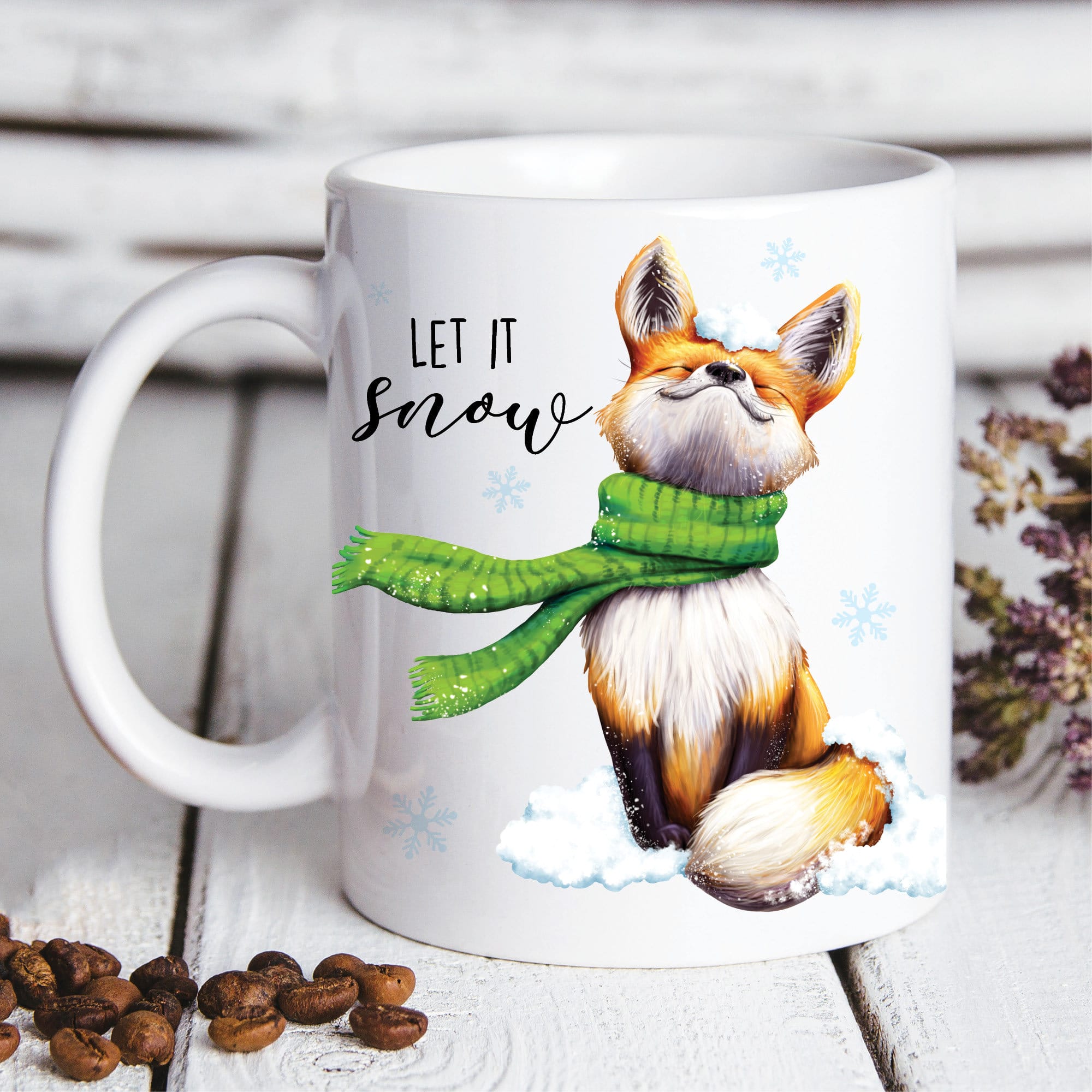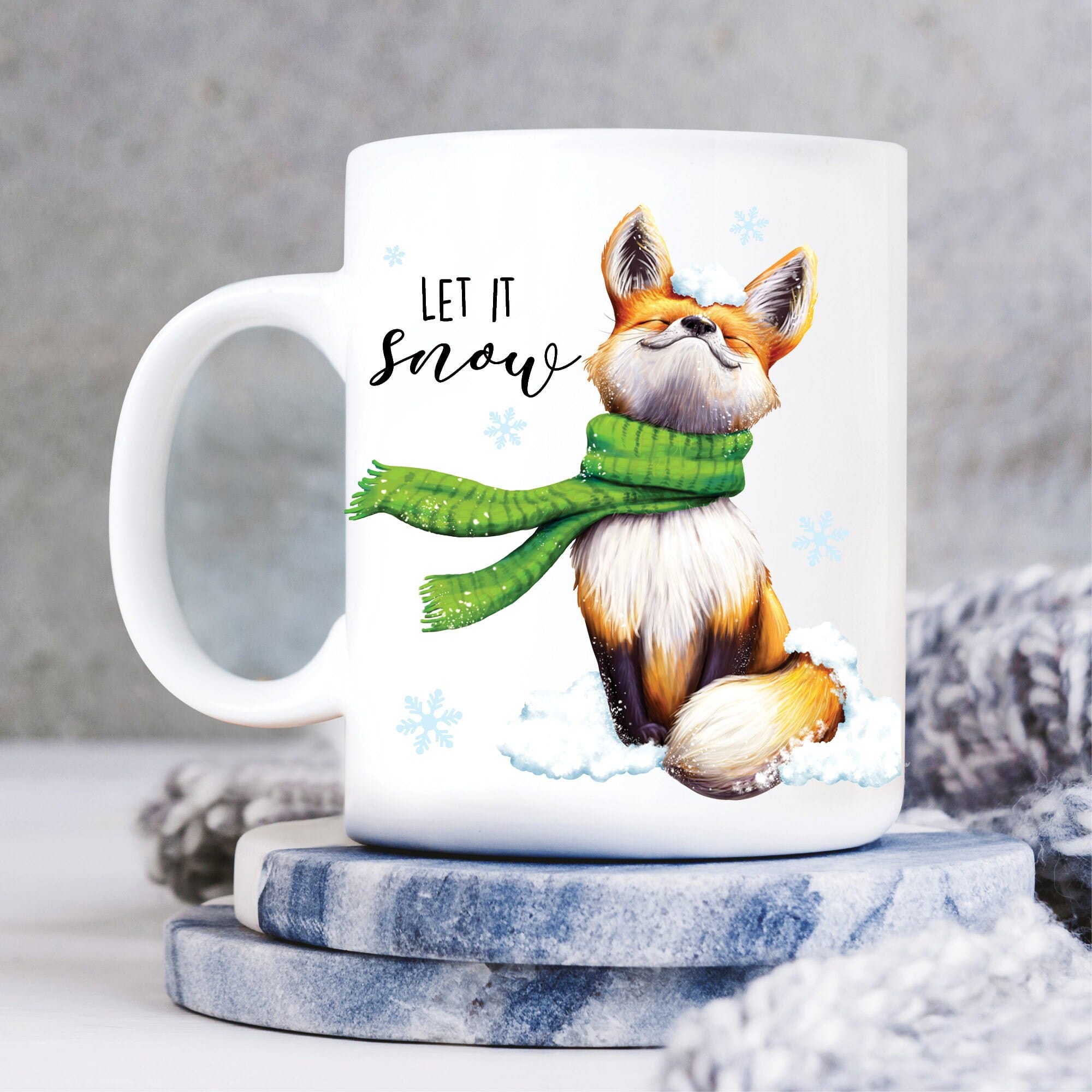 Auf dem Bild ist das Produkt: Tasse für die Winterzeit bedruckt Fuchs Let it snow, Geschenk Kaffeetasse Kaffeebecher, Winter zum Preis von €15.90 abgebildet.