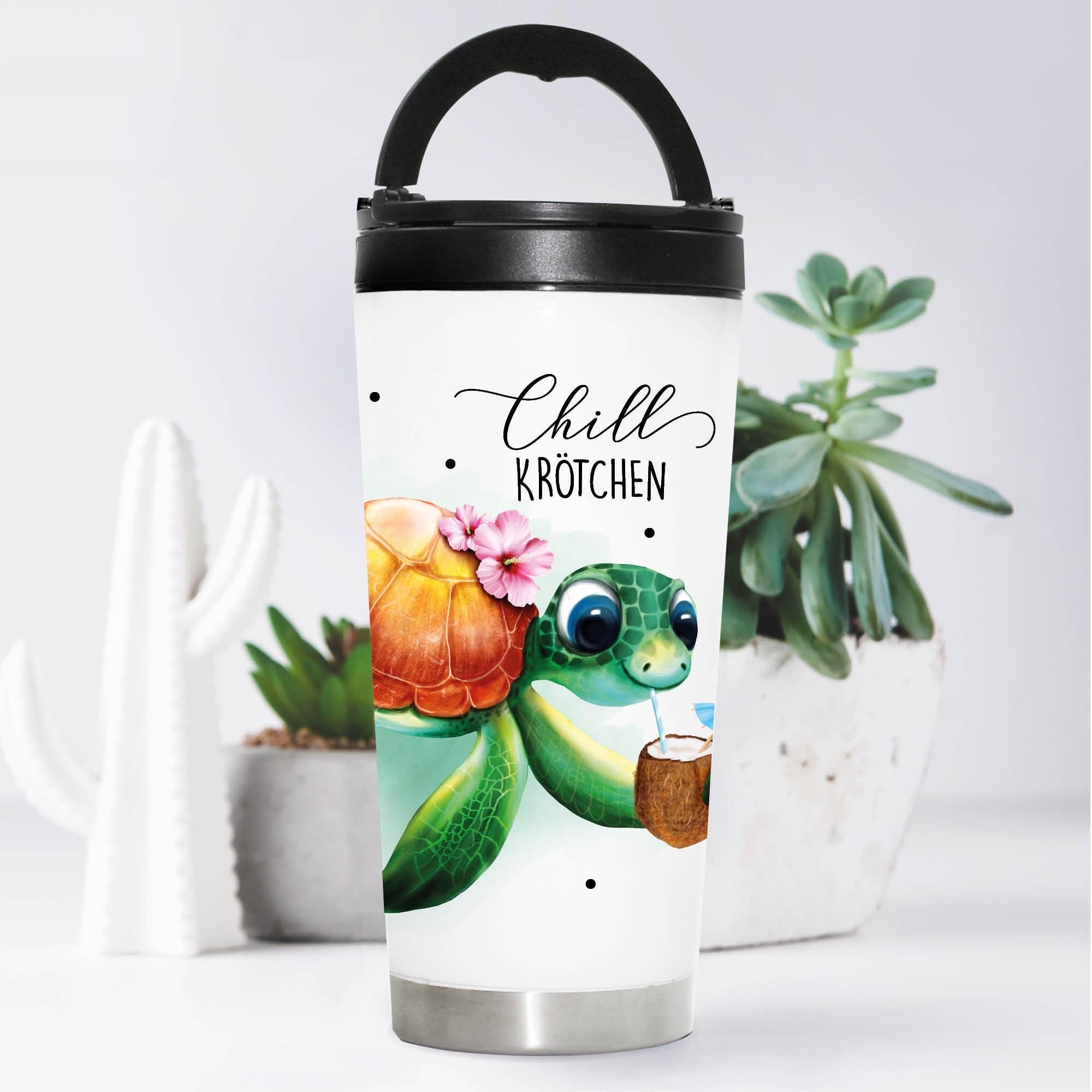 Thermobecher Chillkrötchen Schildkröte Kaffeebecher to go Geschenk Geburtstag Trinkbecher isoliert