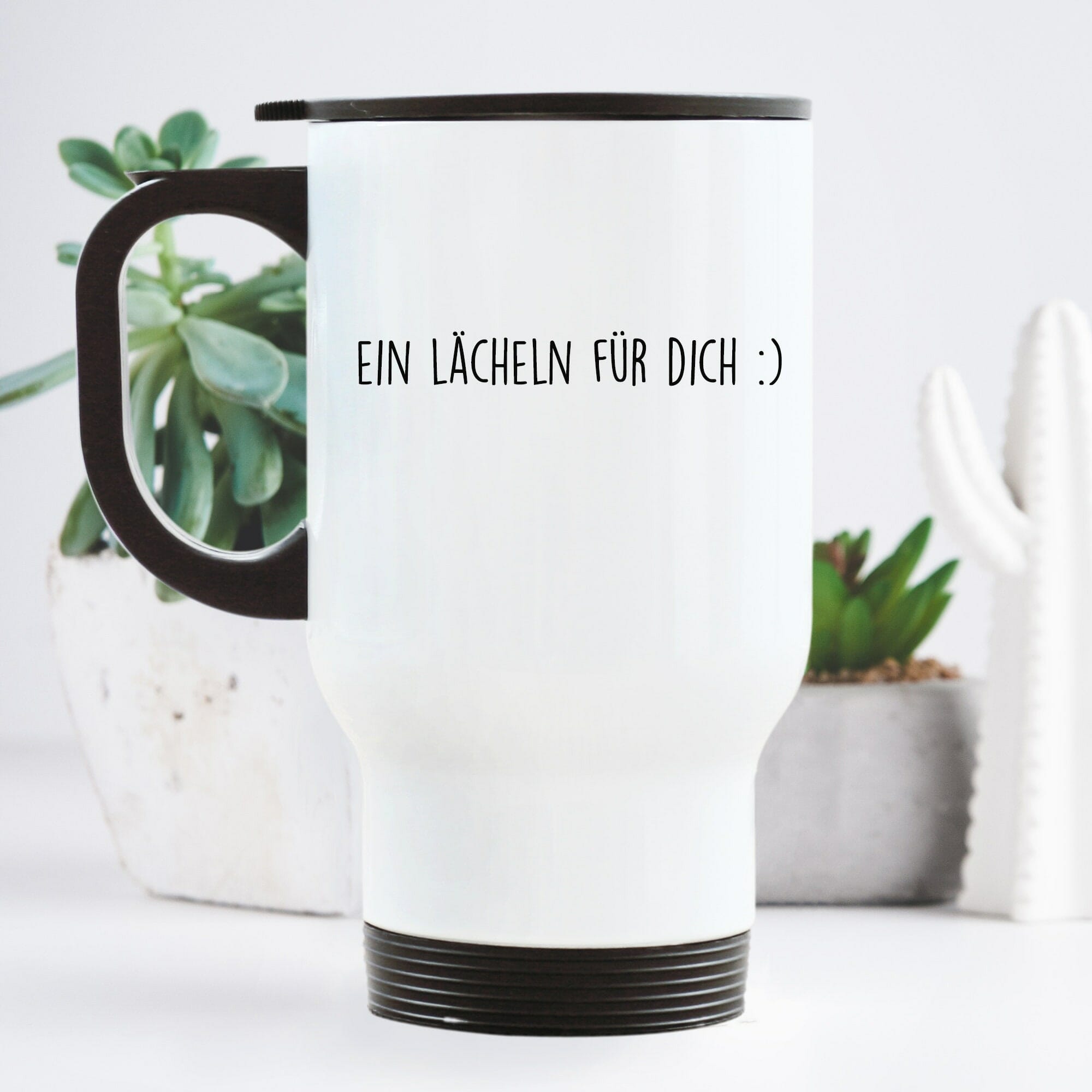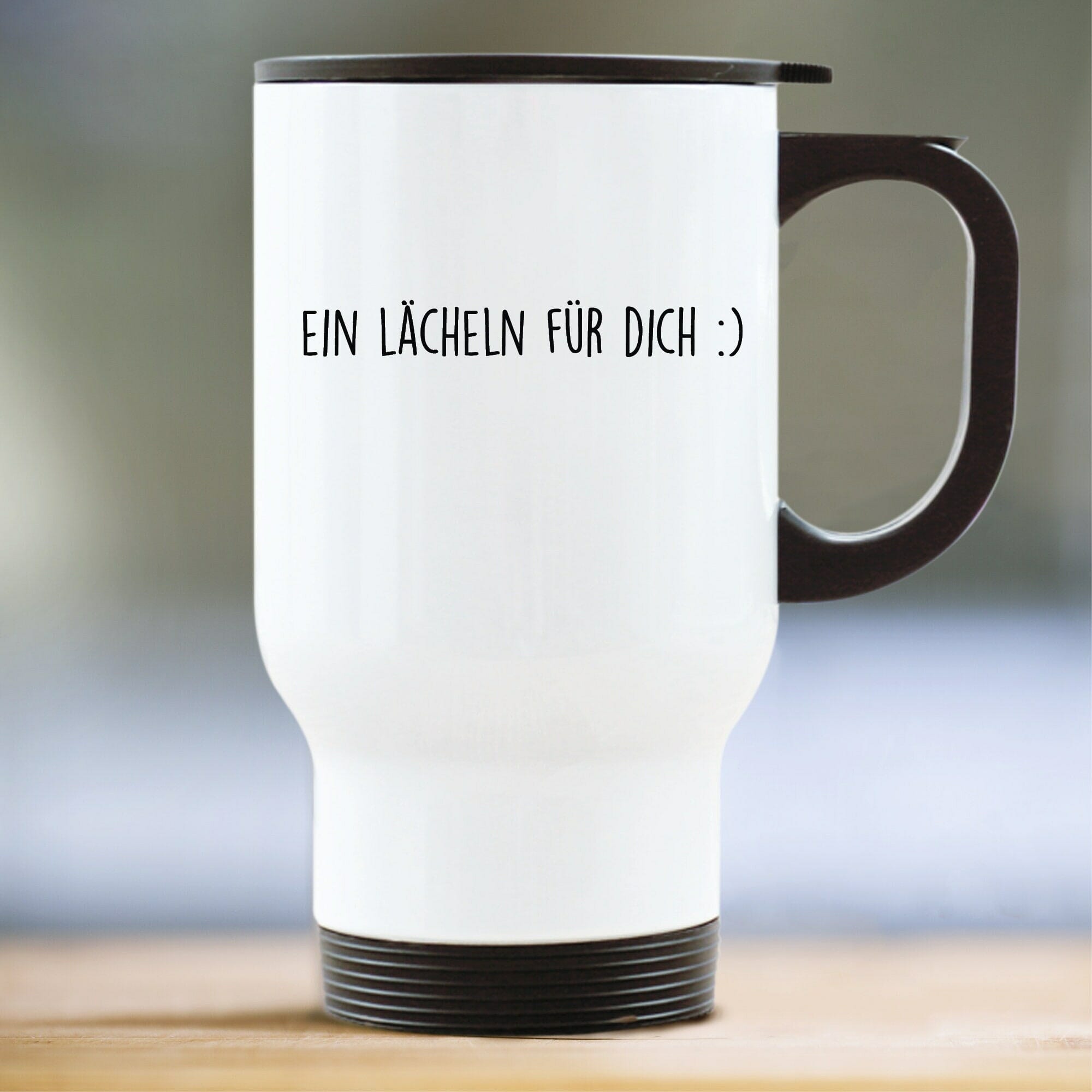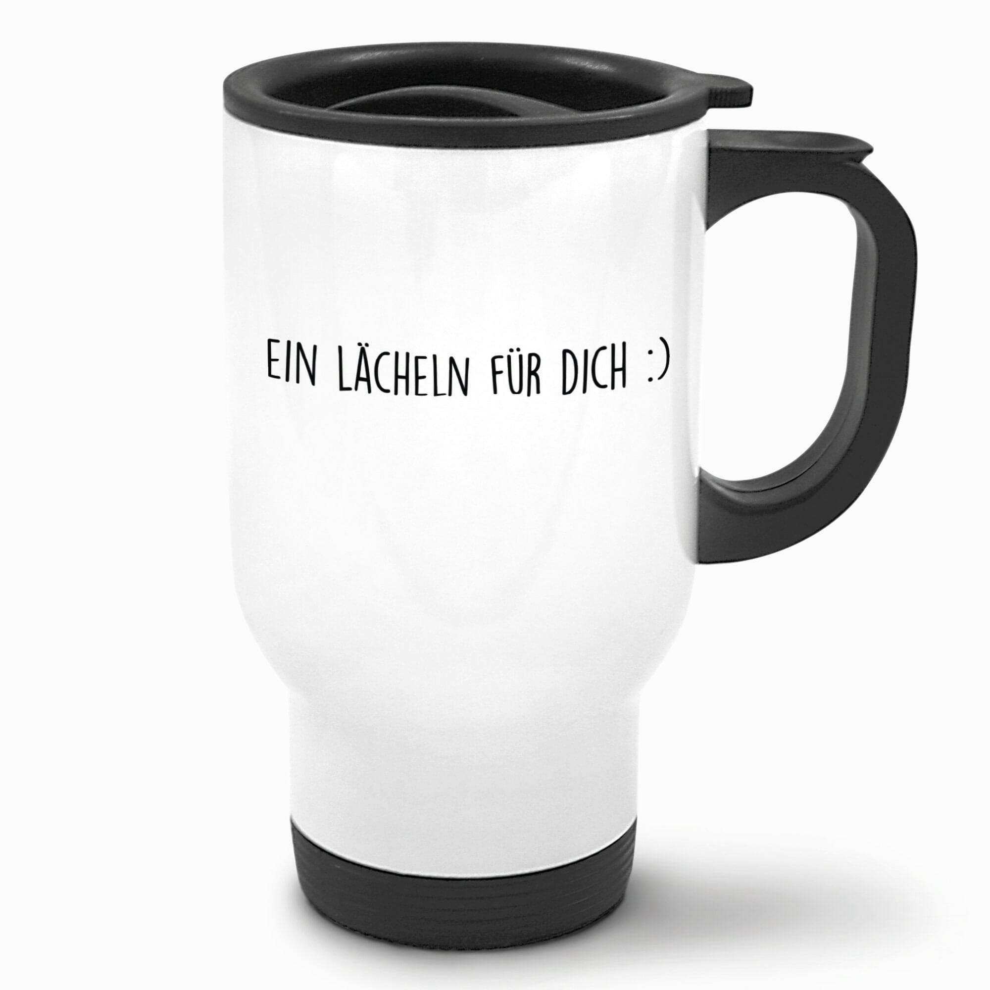 Edelstahl Thermobecher To Go bedruckt mit Spruch Ein Lächeln für dich Kaffeebecher 390 ml mit Griff