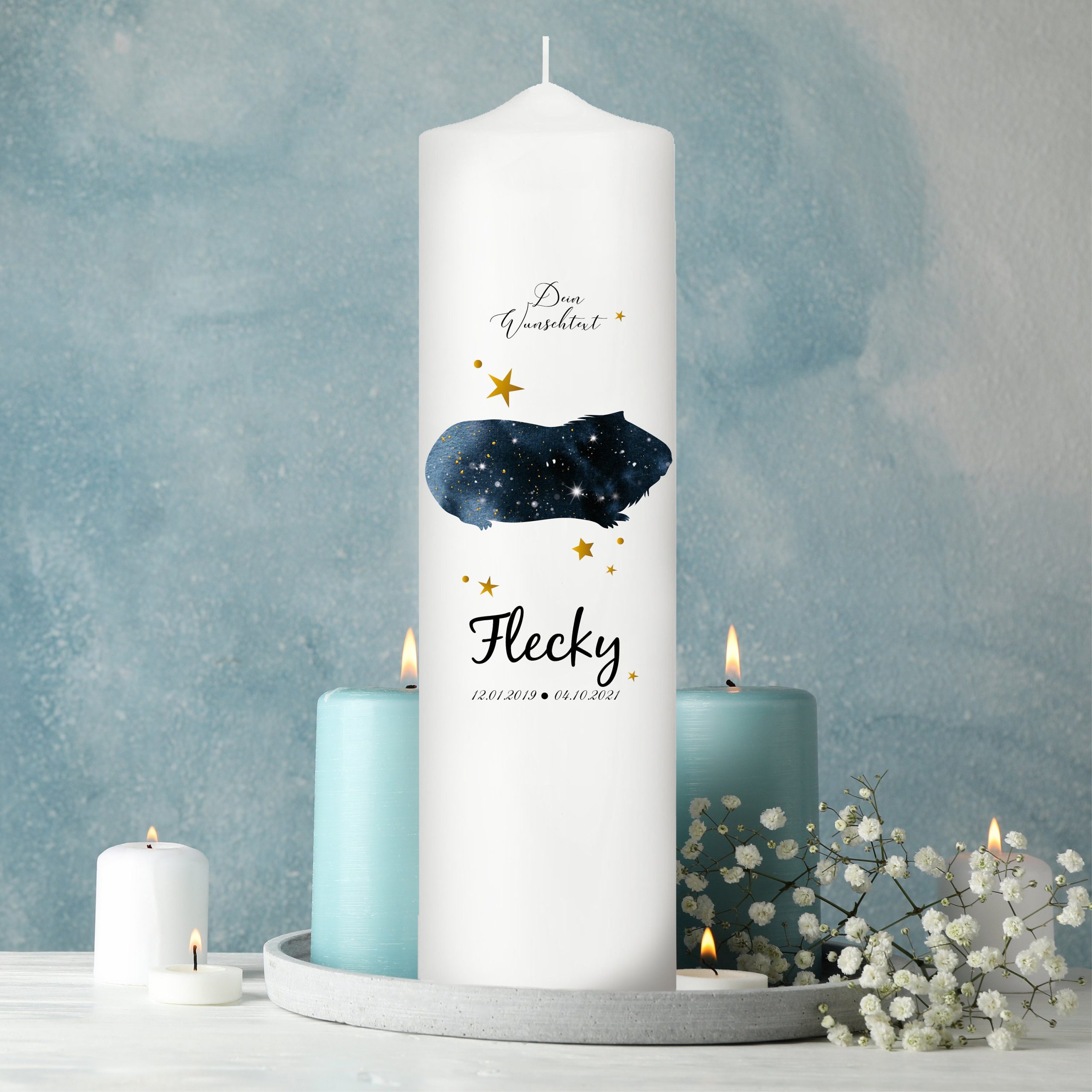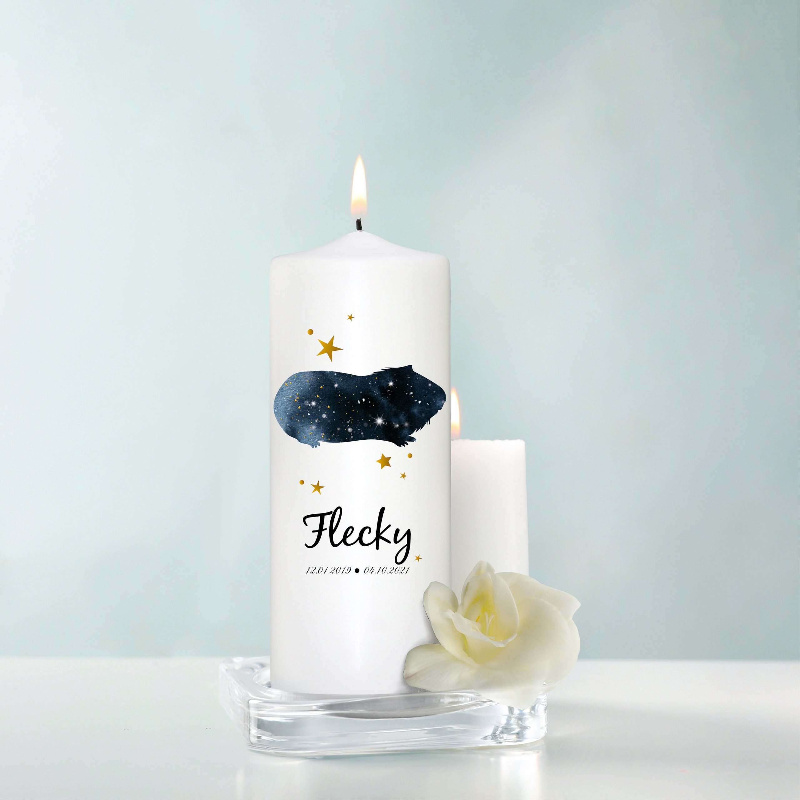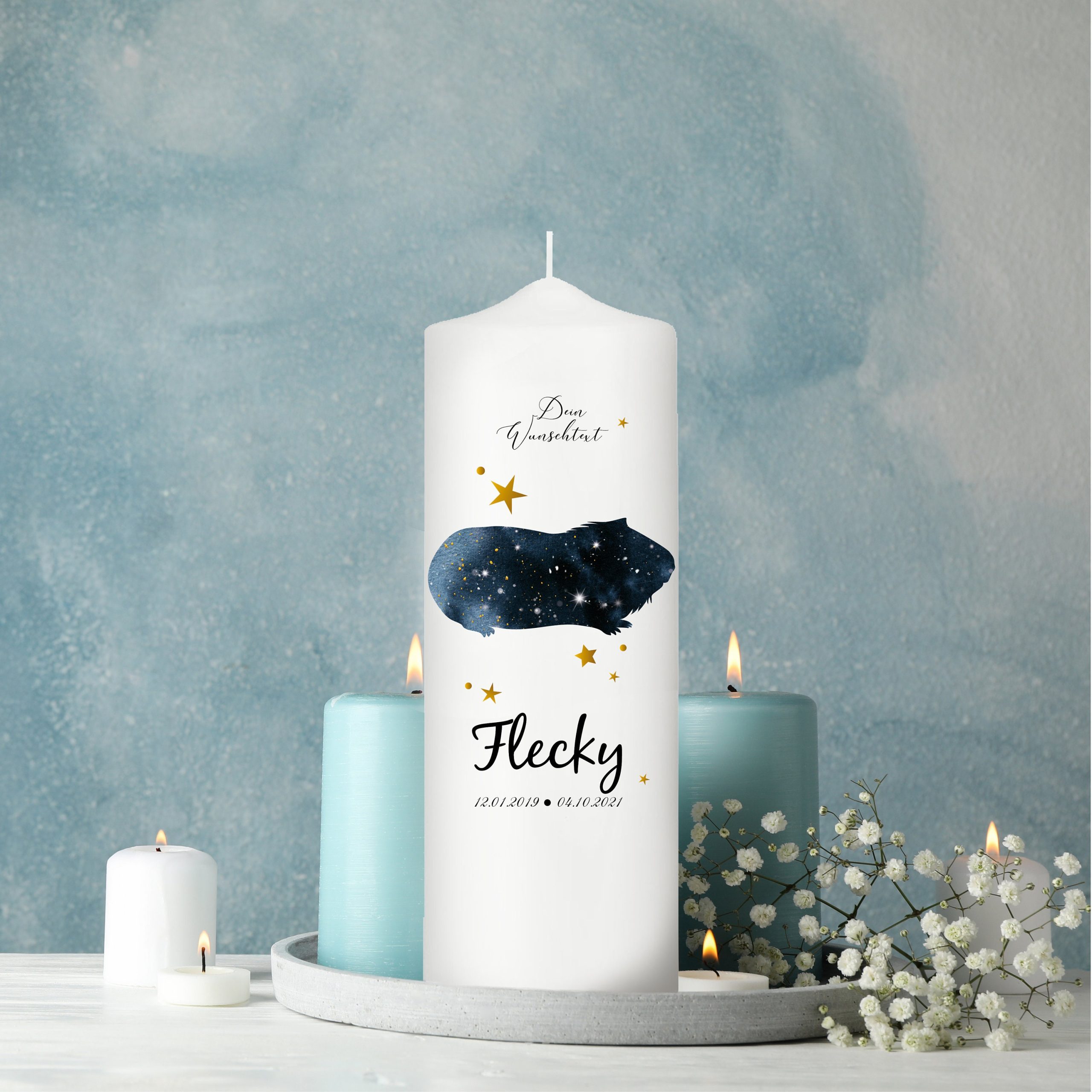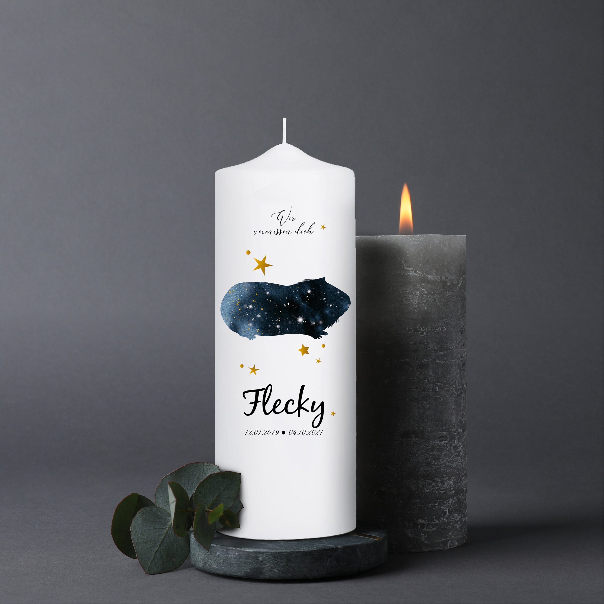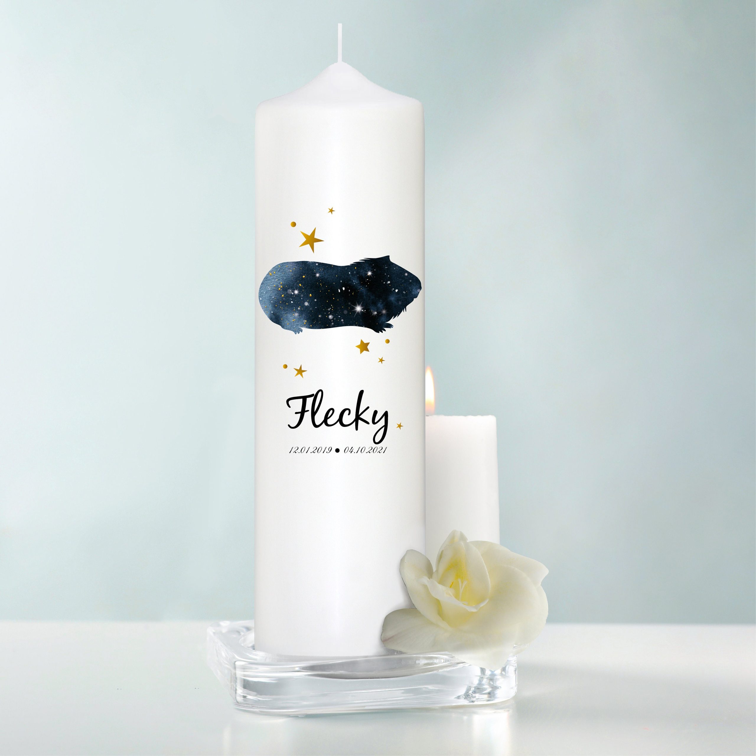 Trauerkerze für Tier Meerschwein Meerschweinchen mit Silhouette personalisiert mit Namen und Datum