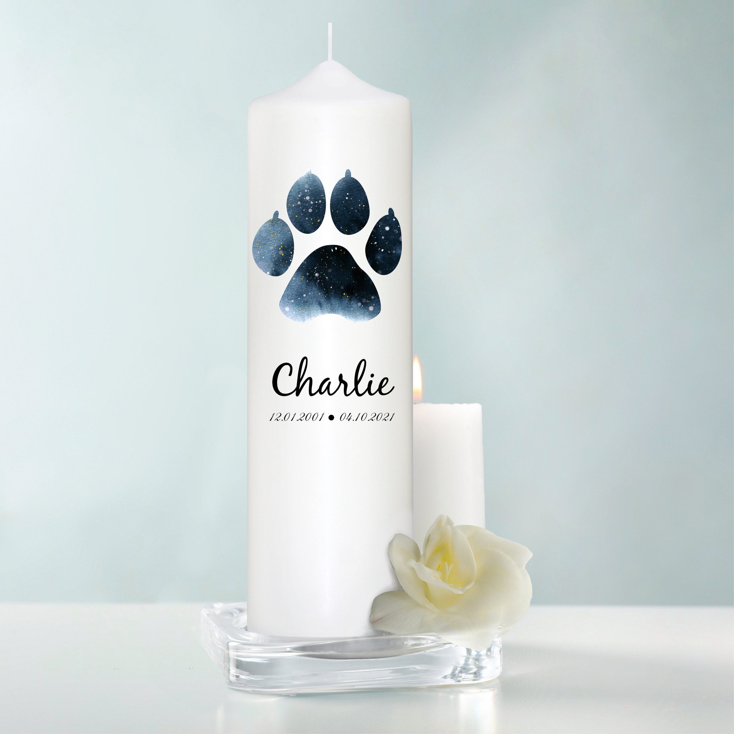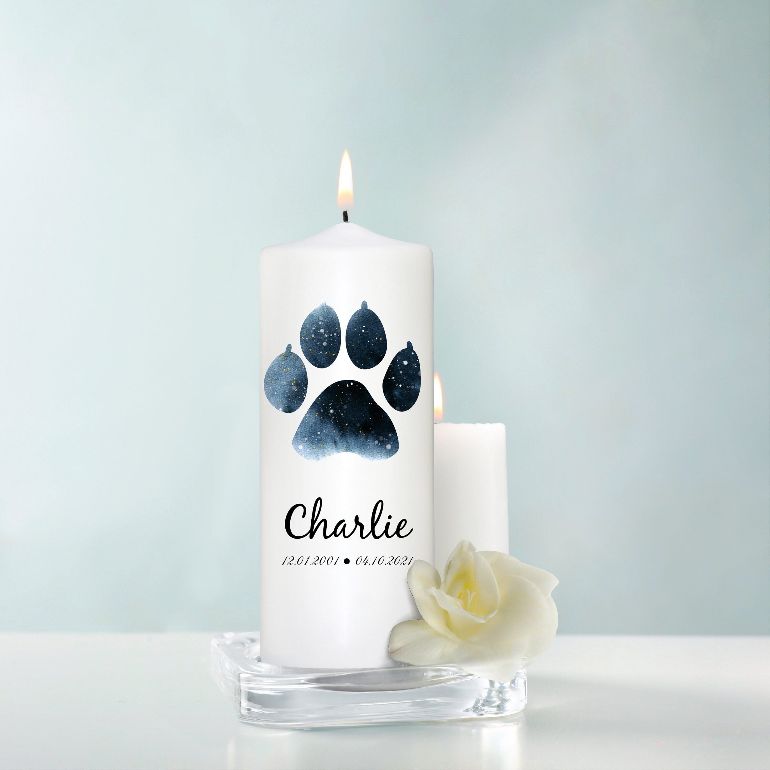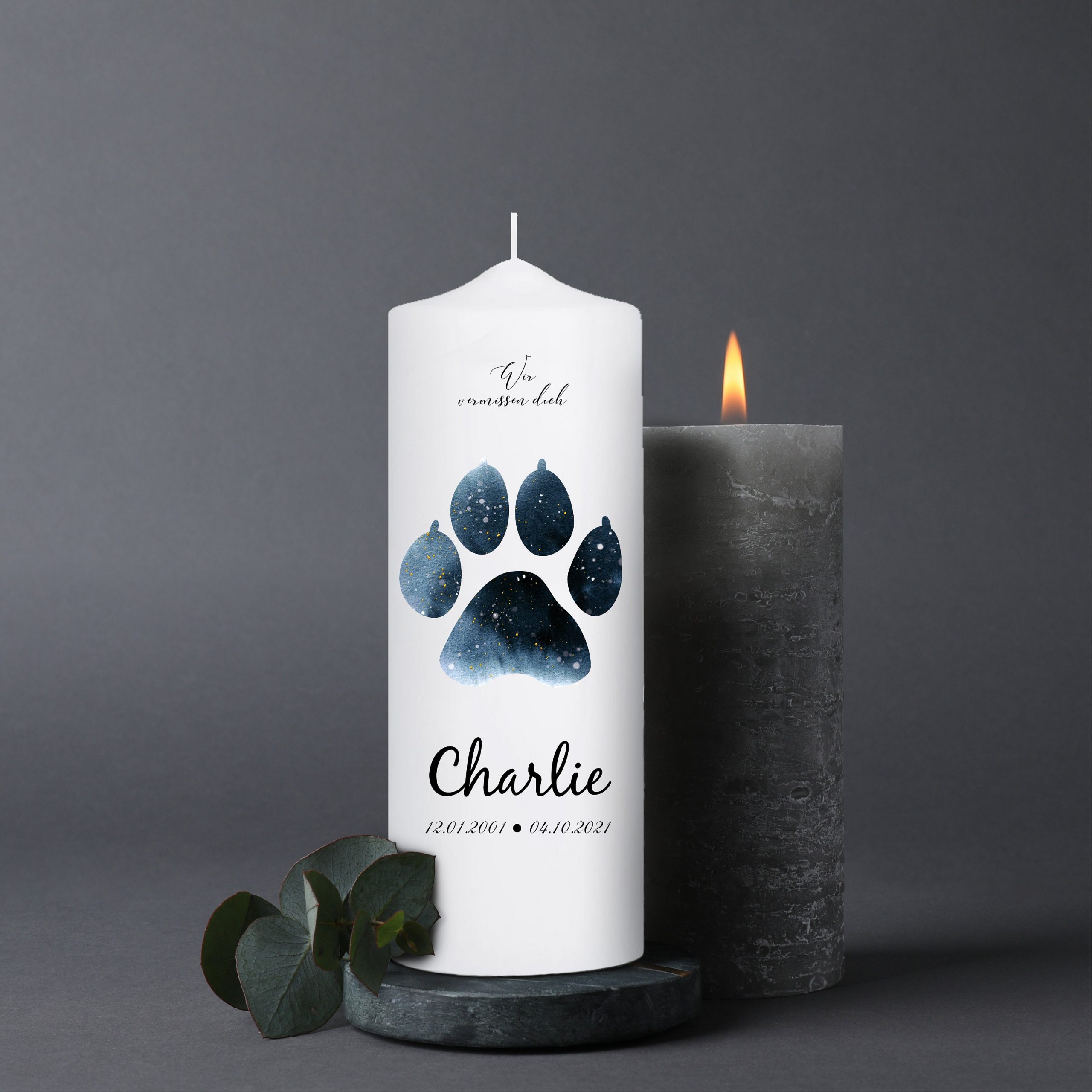Trauerkerze für Tiere Hund Pfote personalisiert mit Namen und Datum Kerze Katze Trauer