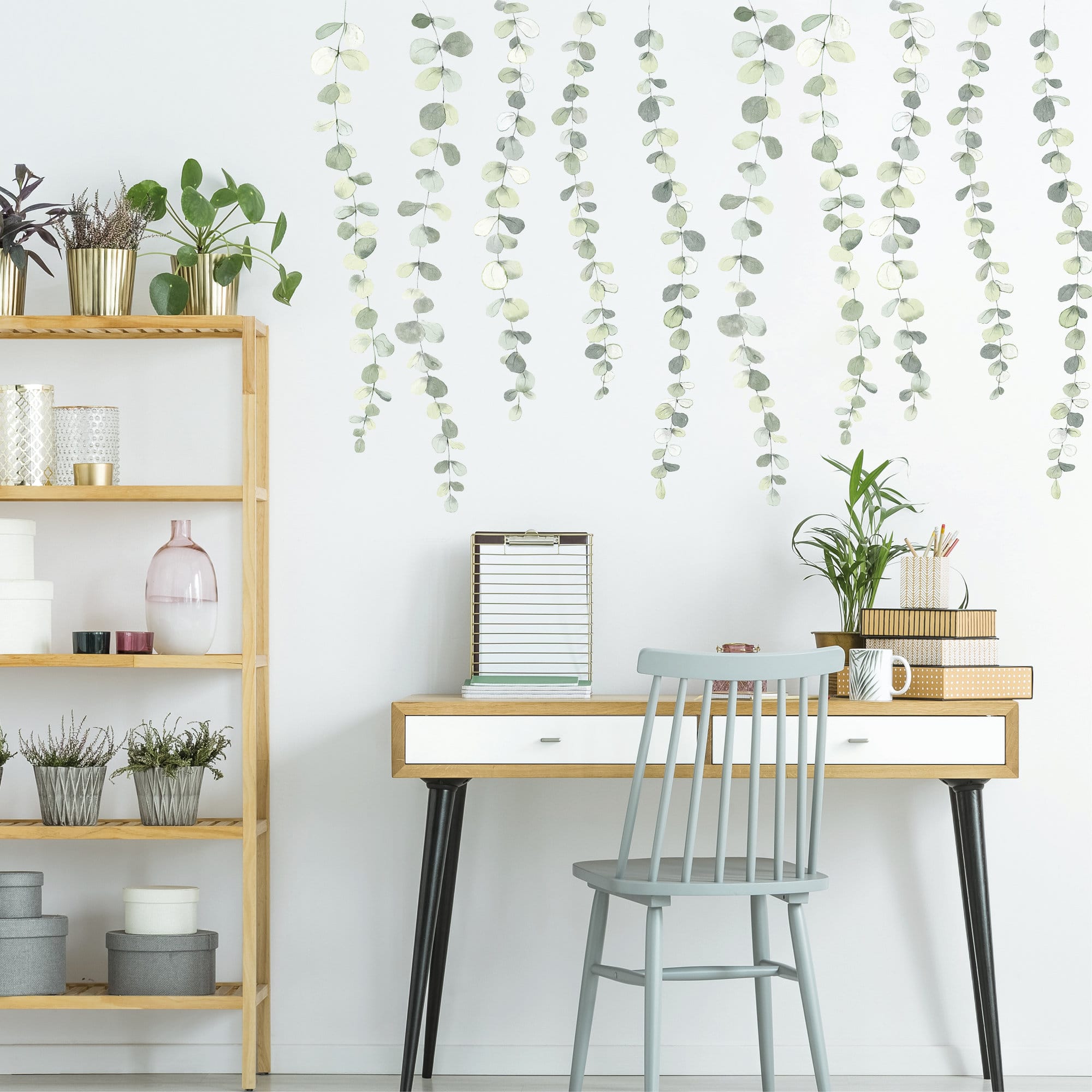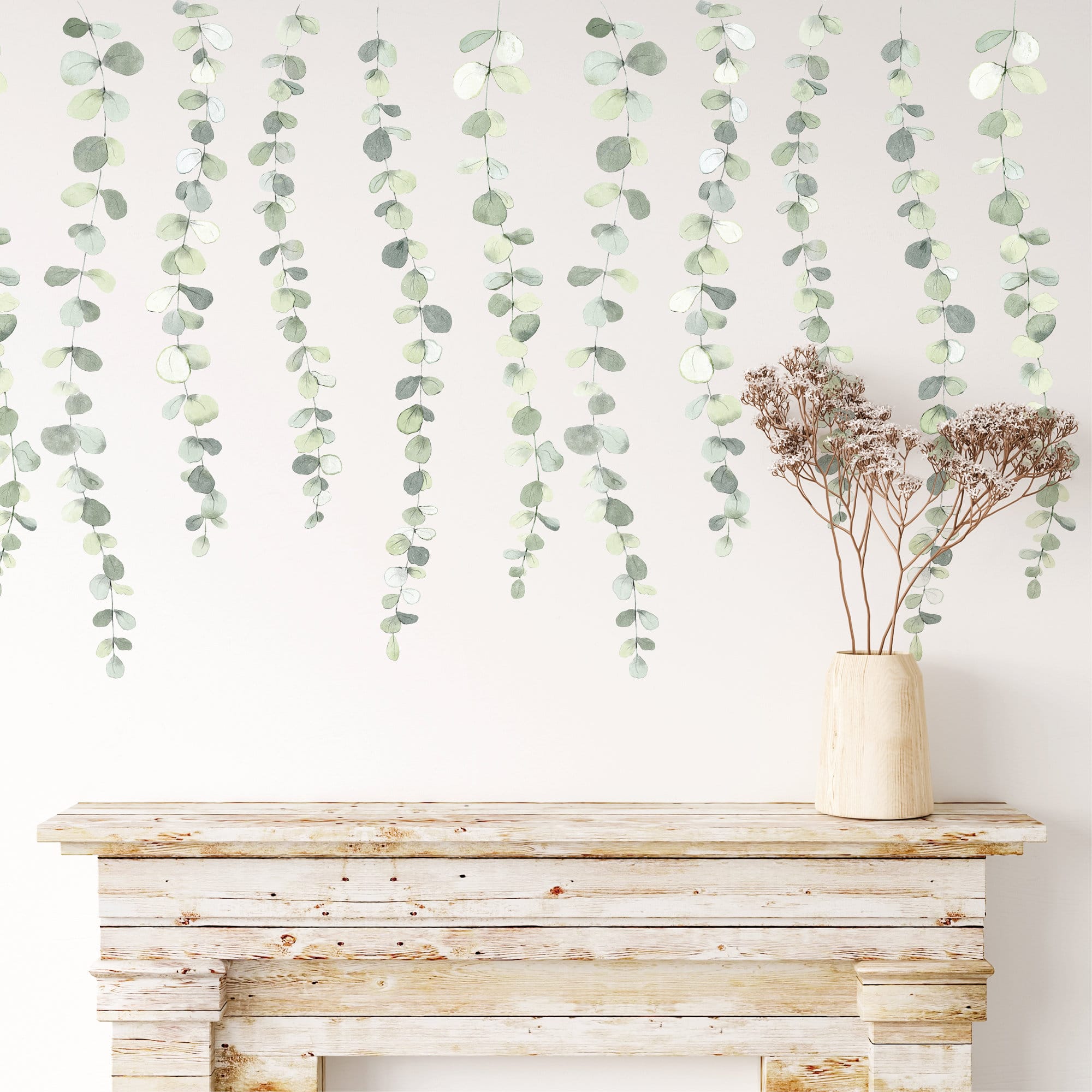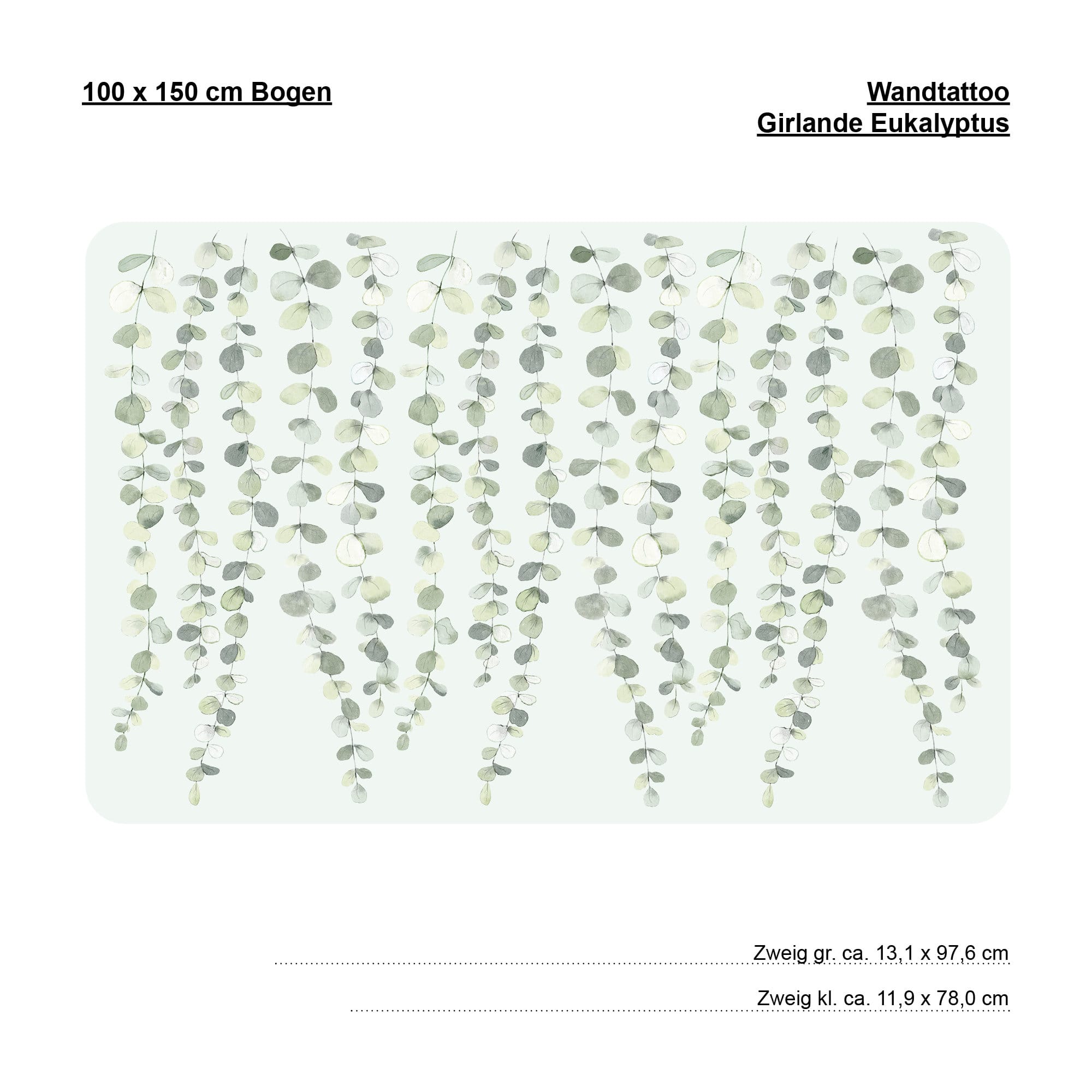 Auf dem Bild ist das Produkt: Wandtattoo Eukalyptus Girlande Wohnzimmer grüne Blätter Kinderzimmer zum Preis von €39.9 abgebildet.