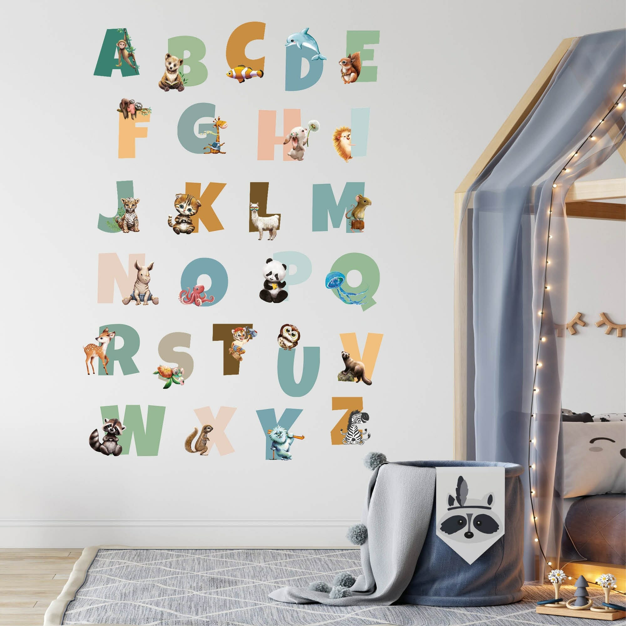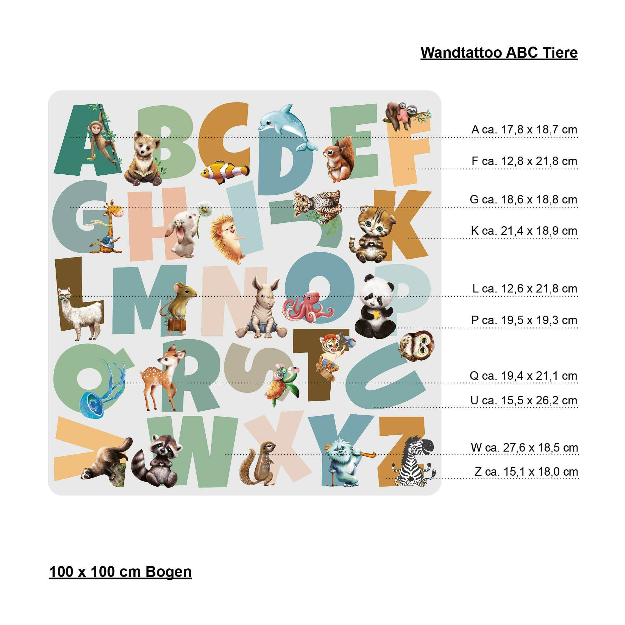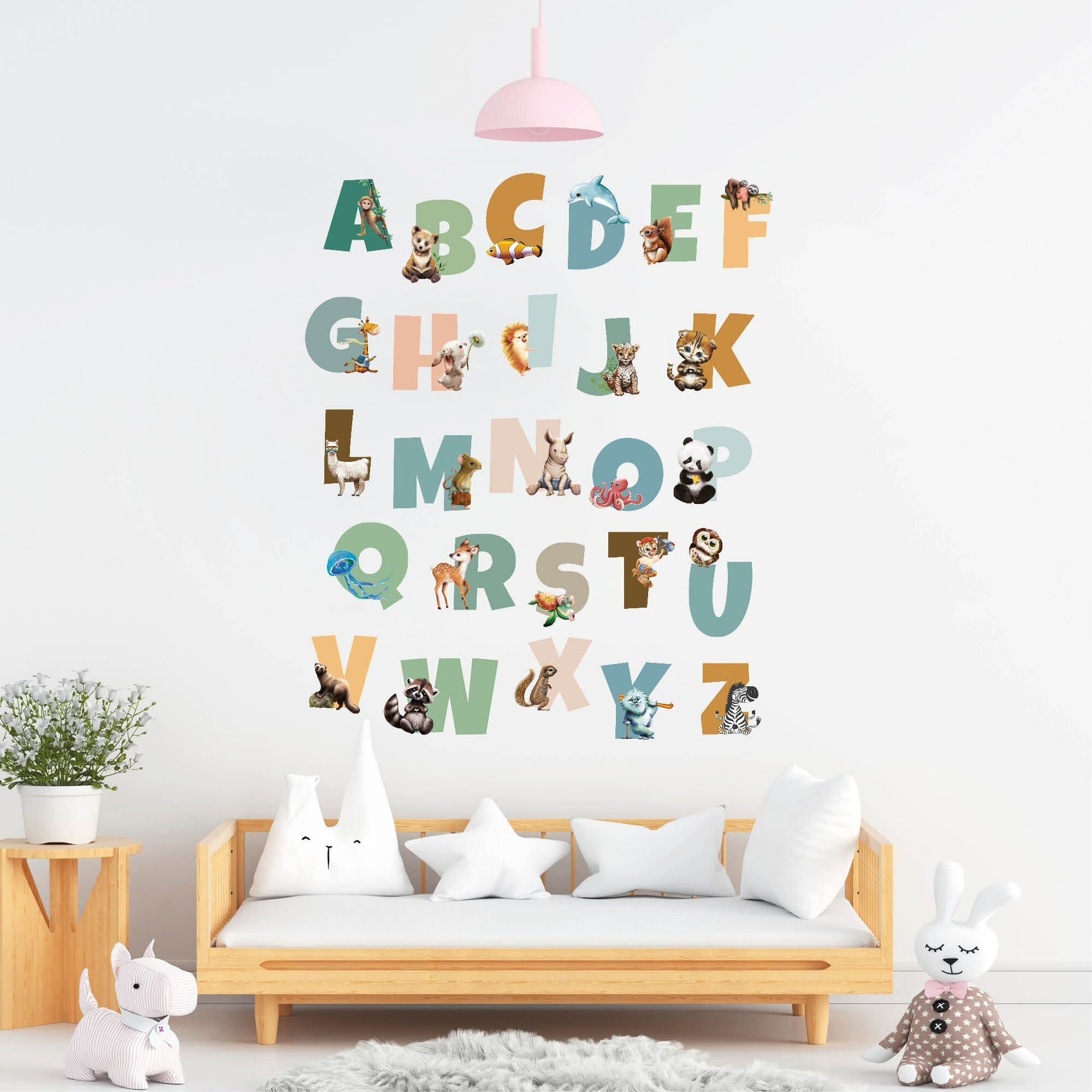 Wandtattoo Kinderzimmer Alphabet und Tiere, Dekoration Kinderzimmer