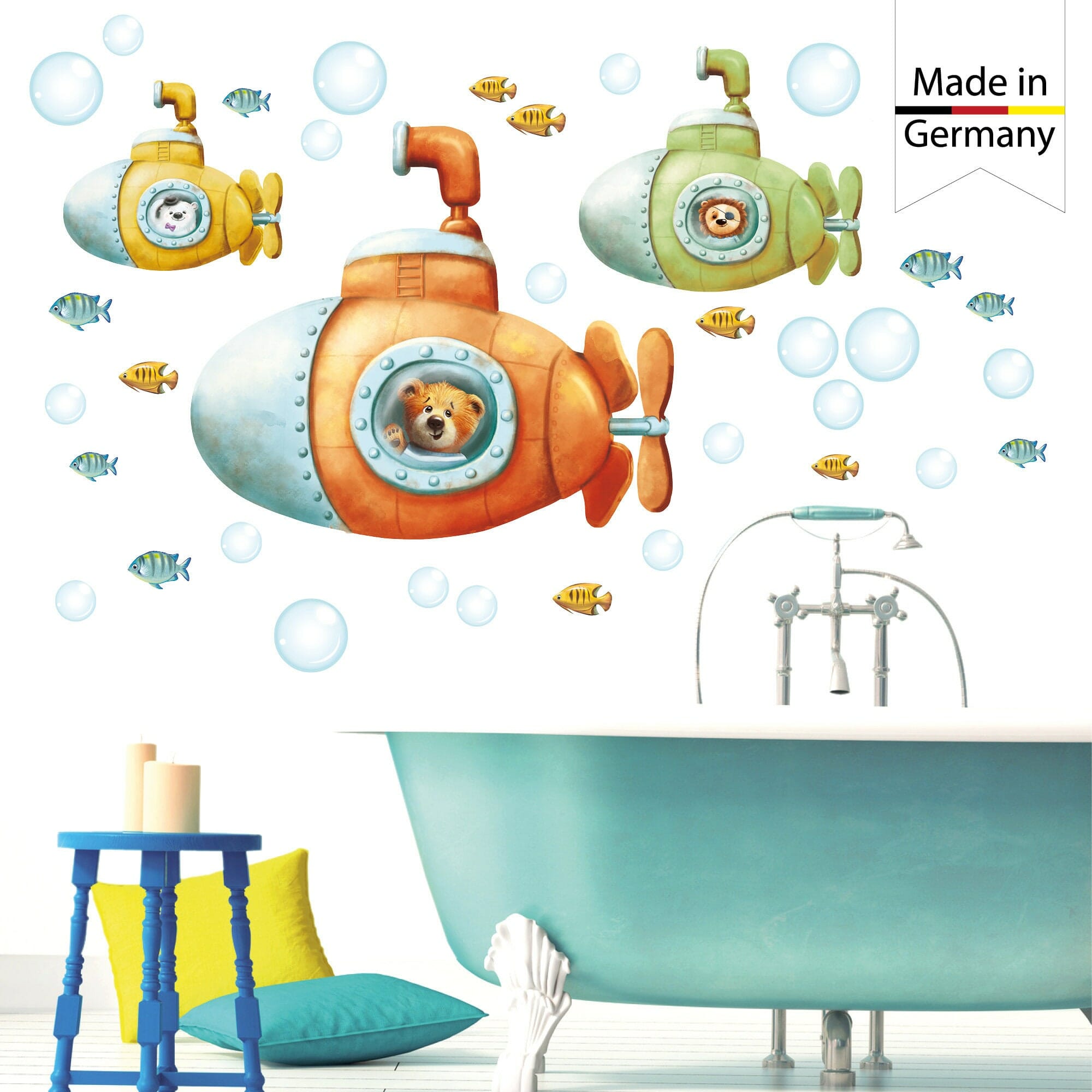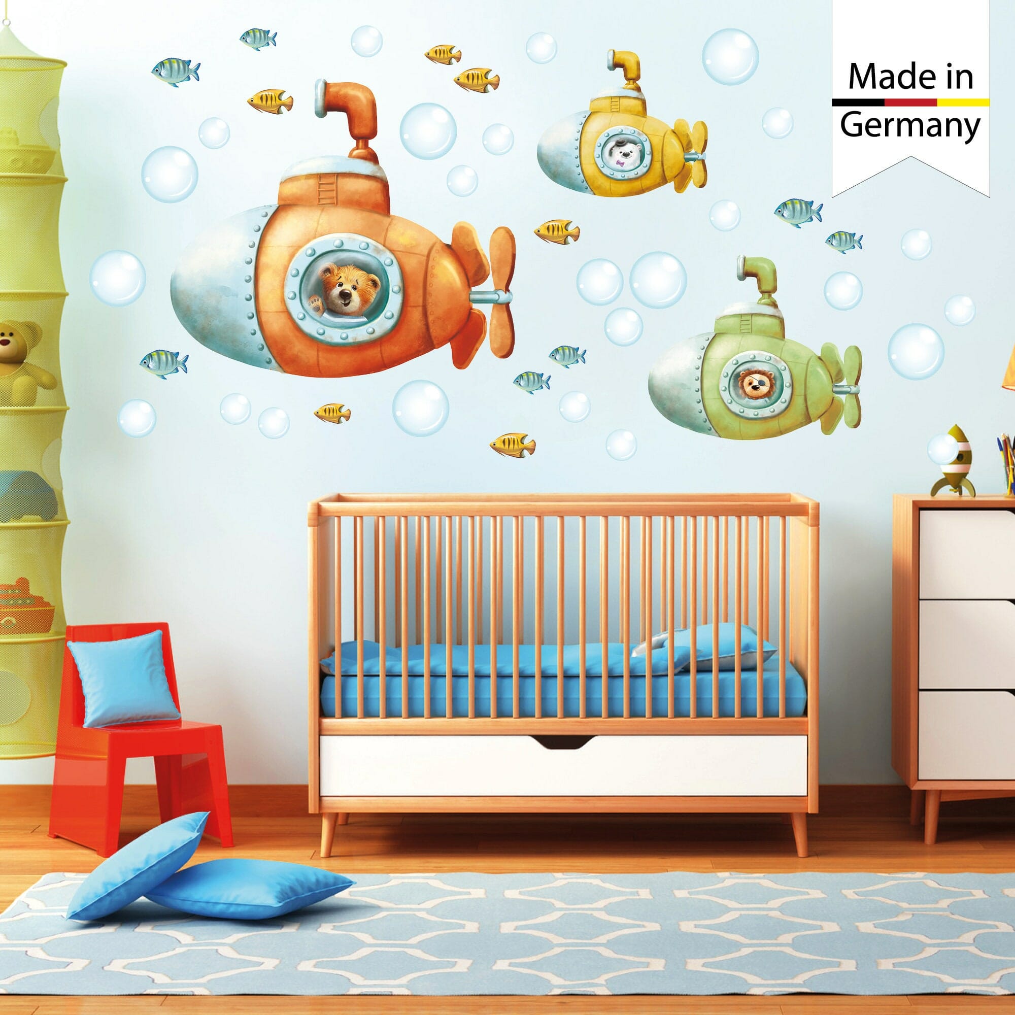 Wandtattoo Kinderzimmer bunt Mädchen Junge Boote U-Boot Unterwasserwelt Löwe Eisbär Fische Dekoration Babyzimmer blau