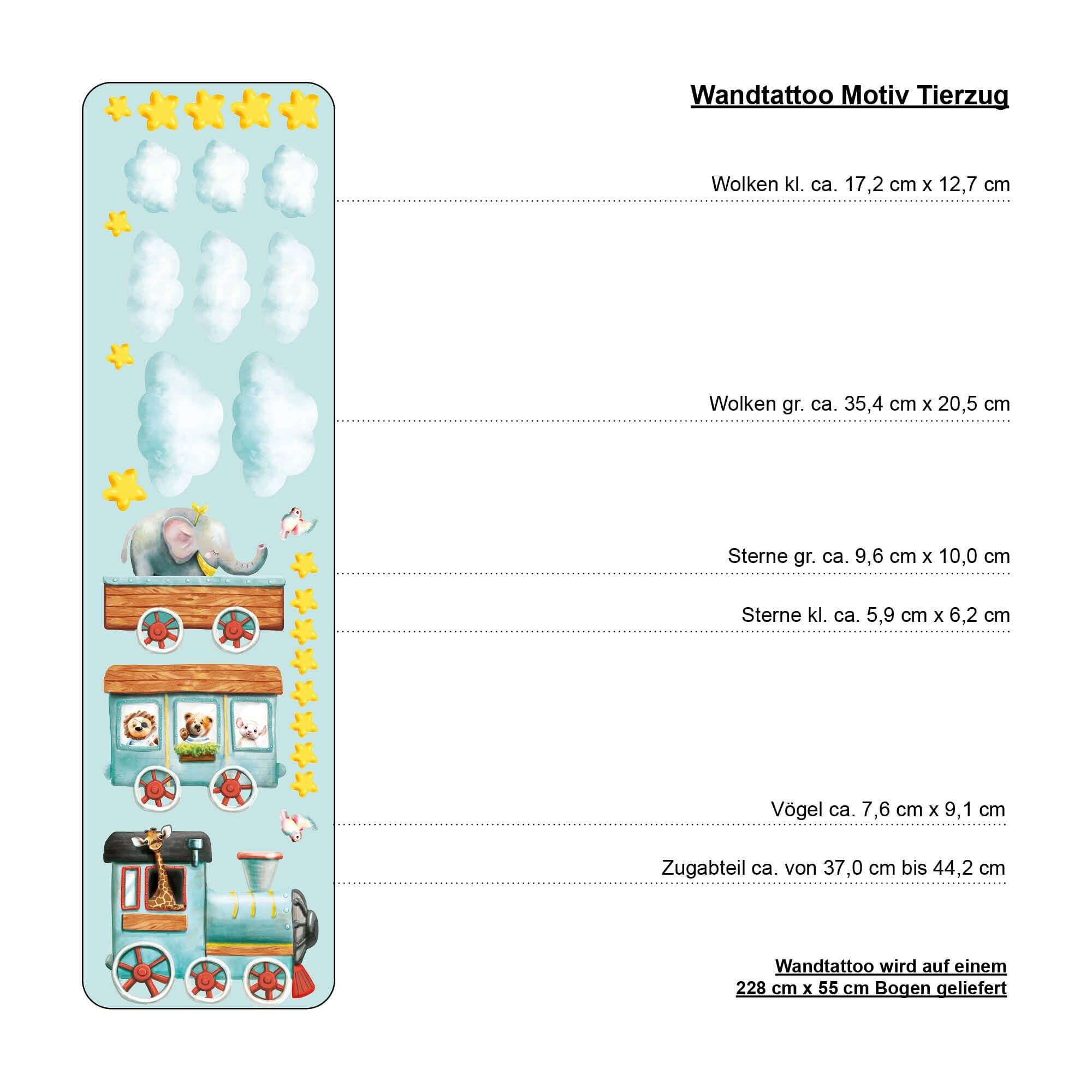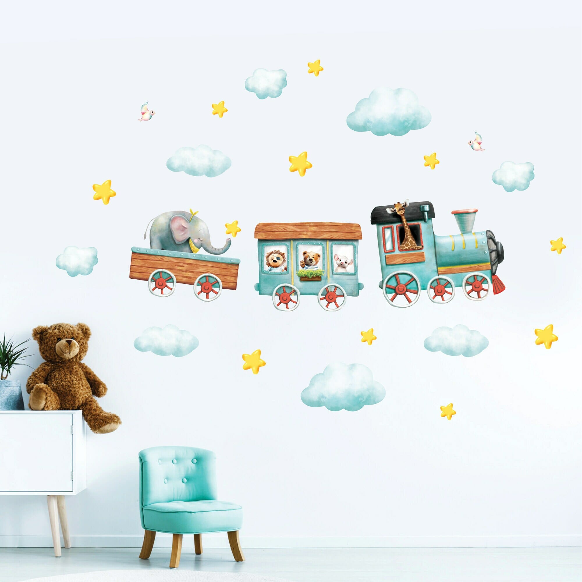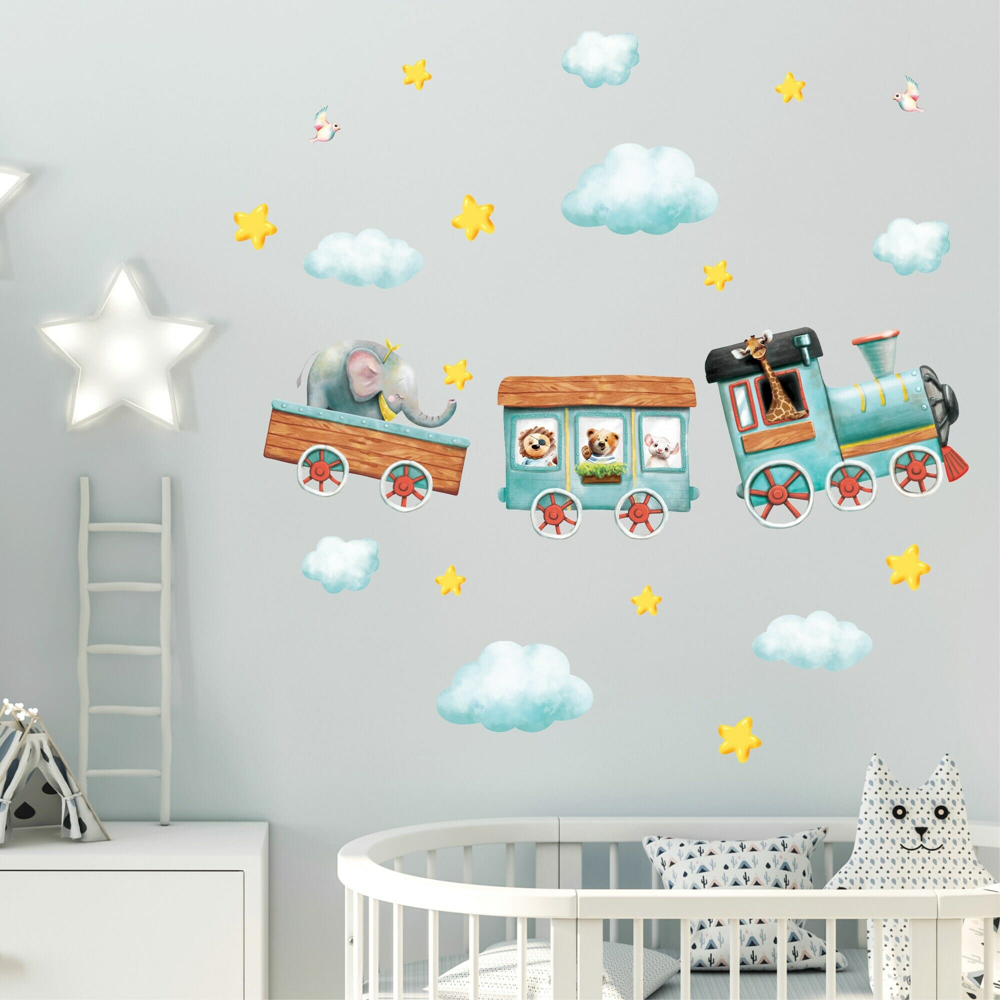 Wandtattoo Kinderzimmer Zug mit Tieren, Sternen und Wolken