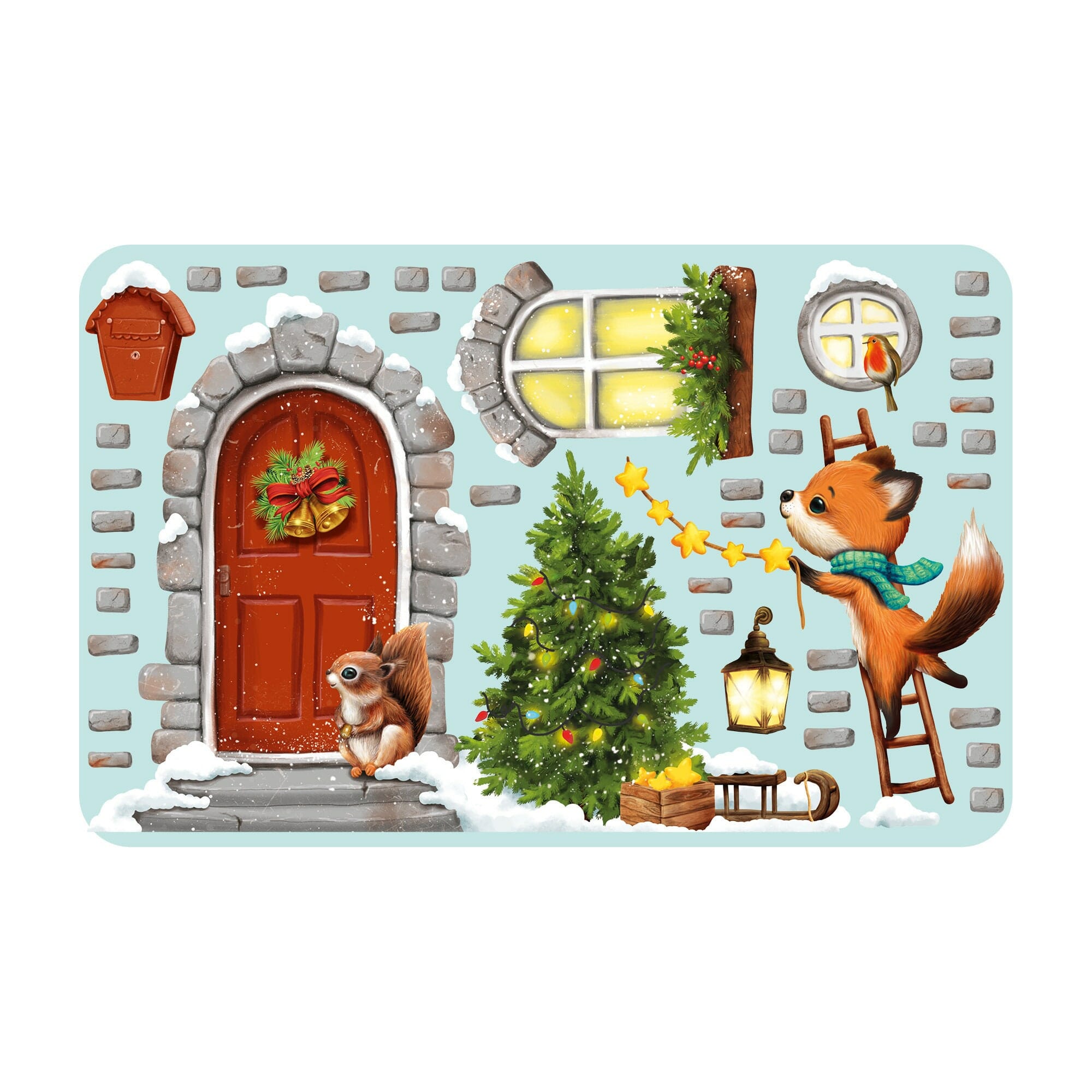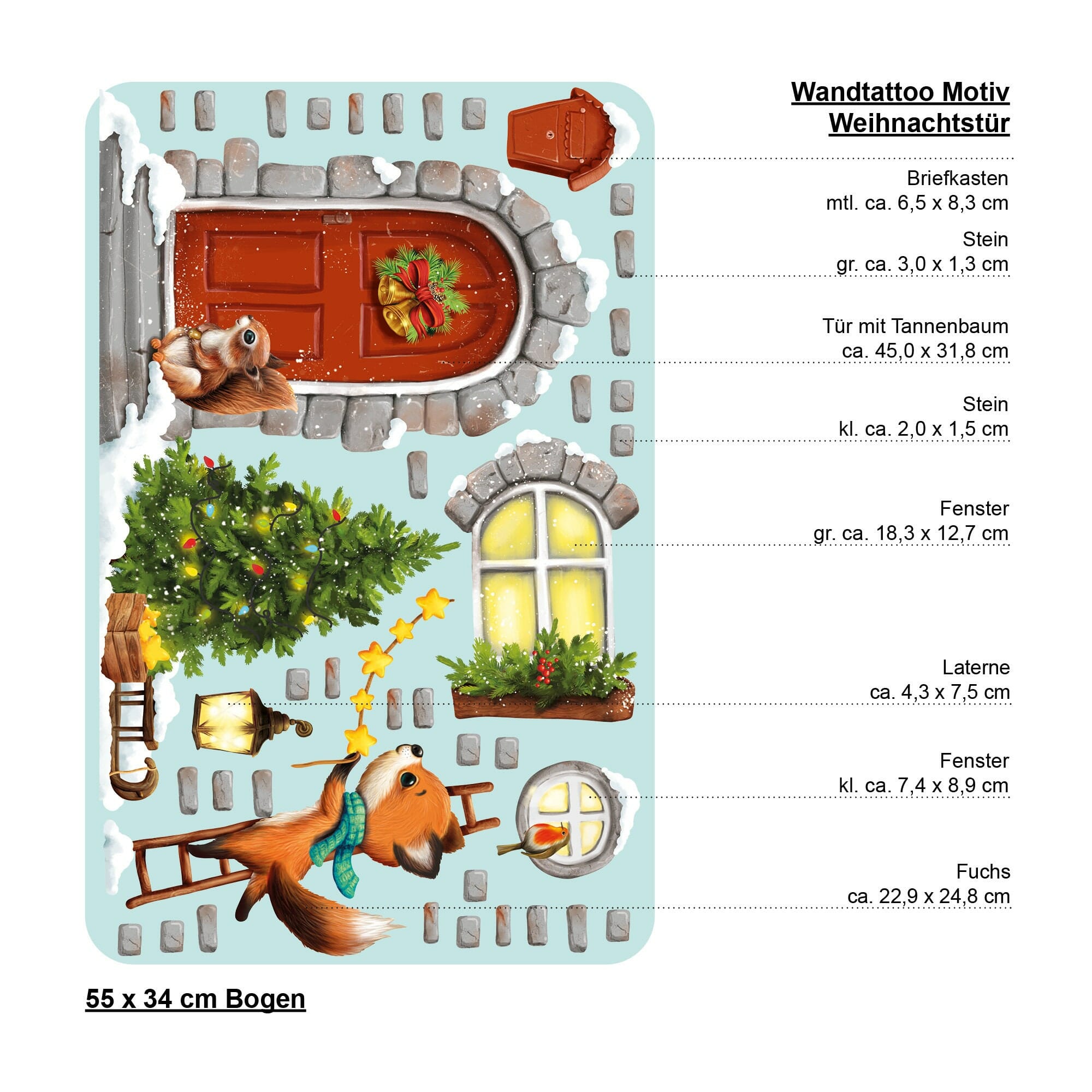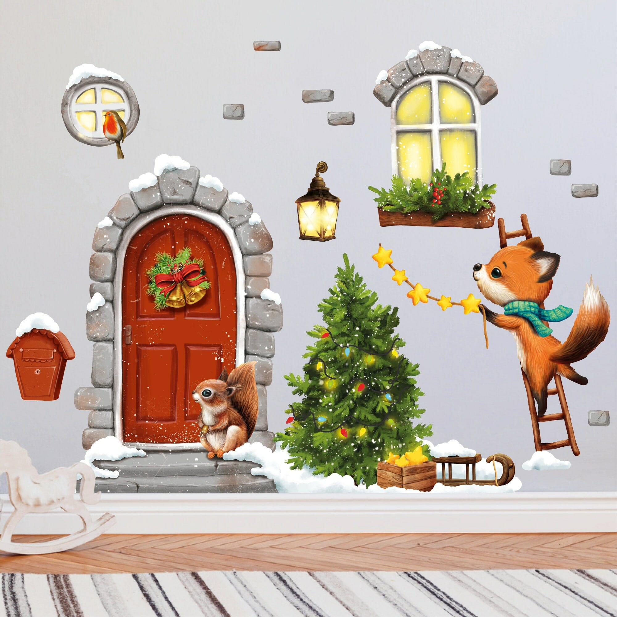 Wandtattoo Kinderzimmer Fuchs und Mäusetür weihnachtlich bunt Dekoration Babyzimmer