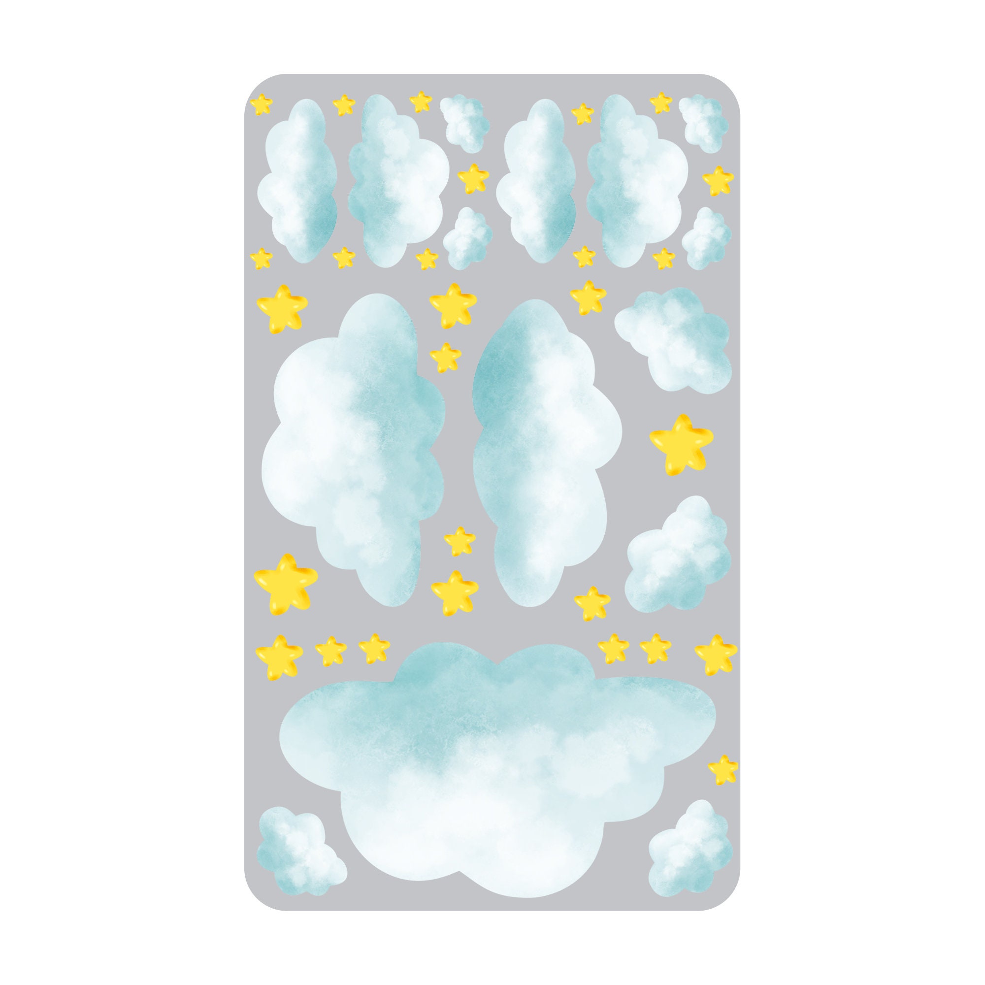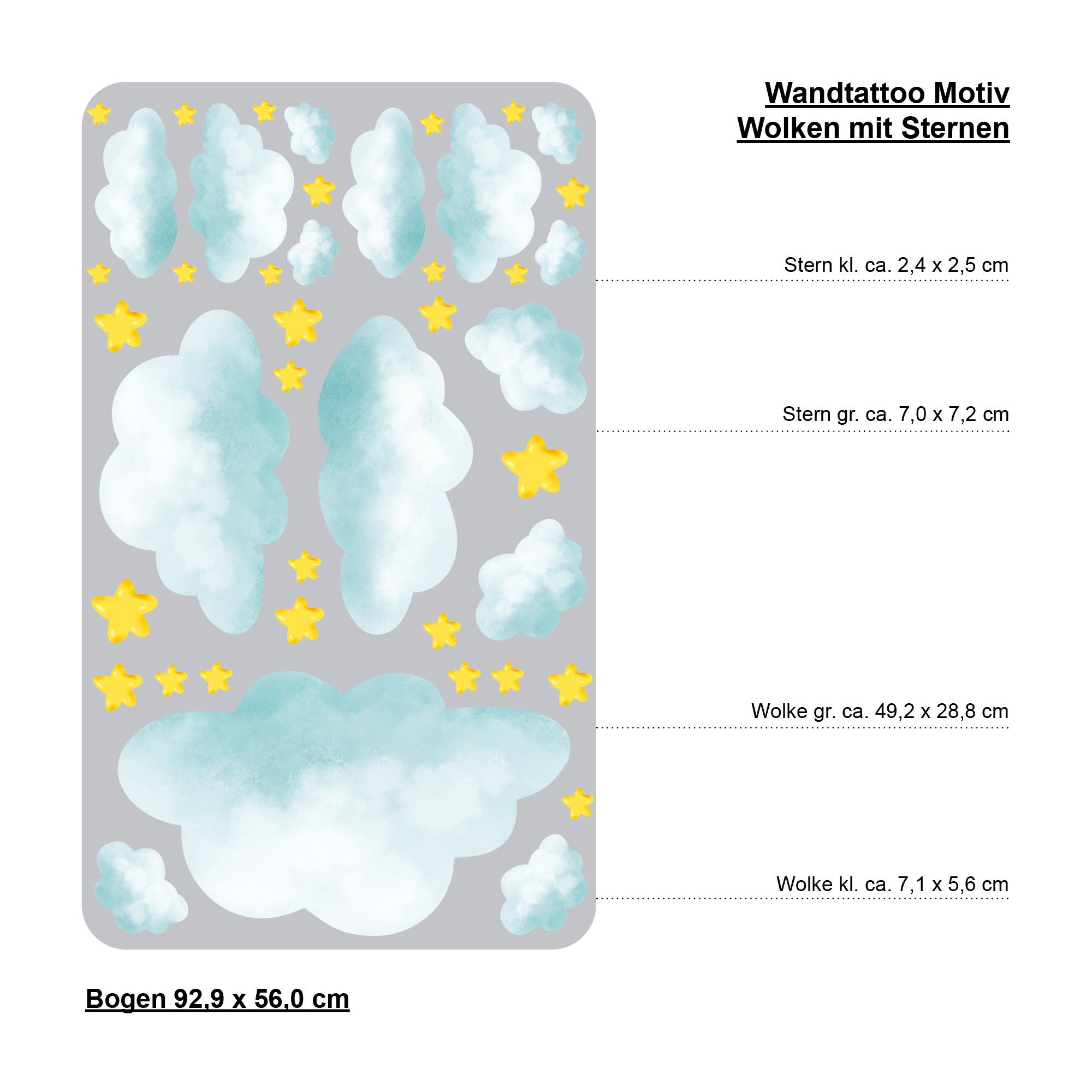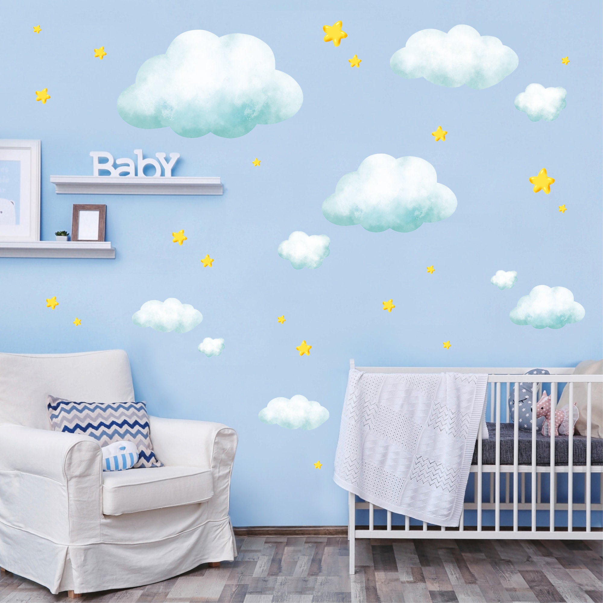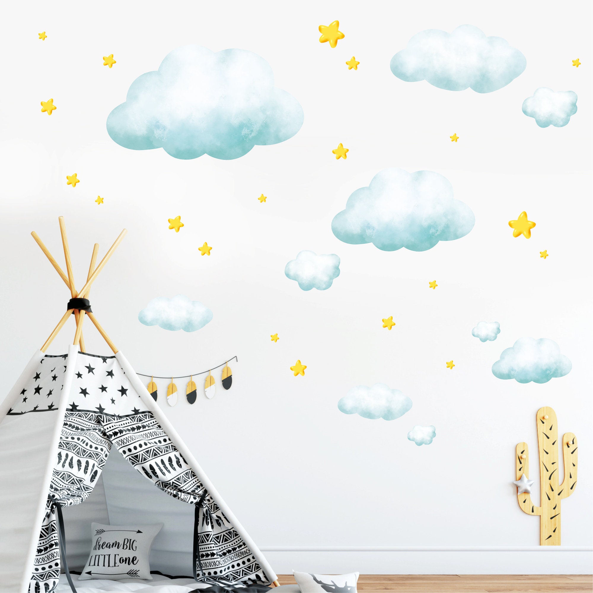 Wandtattoo Kinderzimmer Große Wolken und Sterne Dekoration Babyzimmer