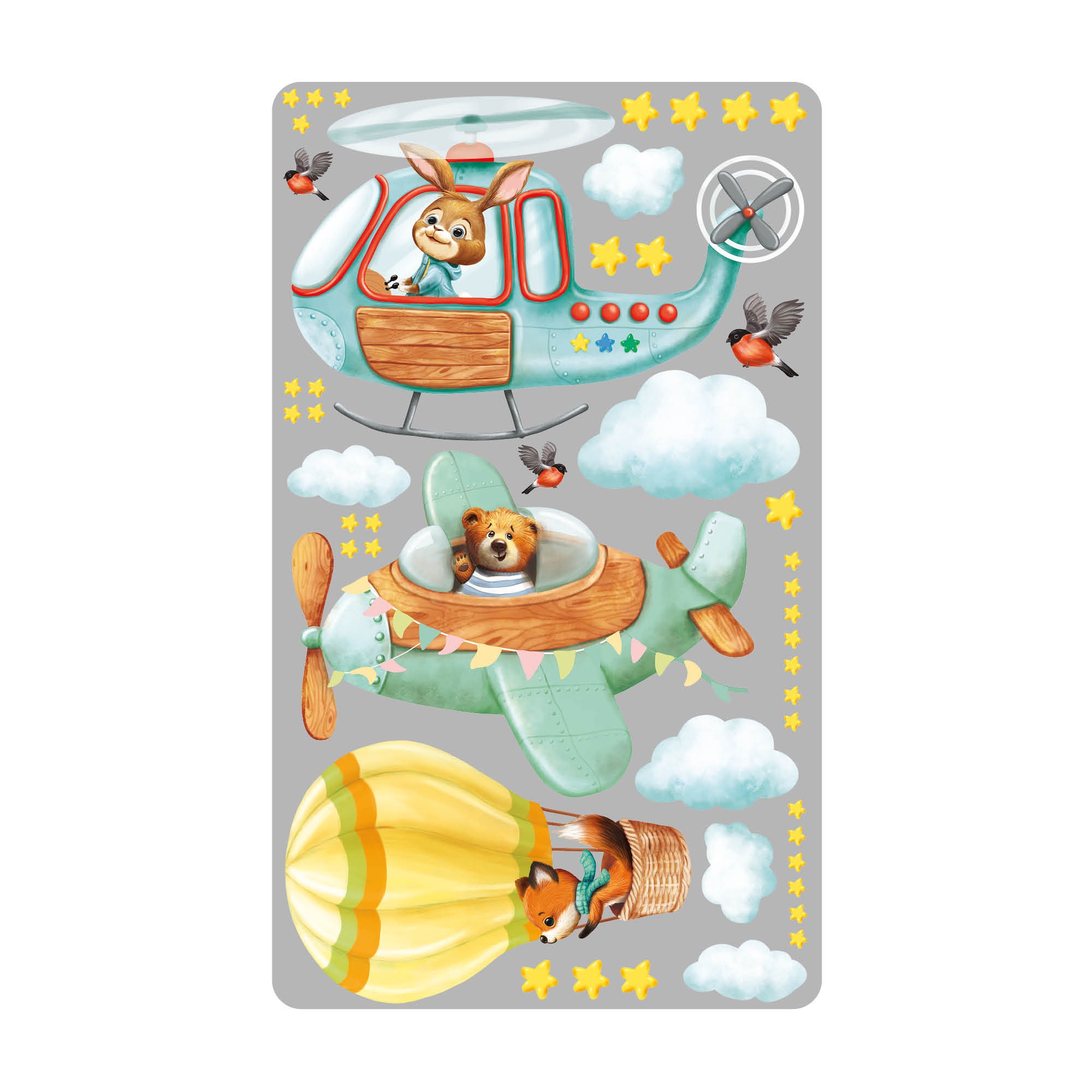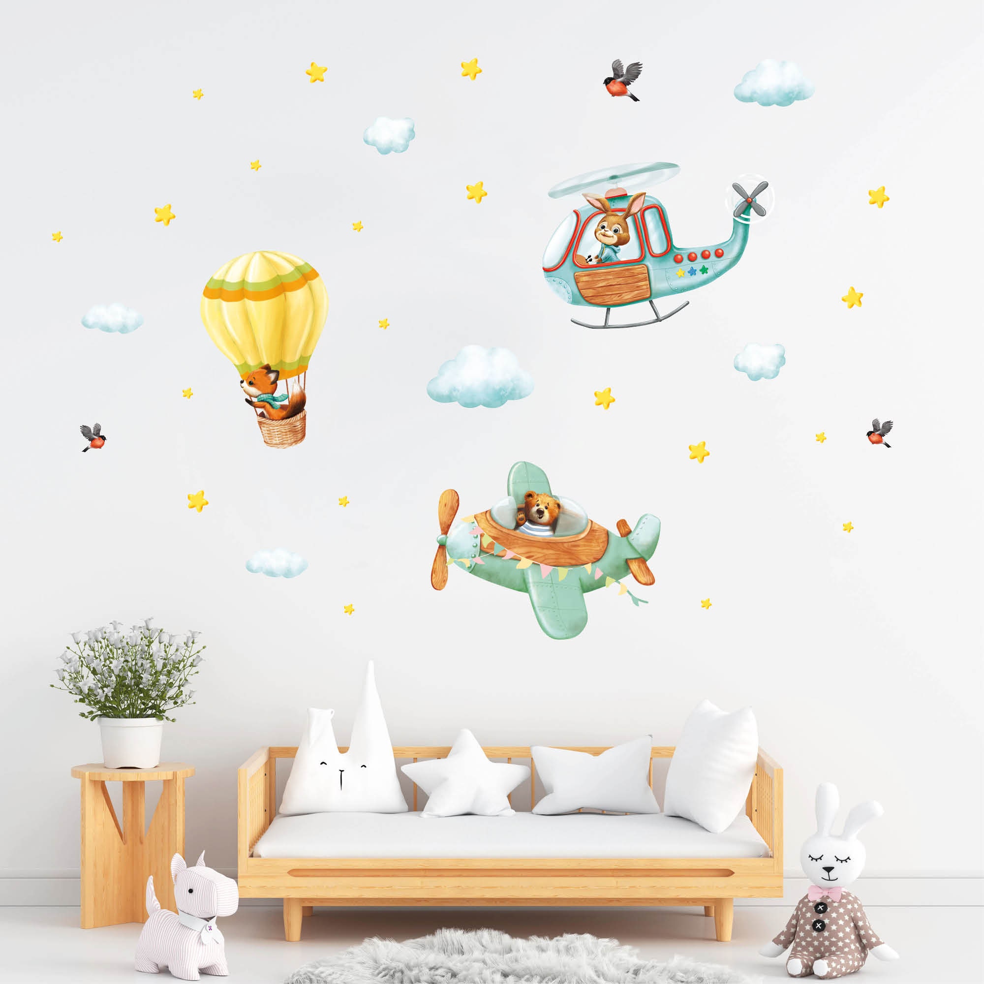 Wandtattoo Kinderzimmer Heißluftballon, Flugzeug und Hubschrauber, Dekoration Babyzimmer