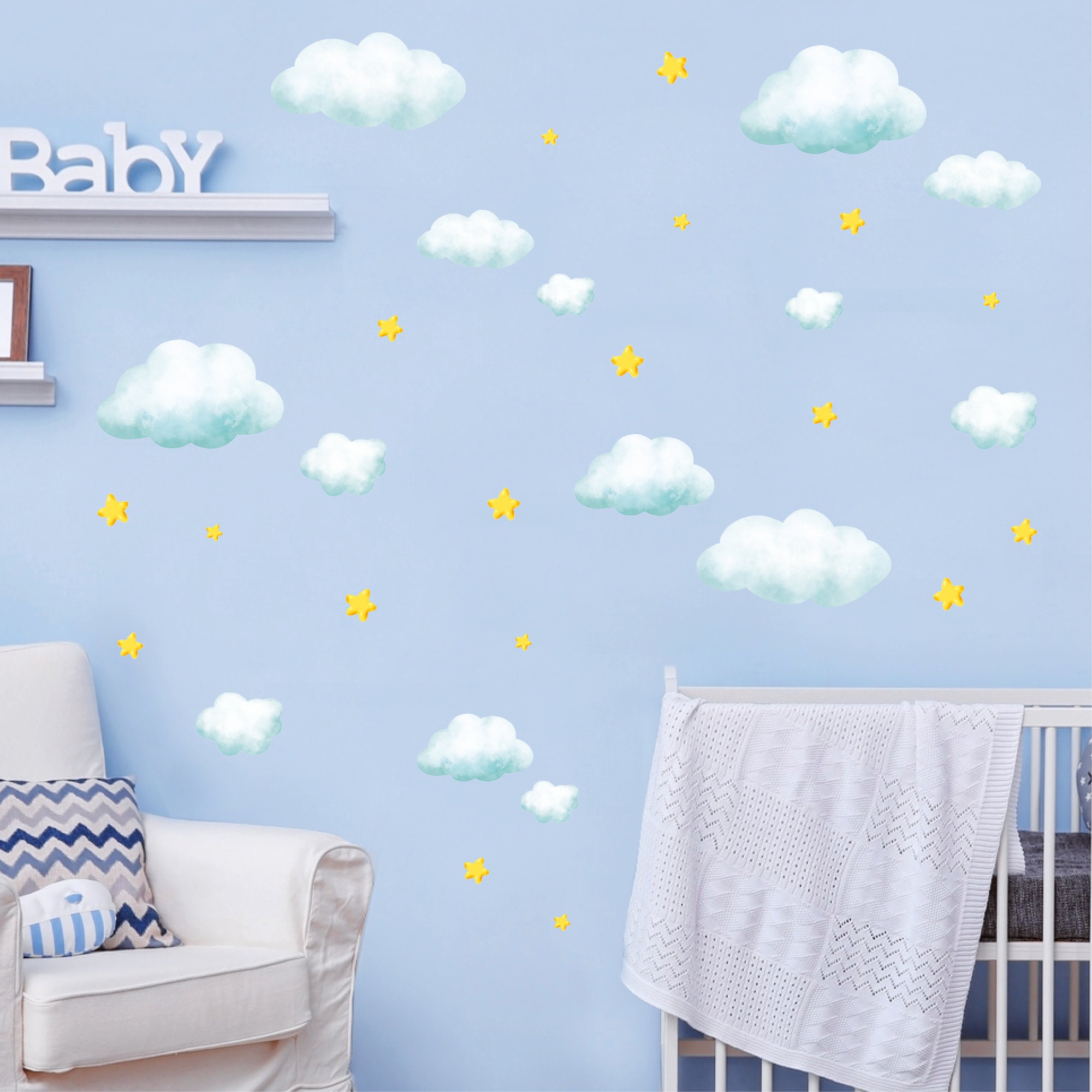 Wandtattoo Kinderzimmer Kleine Wolken und Sterne Dekoration Babyzimmer
