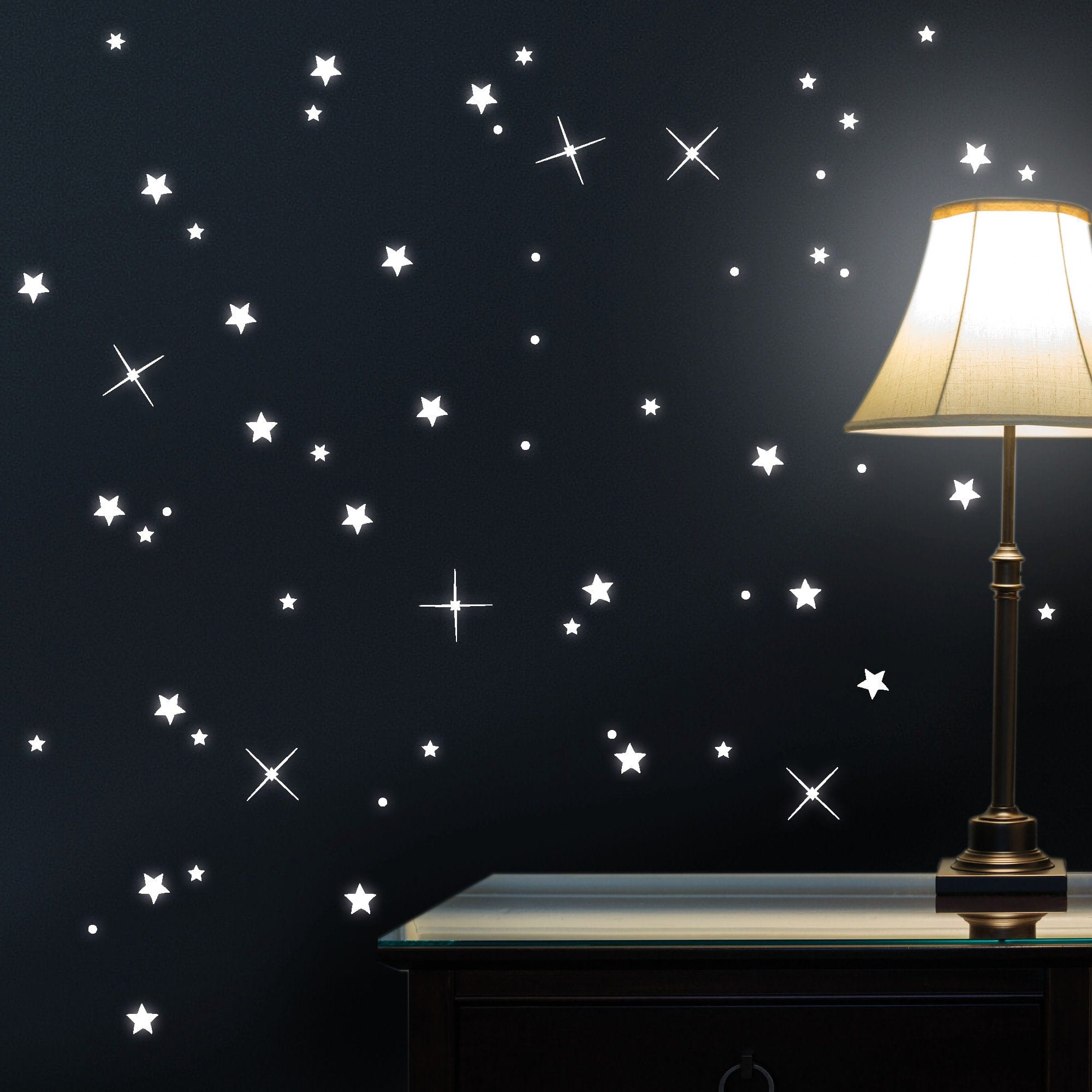 Leuchtaufkleber Sterne 60 Stück leuchtend fluoreszierend Dekoration Sternenhimmel Wandtattoo Kinderzimmer
