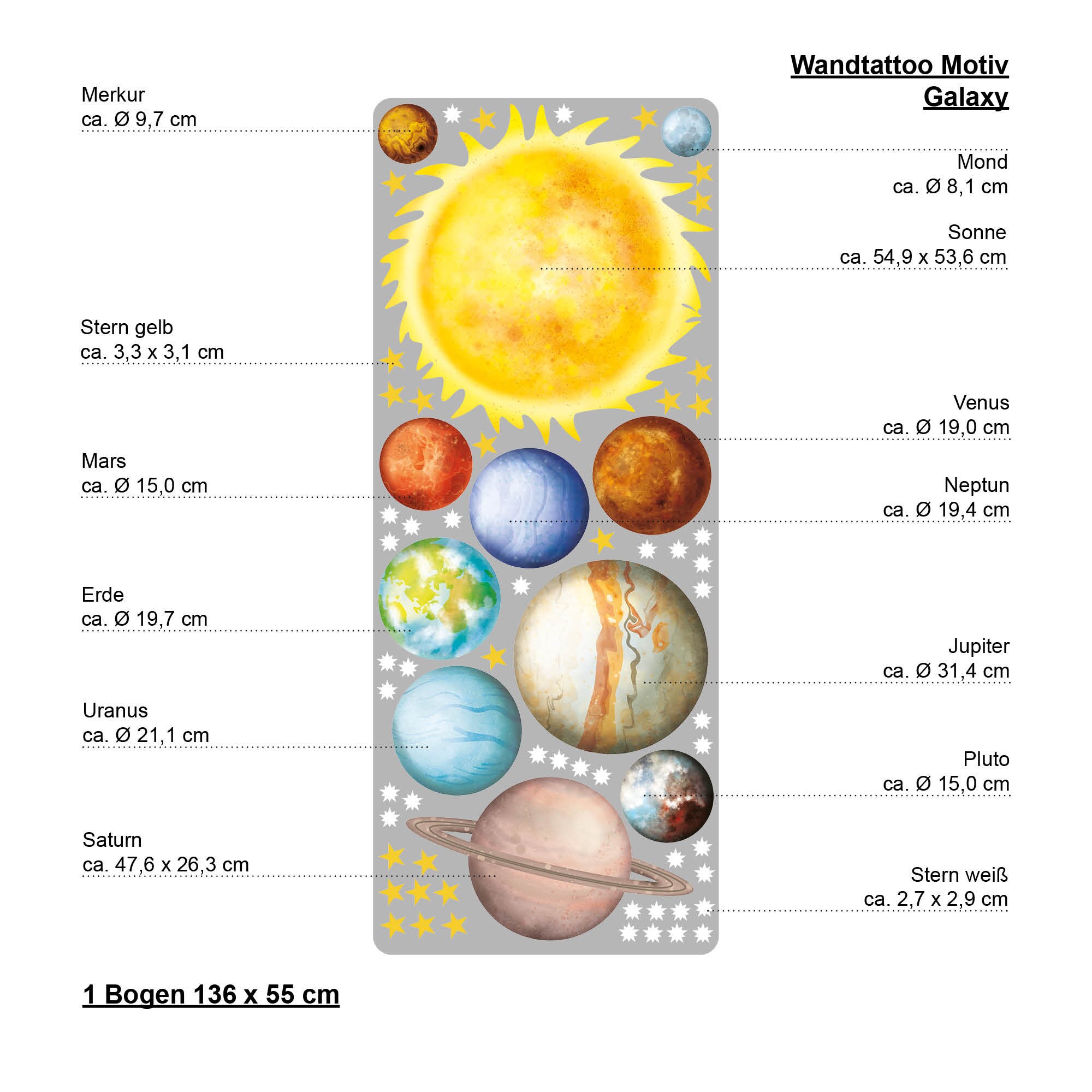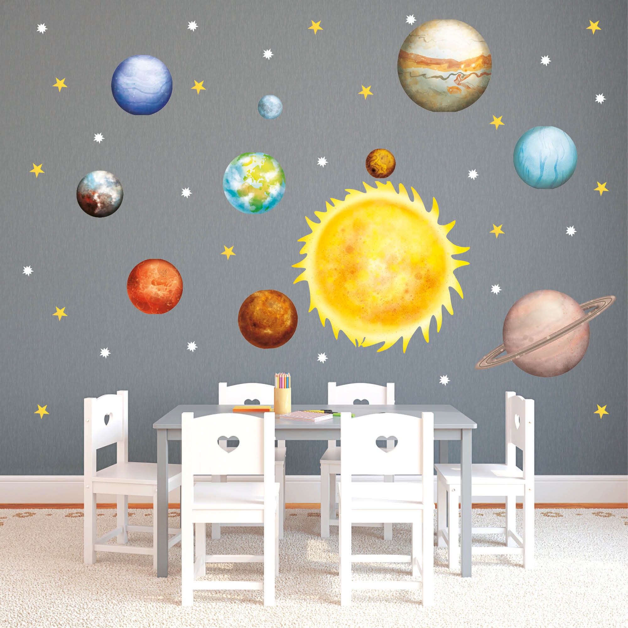 Wandtattoo Kinderzimmer Planeten Galaxy Sterne, Dekoration Babyzimmer