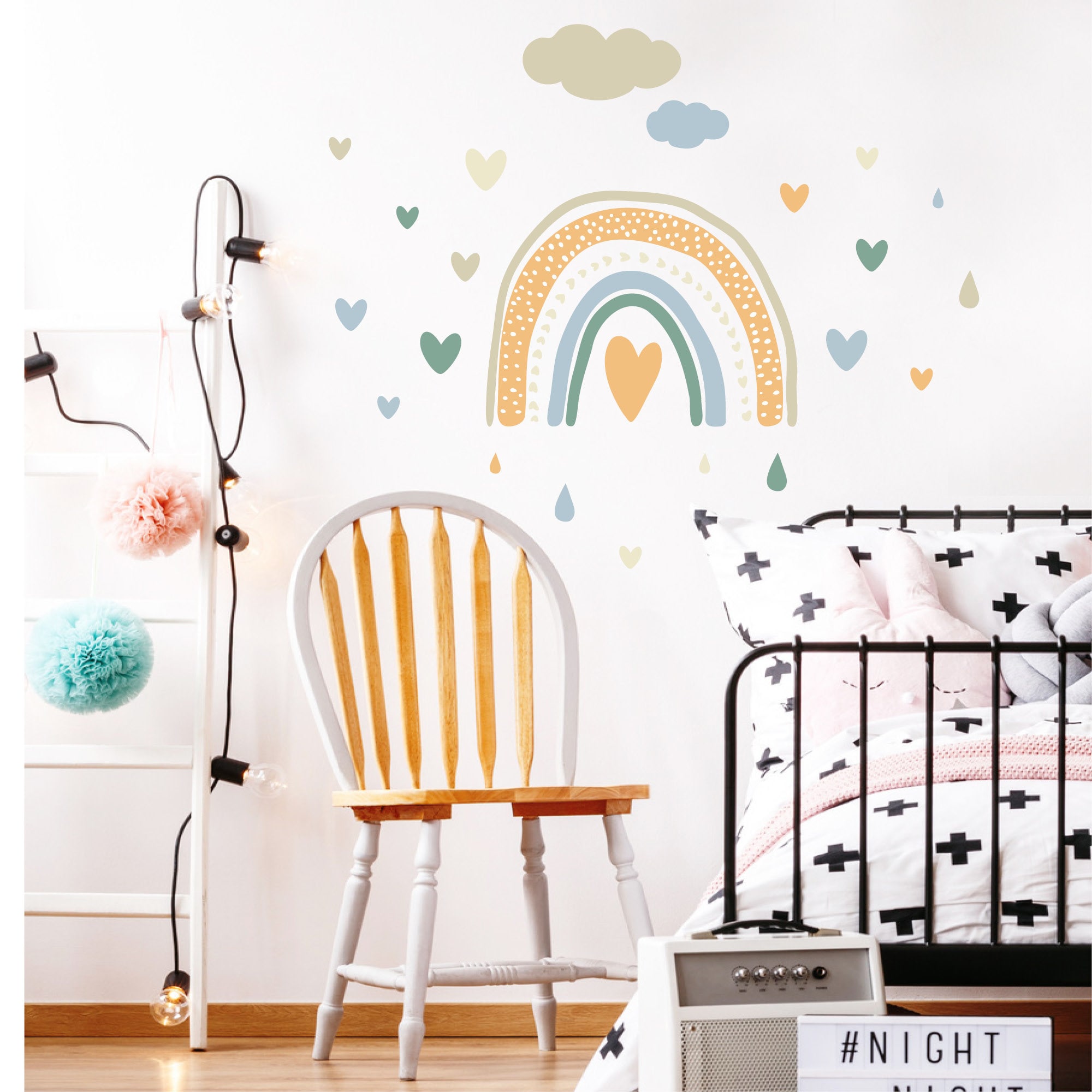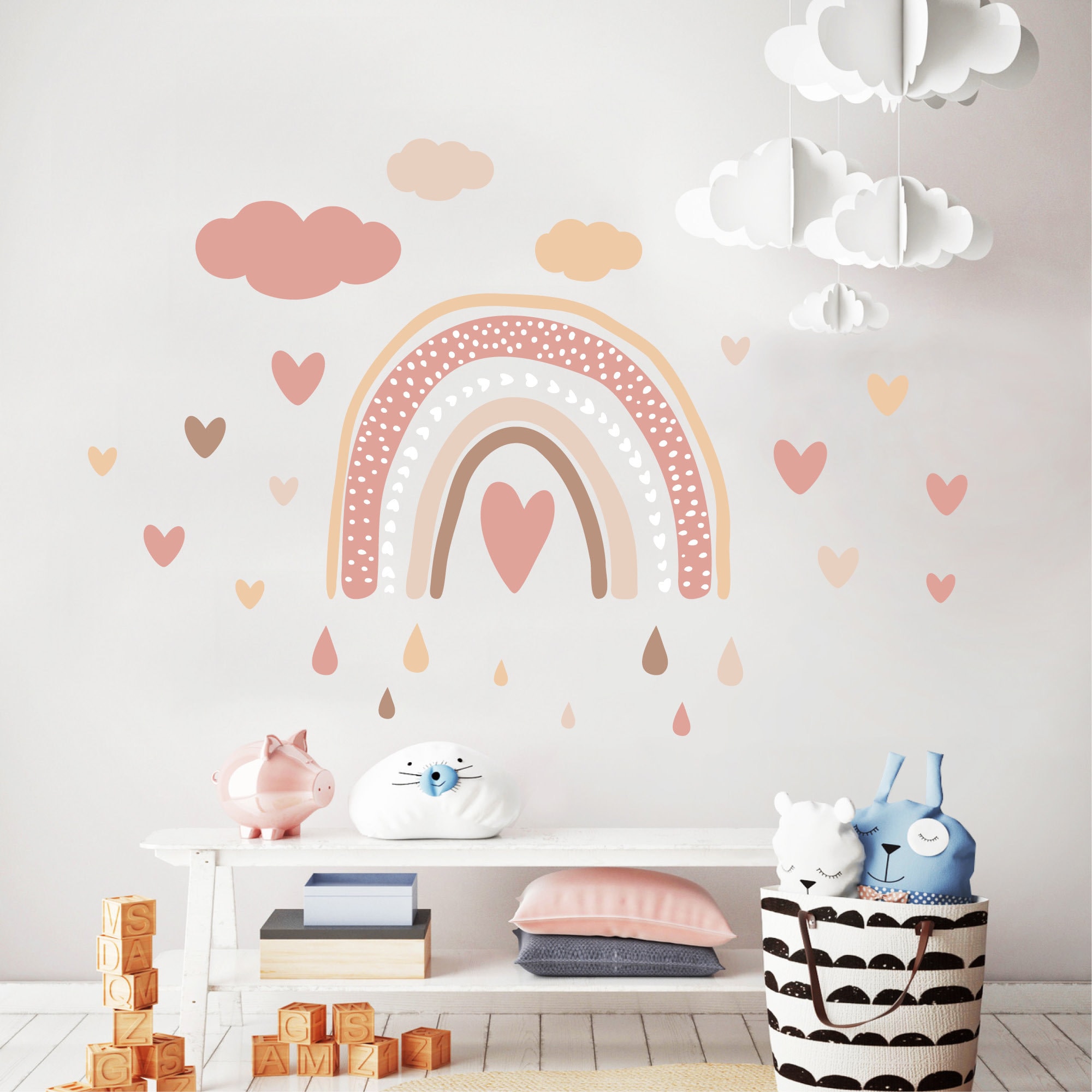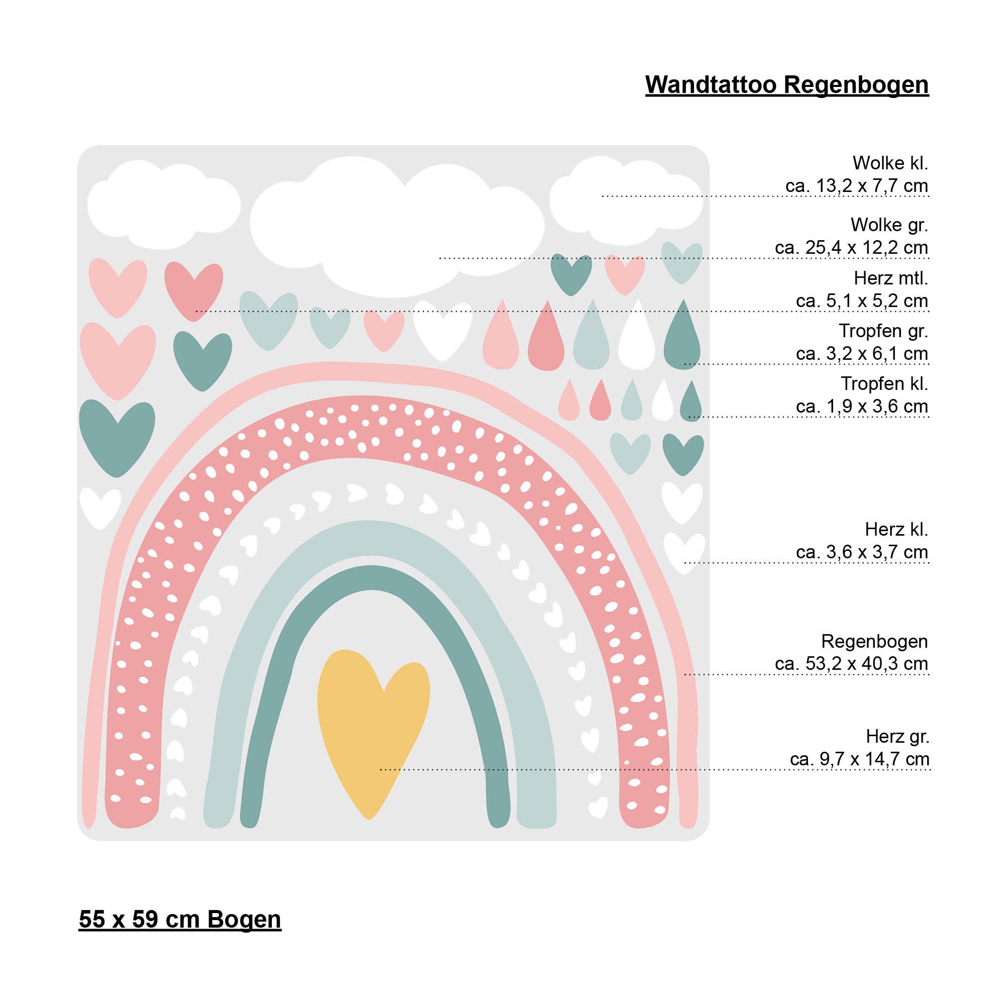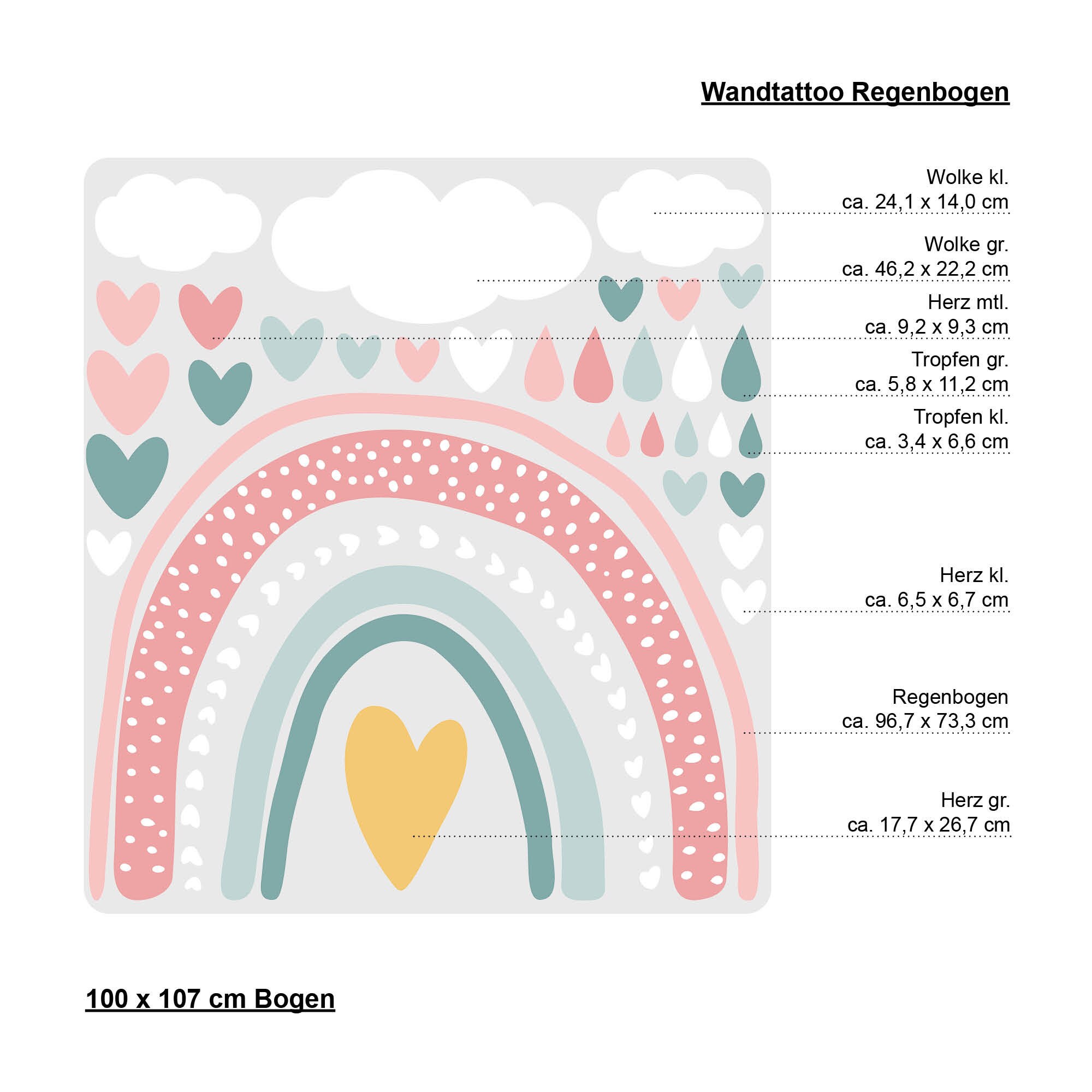 Wandtattoo Loft Regenbogen Sticker Herzen Wolken Tropfen Deko Kinderzimmer Mädchen Junge Pastellfarben Wandaufkleber