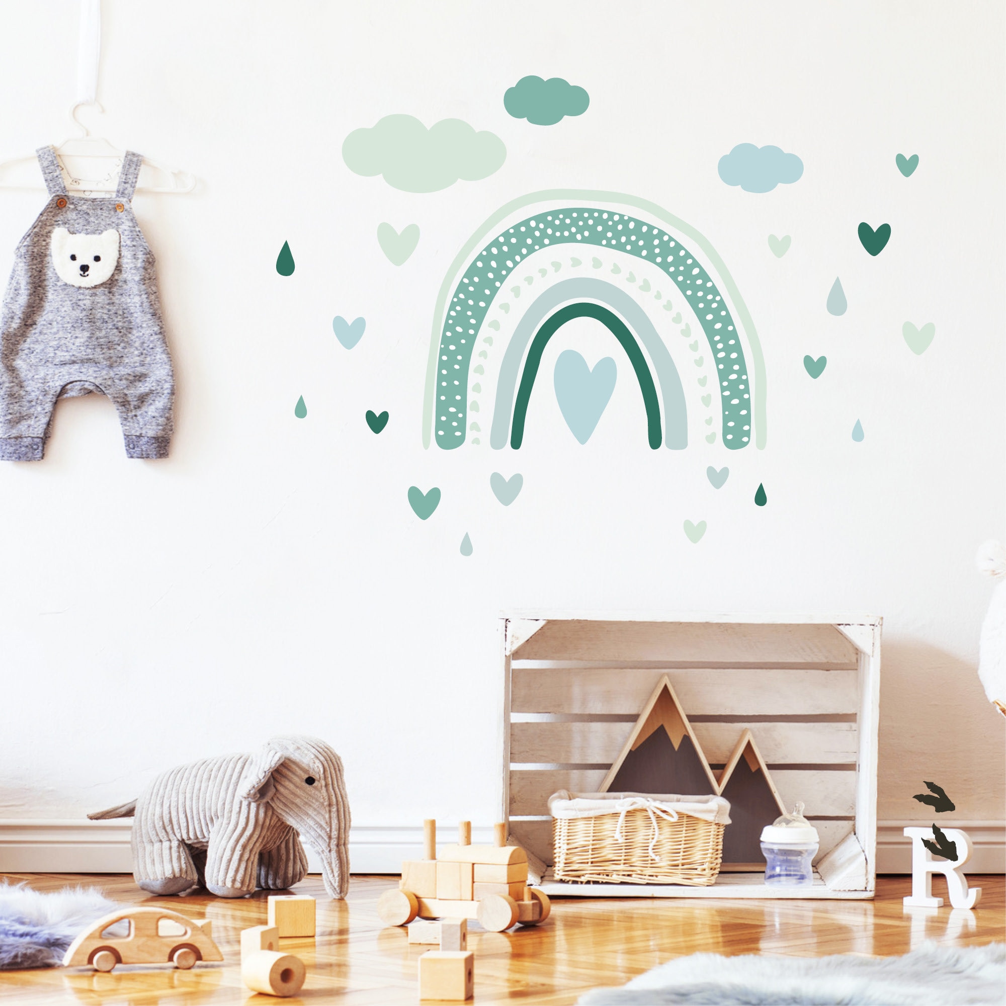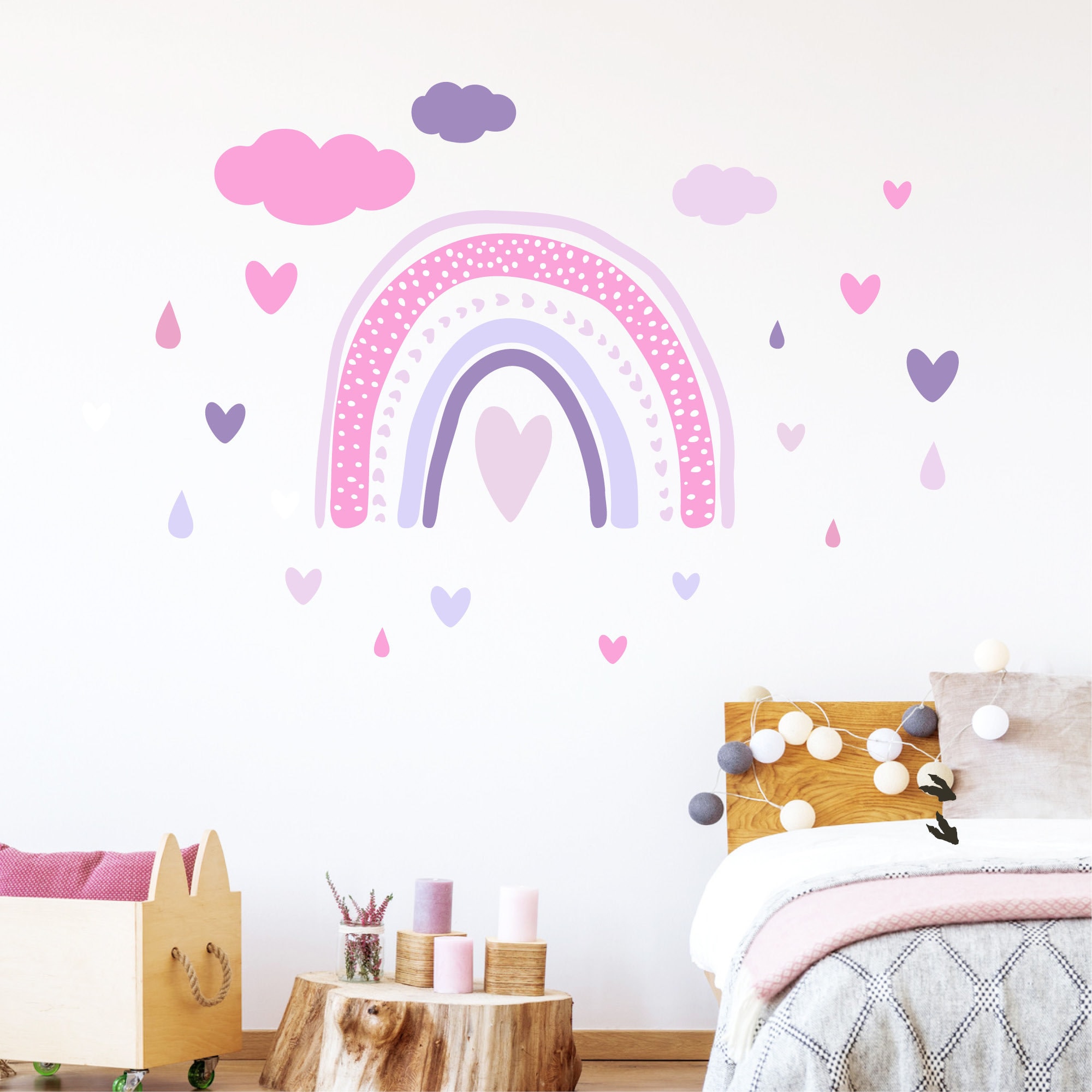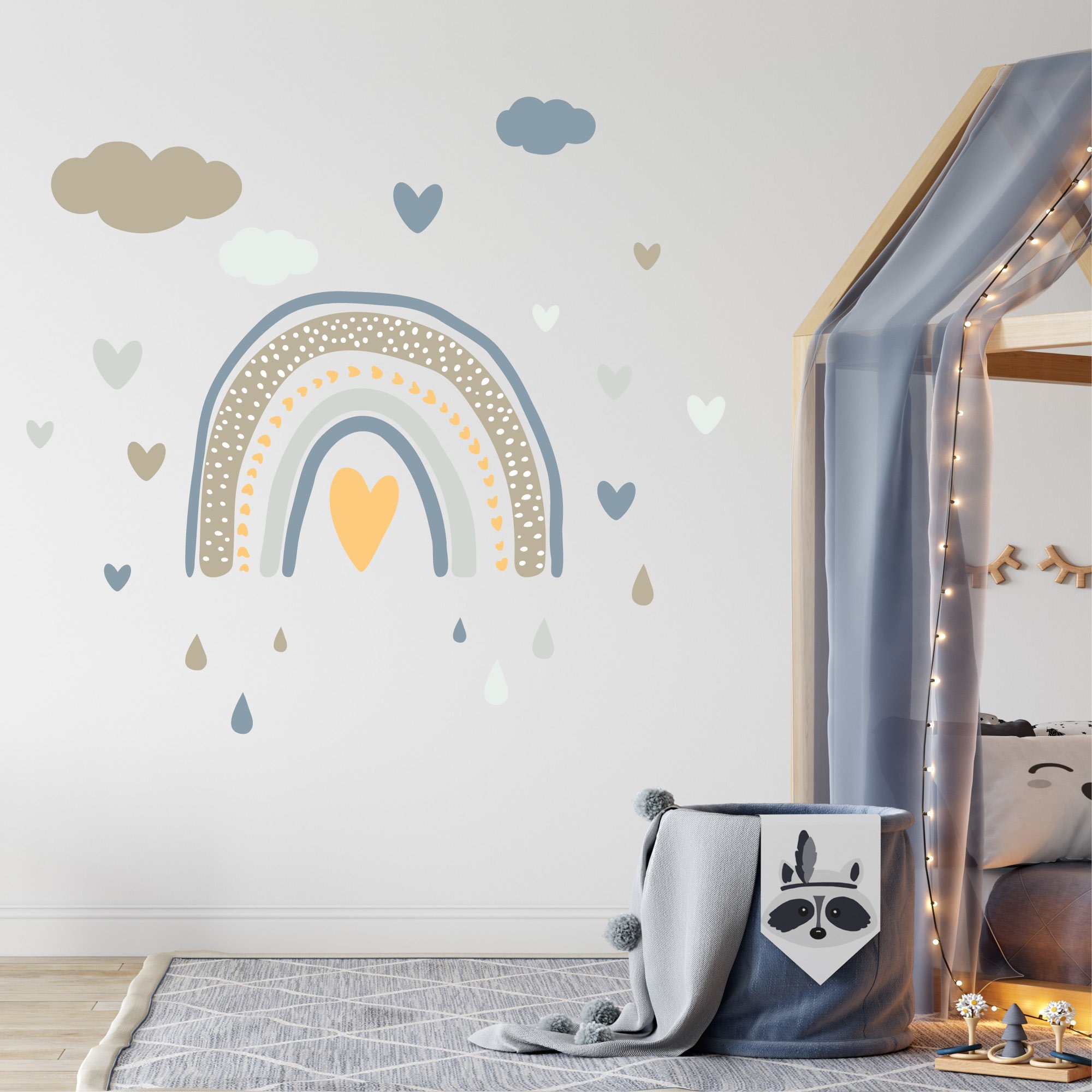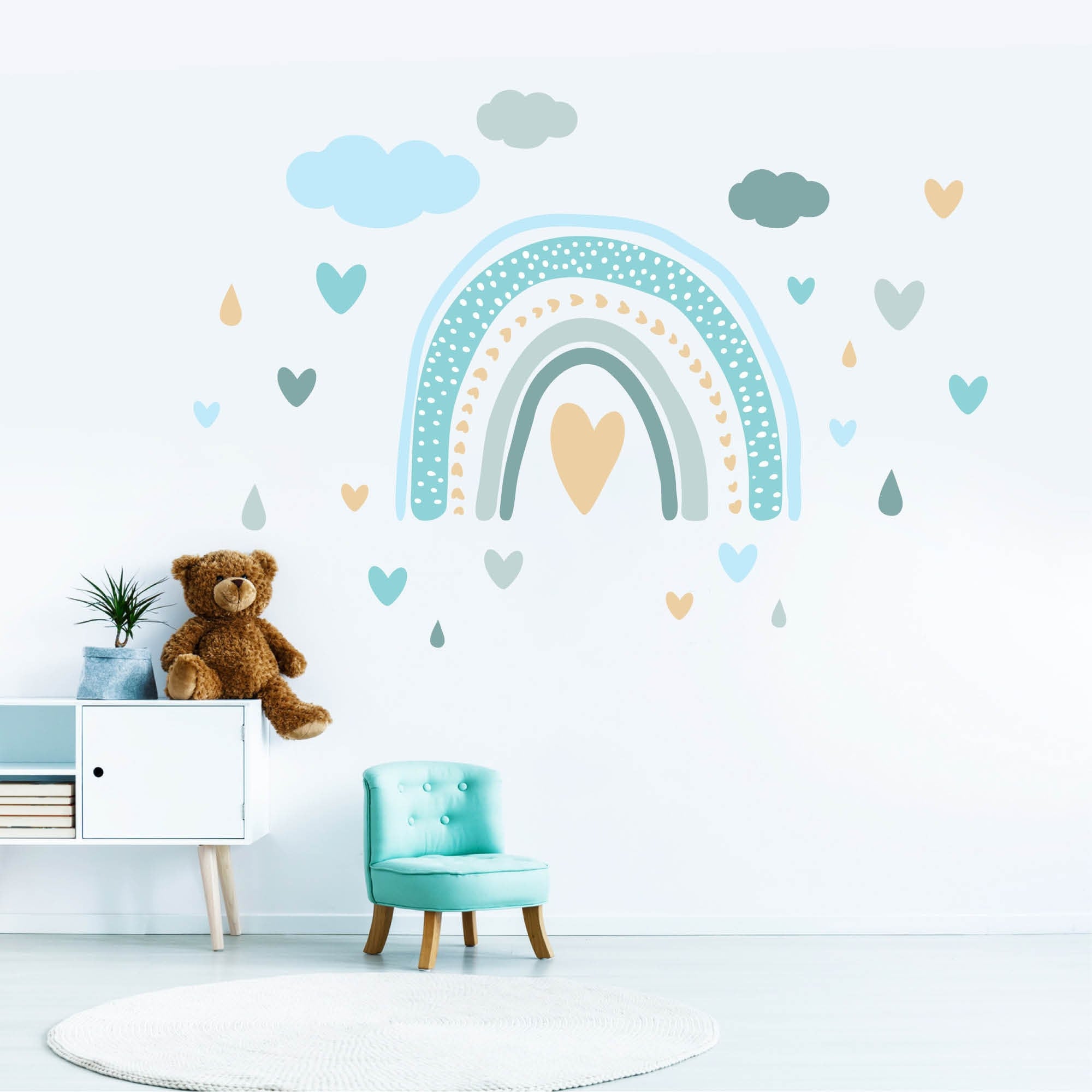 Wandtattoo Loft Regenbogen Sticker Herzen Wolken Tropfen Deko Kinderzimmer Mädchen Junge Pastellfarben Wandaufkleber