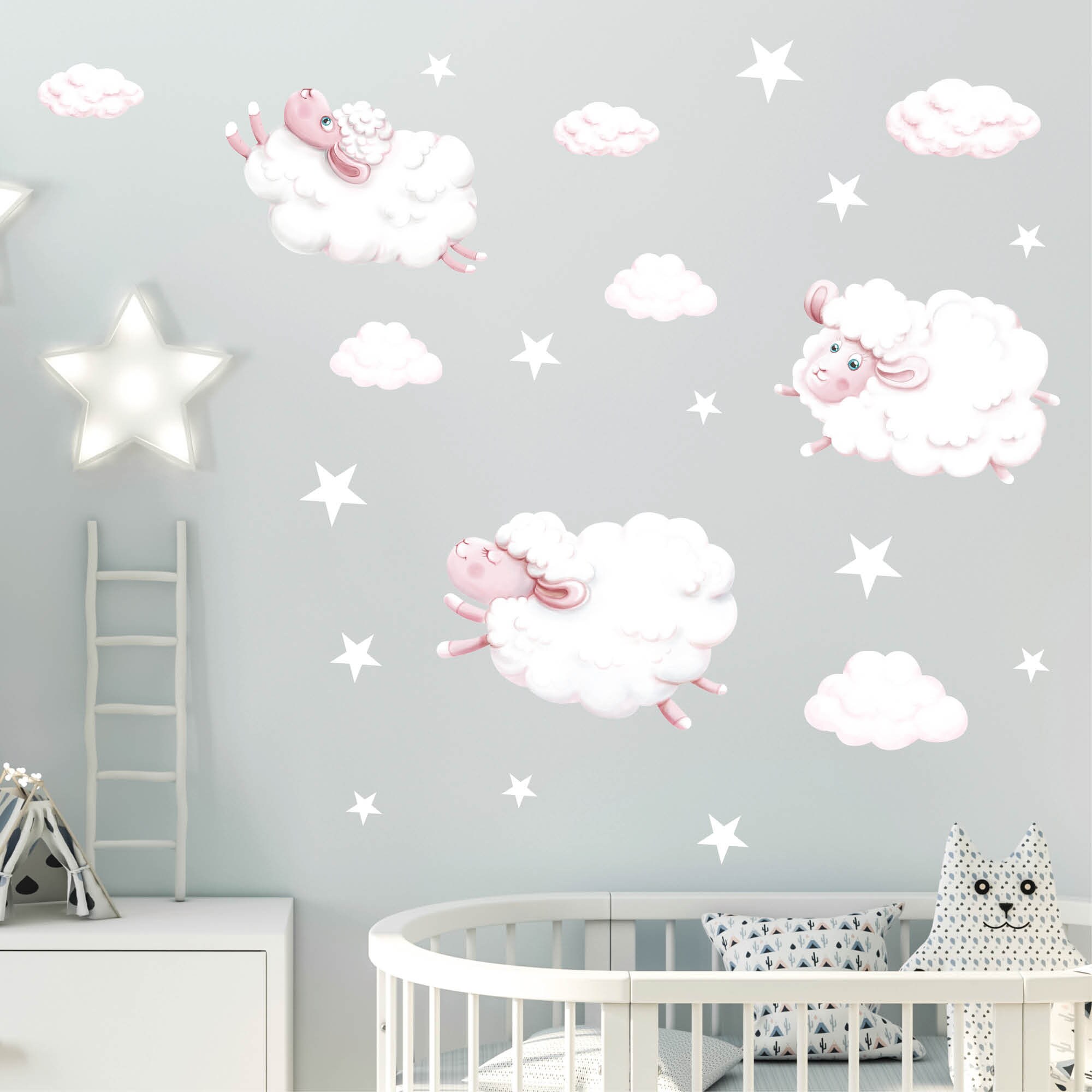 Wandtattoo Kinderzimmer Schafe Schäfchen Wolken Schäfchenwolken Dekoration Babyzimmer