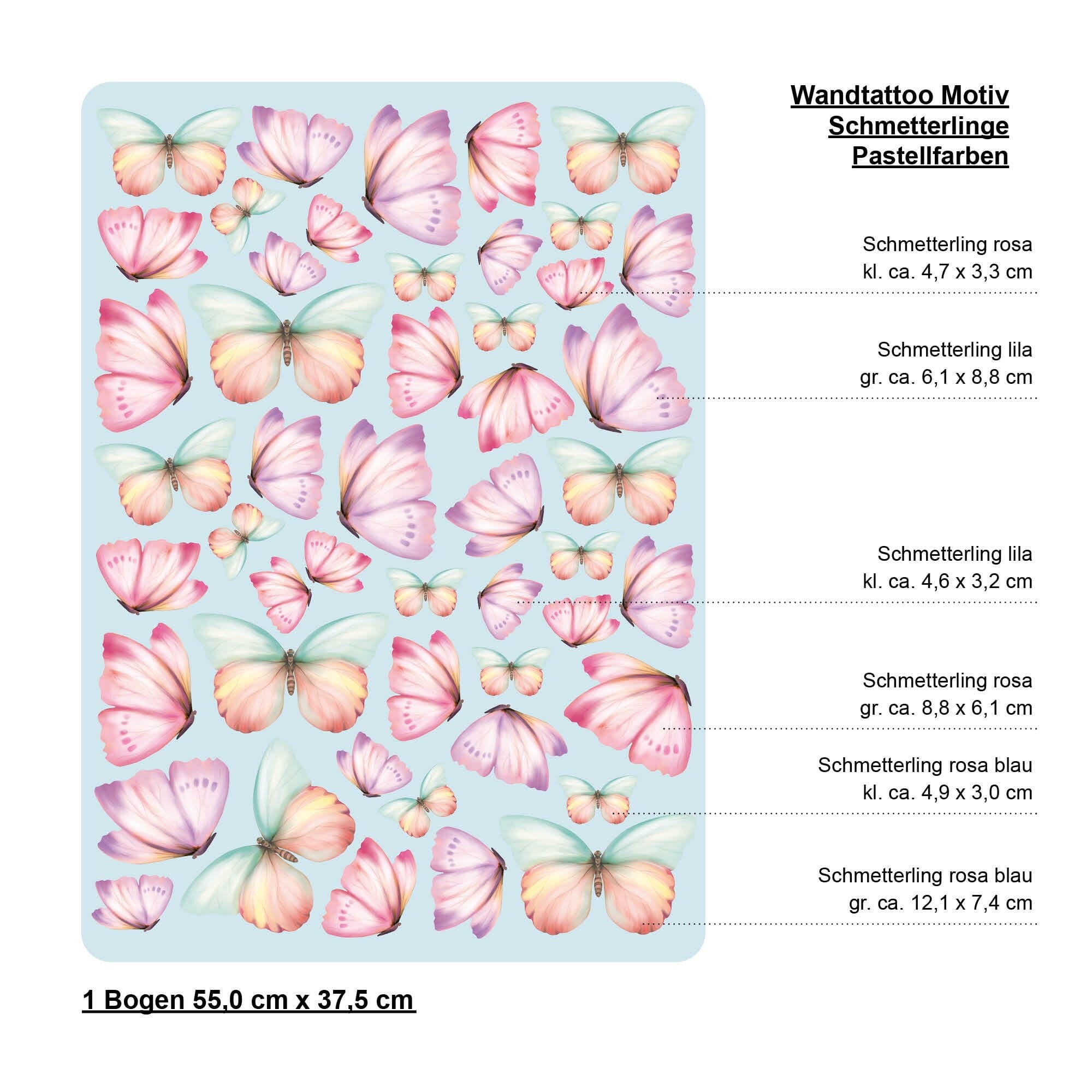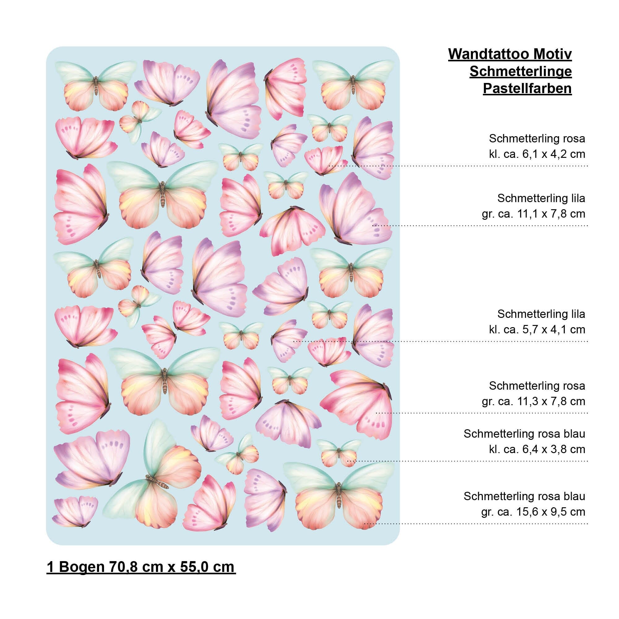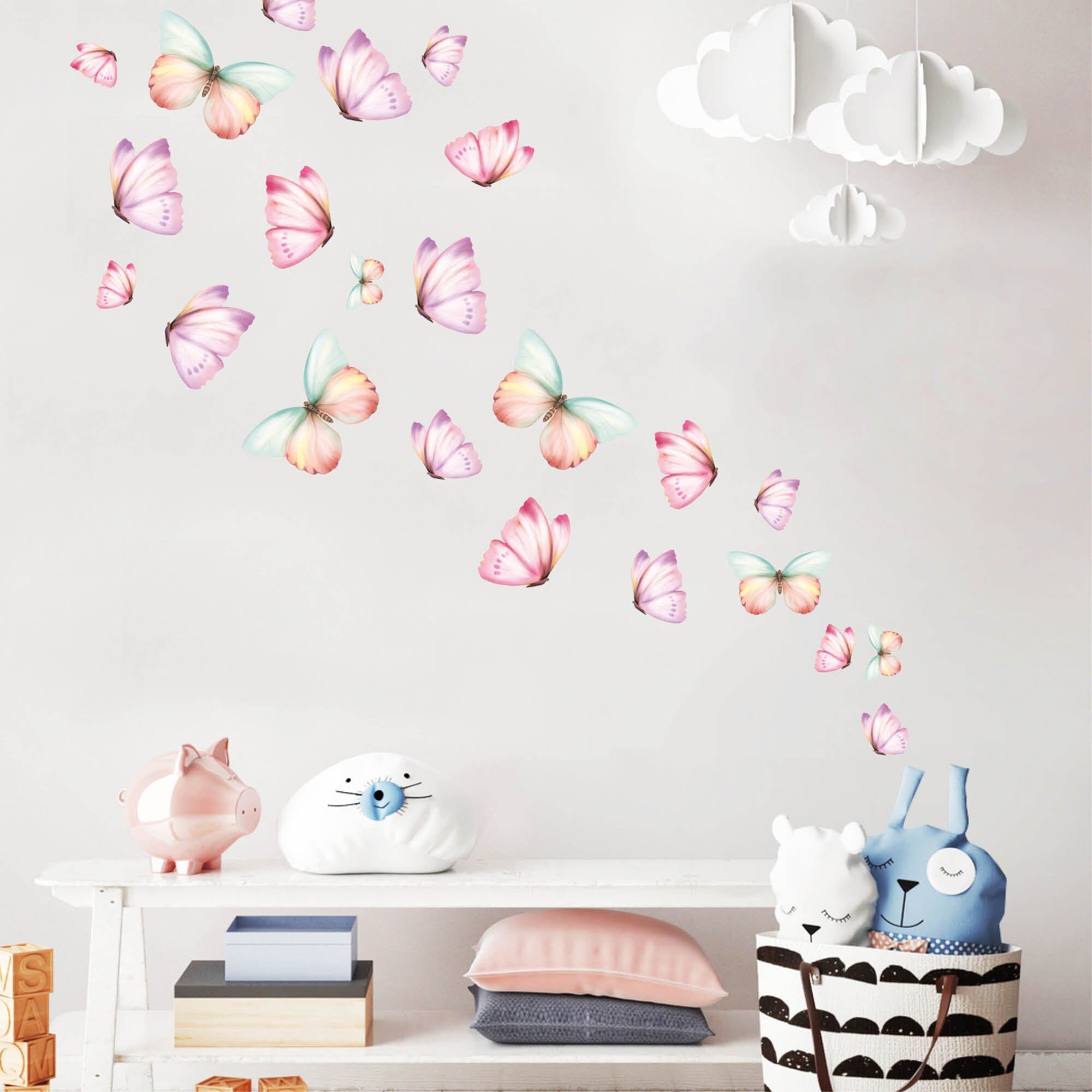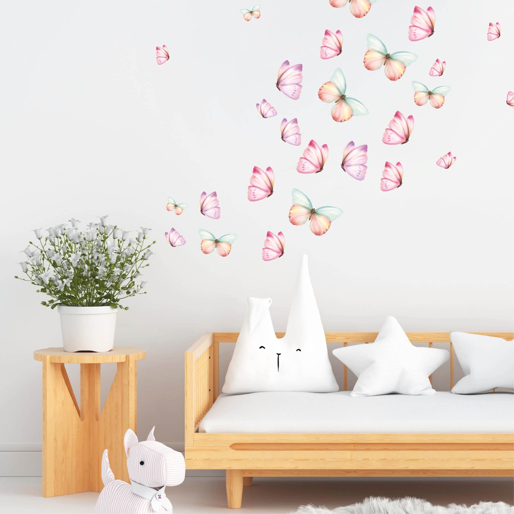 Wandtattoo Kinderzimmer Schmetterlinge in Pastellfarben, Trend pastell, Kinderzimmerdeko, Babyzimmer