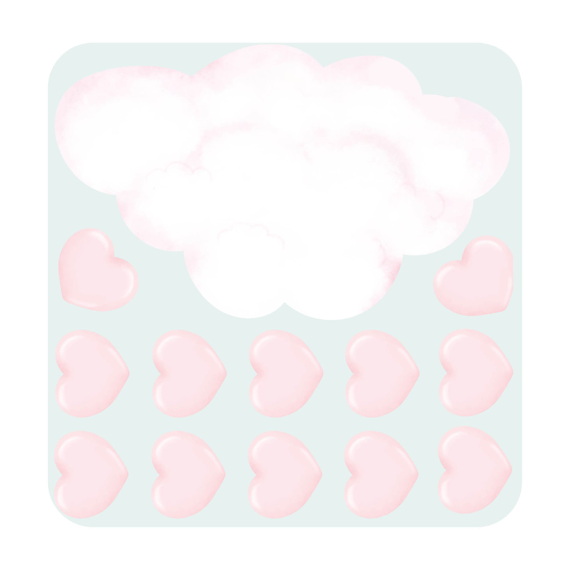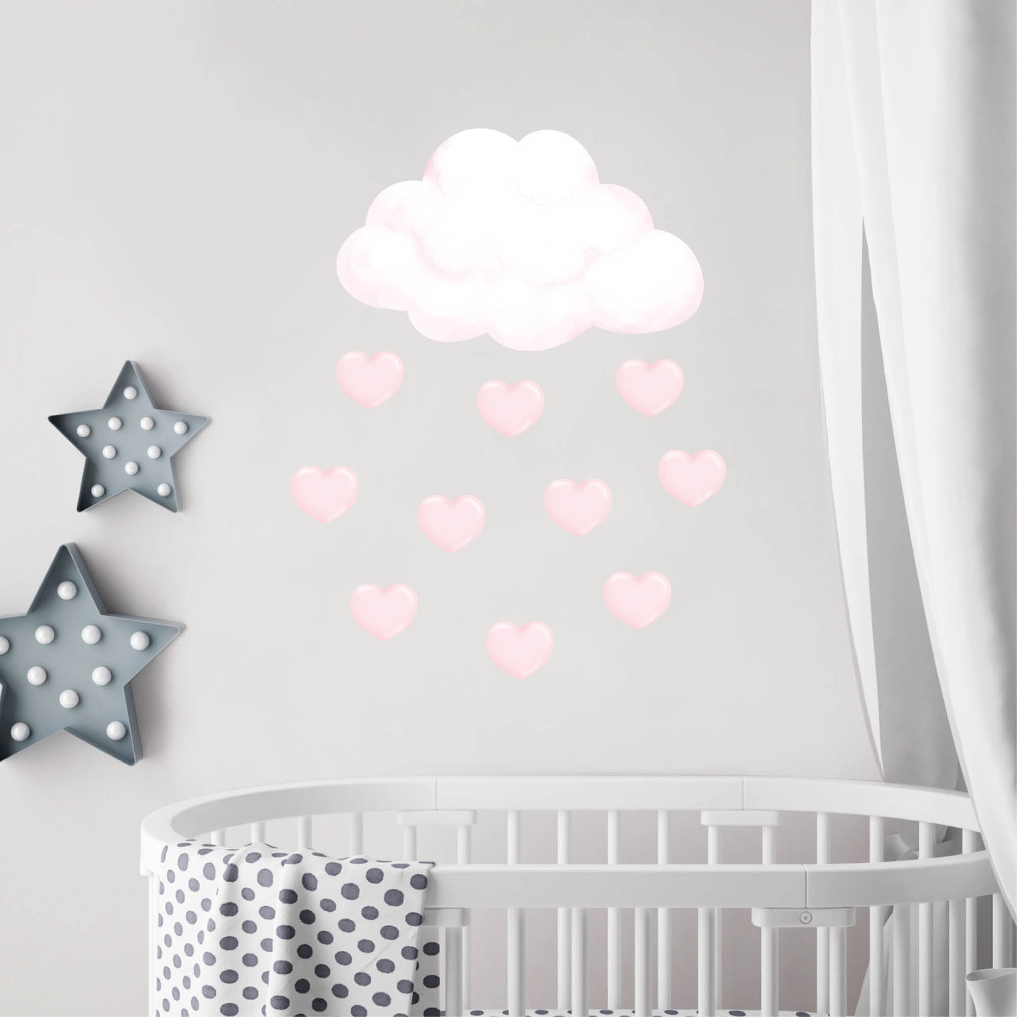 Wandtattoo Kinderzimmer Wolke und rosa Herzen, Dekoration Babyzimmer Mädchen