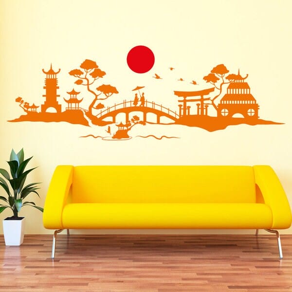 Wandtattoo Skyline Japan Kraniche Asien 2farbig