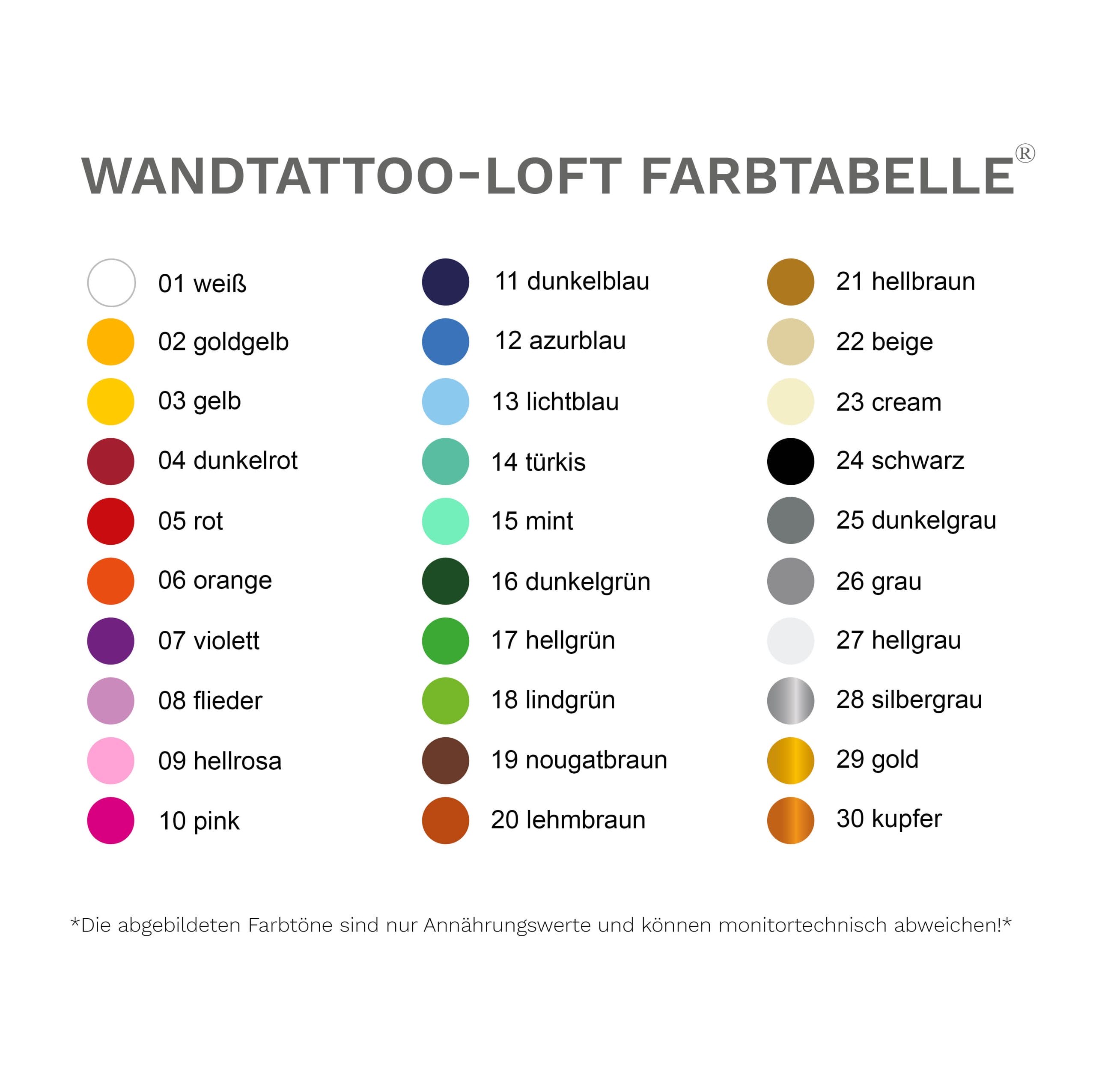 Farben: Aus 30 Farben wählbar, passt dein Wandtattoo zu nahezu jeder Einrichtung und setzt einen modernen Akzent. Dabei hat das Wandbild keine Hntergrundfolie.