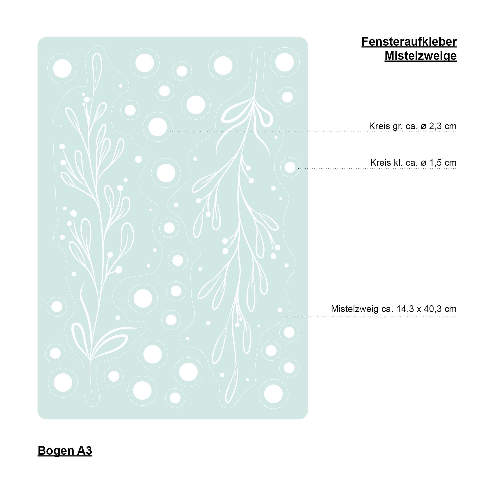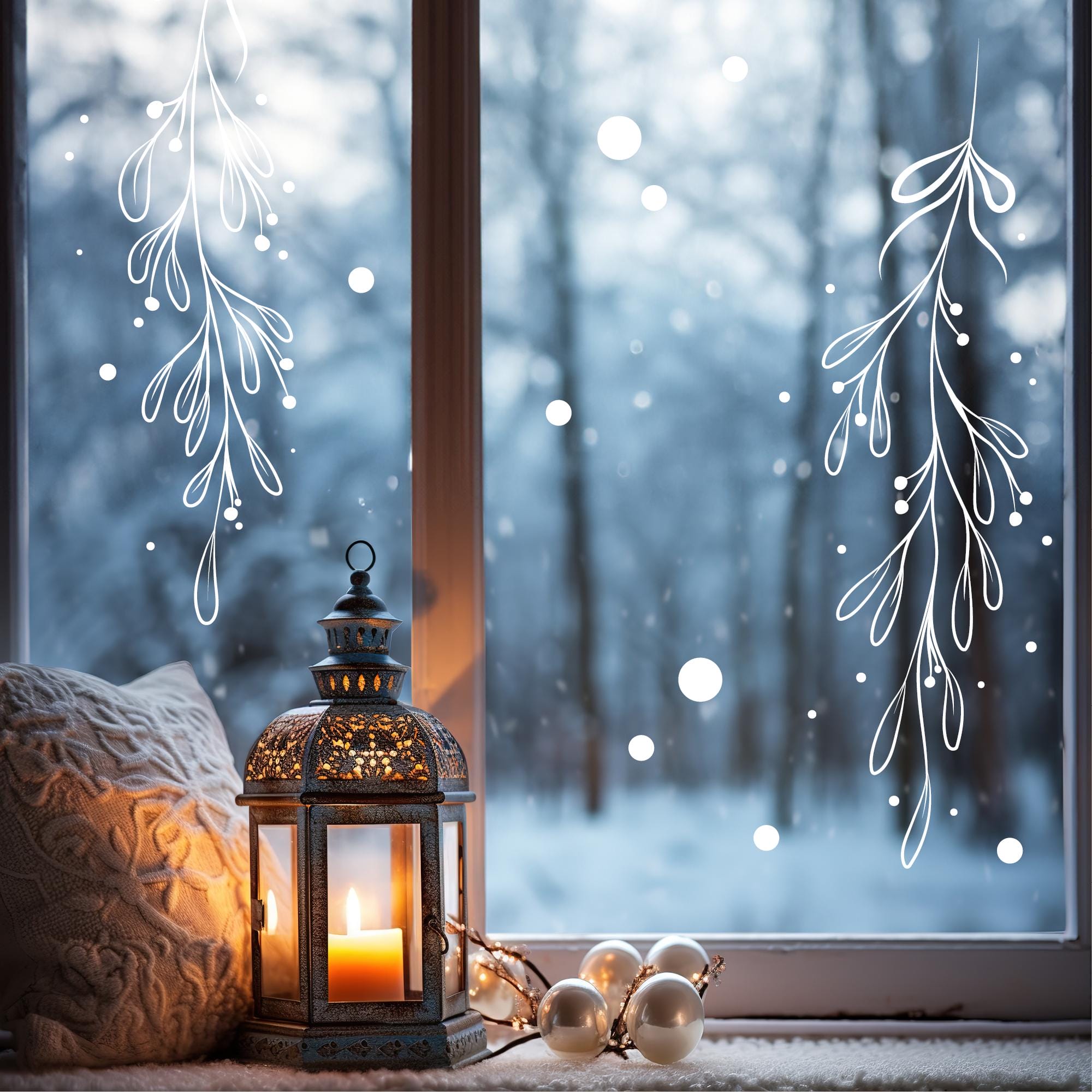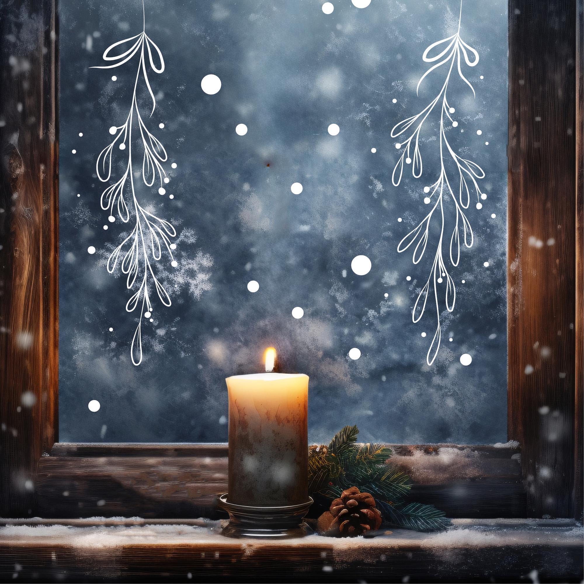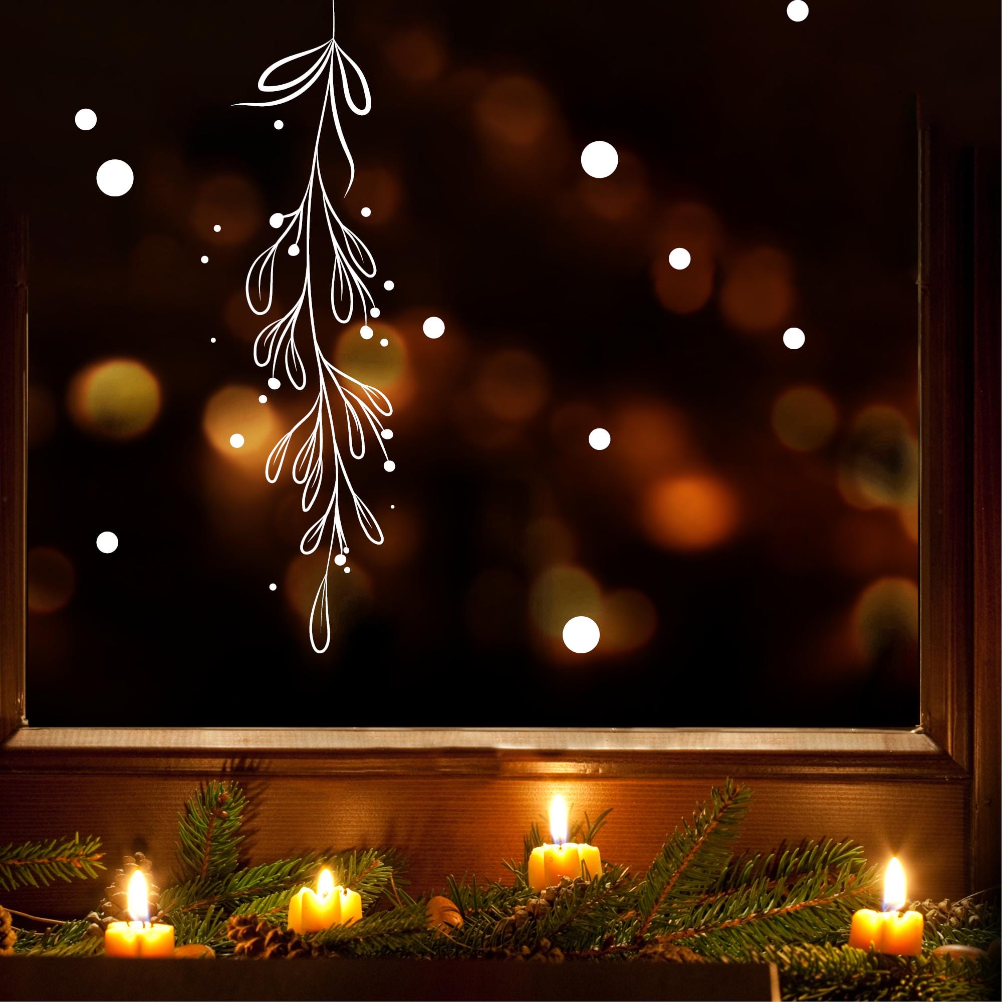 Wiederverwendbar Fensterbild Mistelzweig weiß Kontur schlicht Zweige Schneebälle Schneekreise wiederverwendbar Frohe Weihnachten Christmas