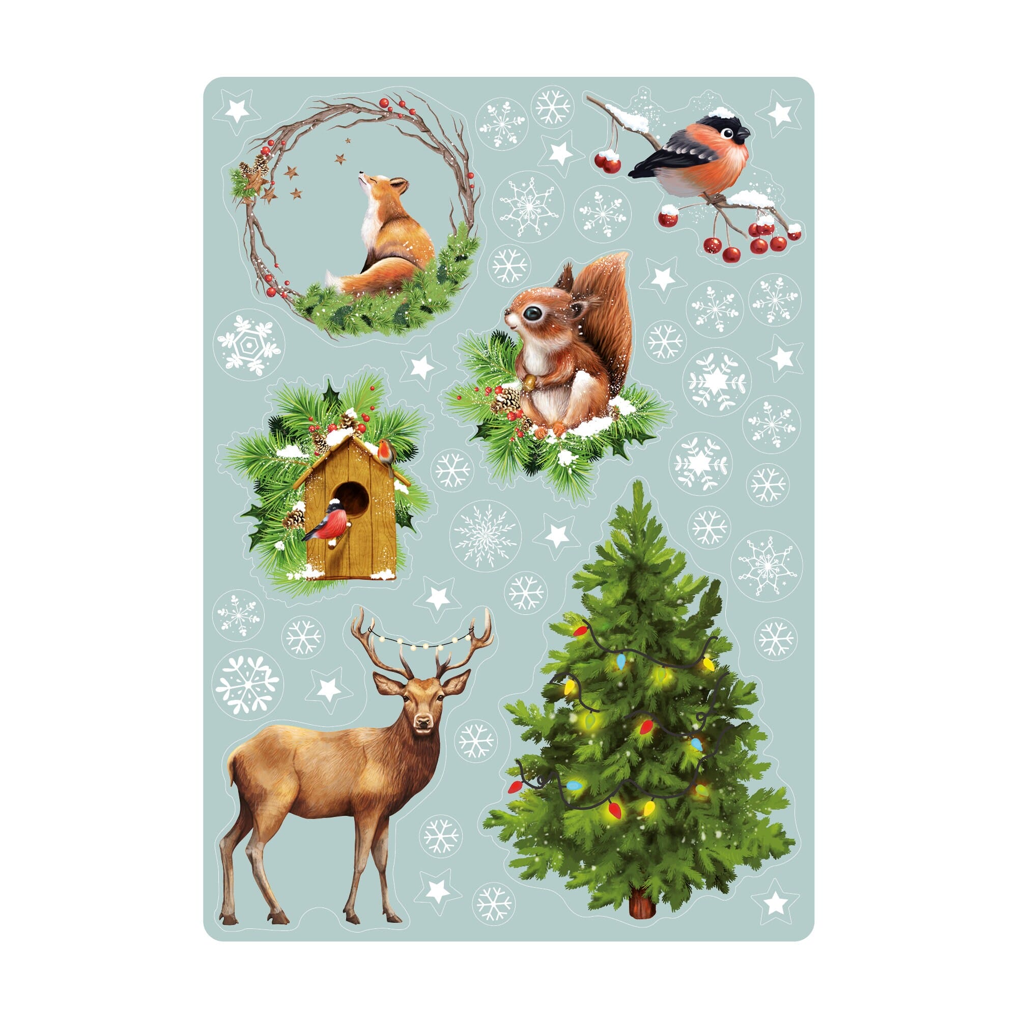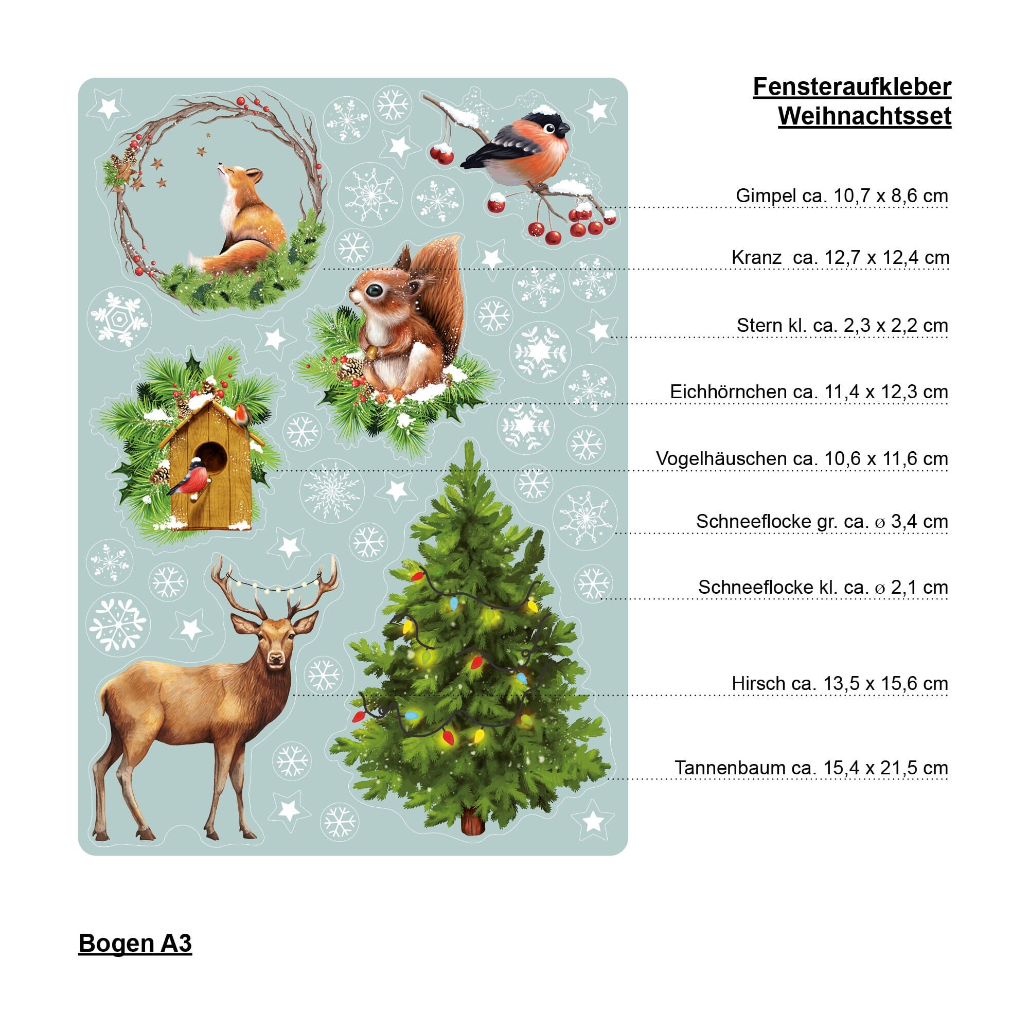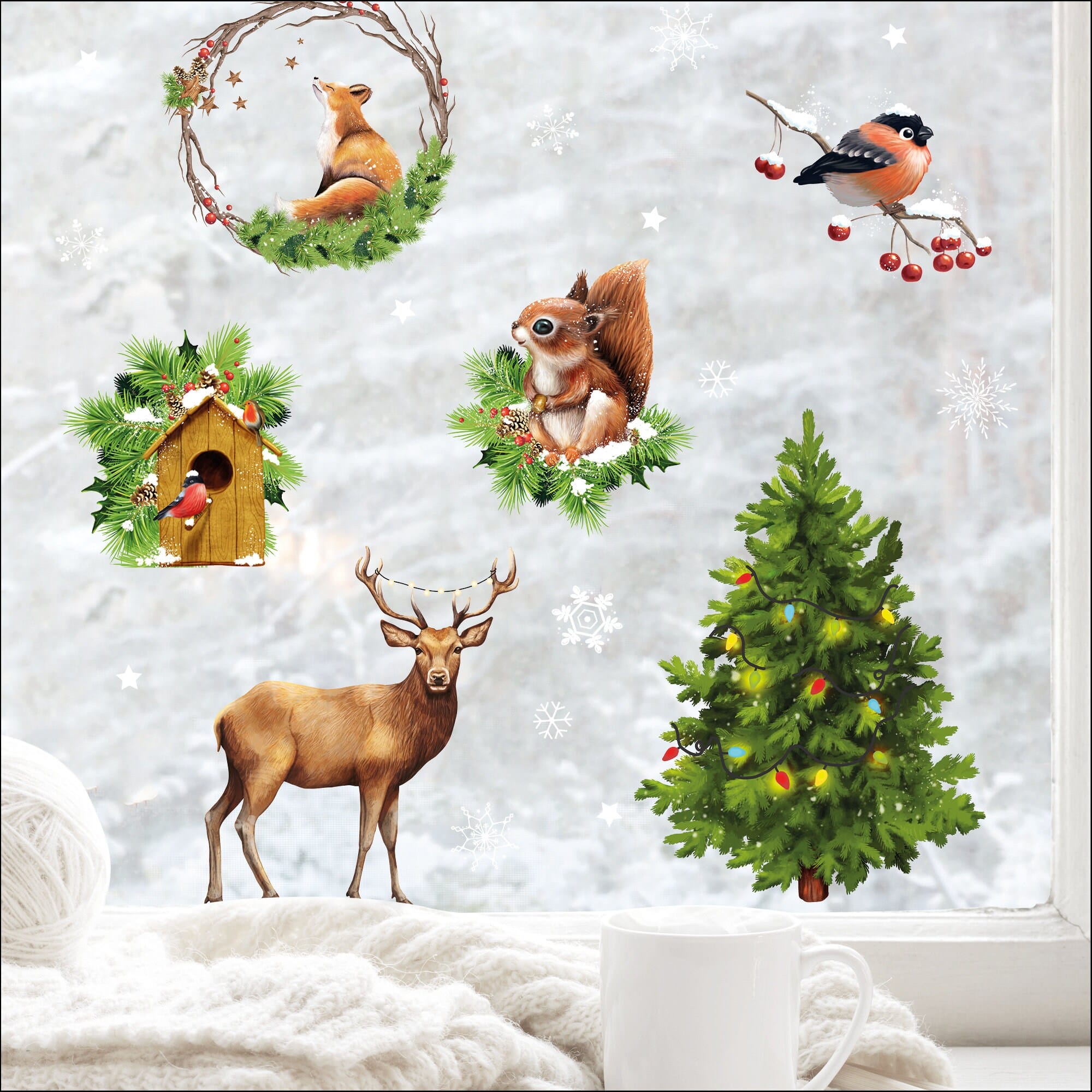 Wiederverwendbar Fensterbild Weihnachtsset Hirsch Tannenbaum Eichhörnchen Vogel Fuchs Vogelhaus