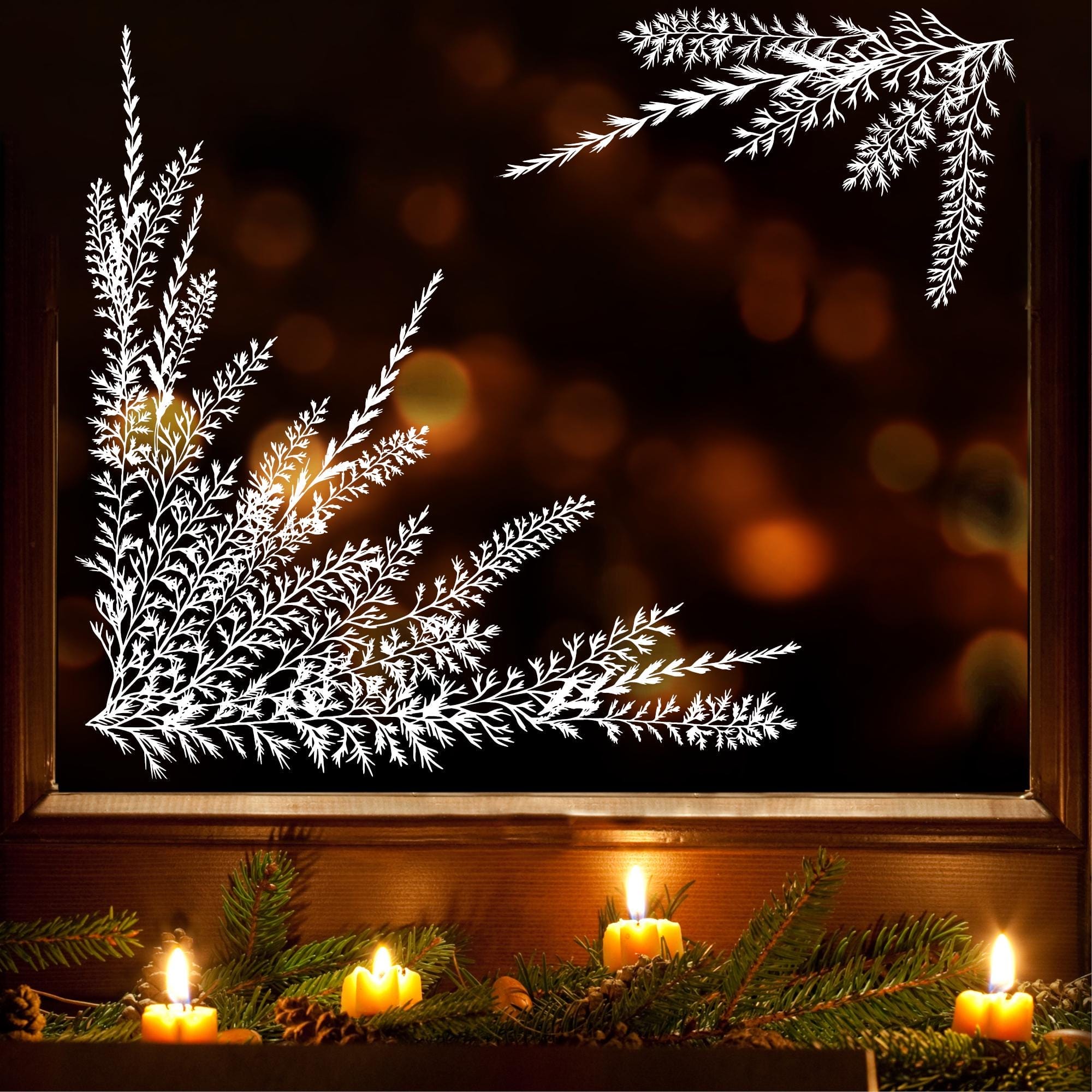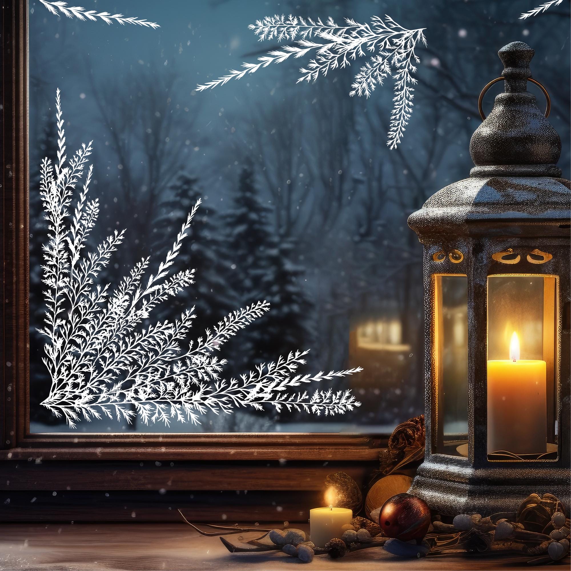 Wiederverwendbar Fensterbild Winterzweig weiß Kontur schlicht Zweige Fensterecke Winter Weihnachten Christmas